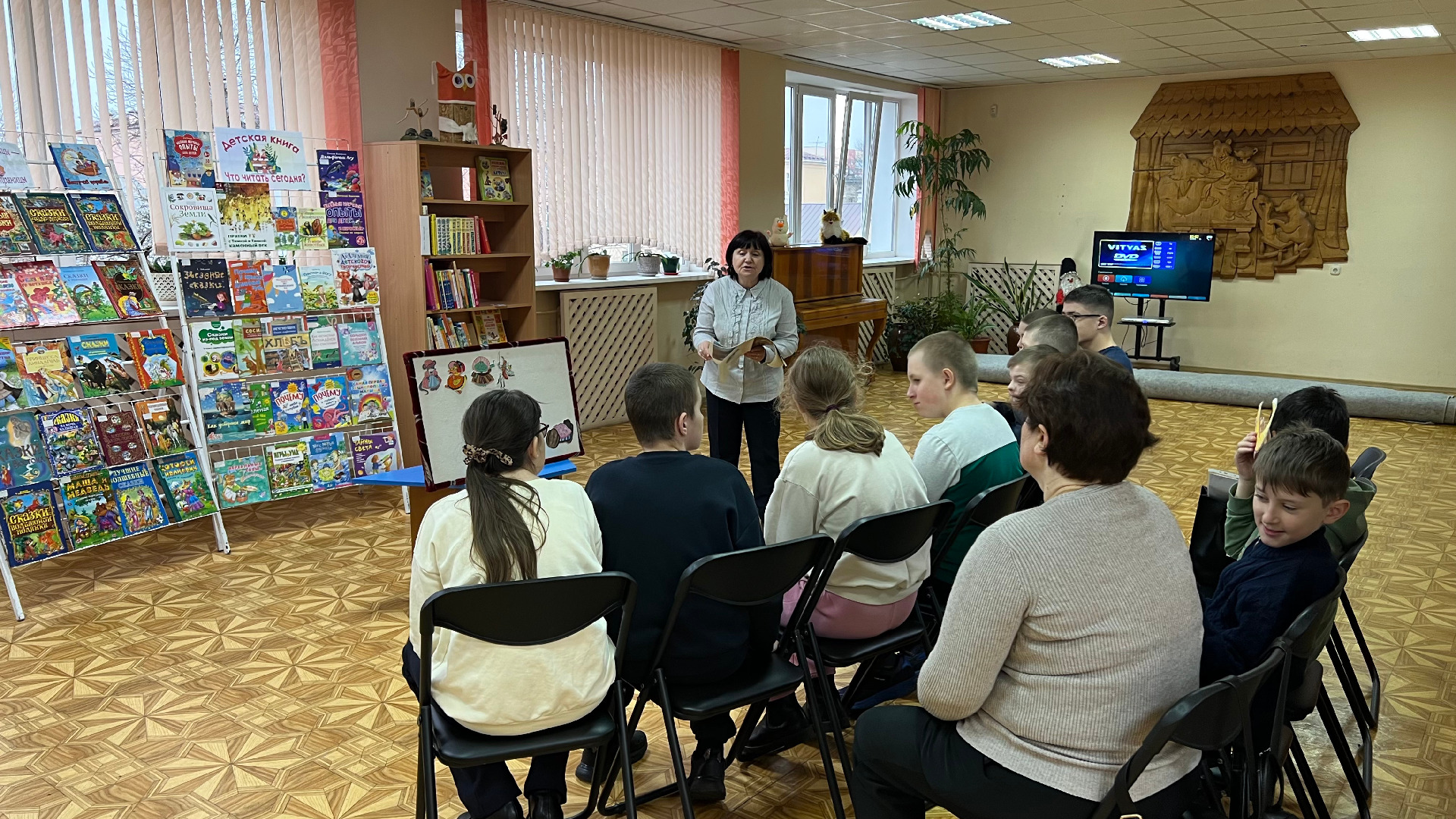 Затем началась творческая часть встречи. С помощью фланелеграфа дети смогли не просто послушать, но и «увидеть» сказку, перемещая яркие фигурки персонажей по специальному экрану. Это упражнение прекрасно развивает мелкую моторику, воображение и позволяет стать соавтором действия.