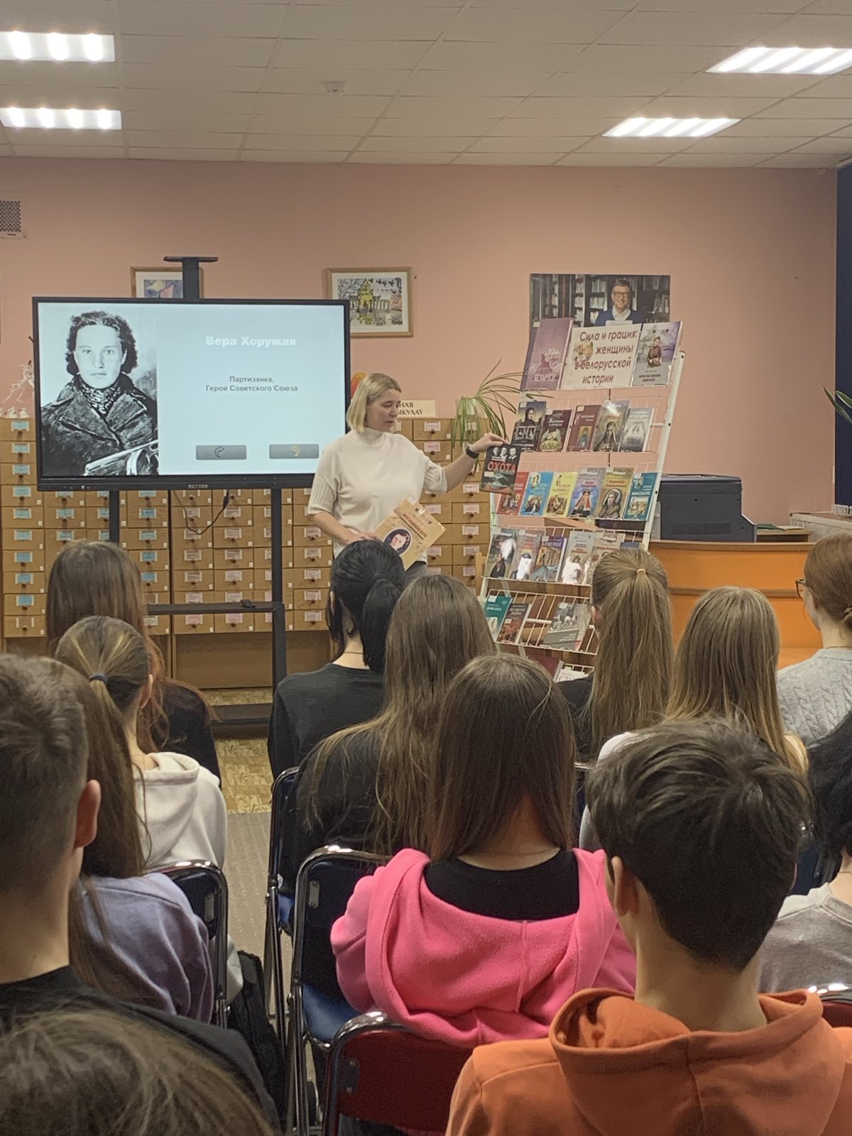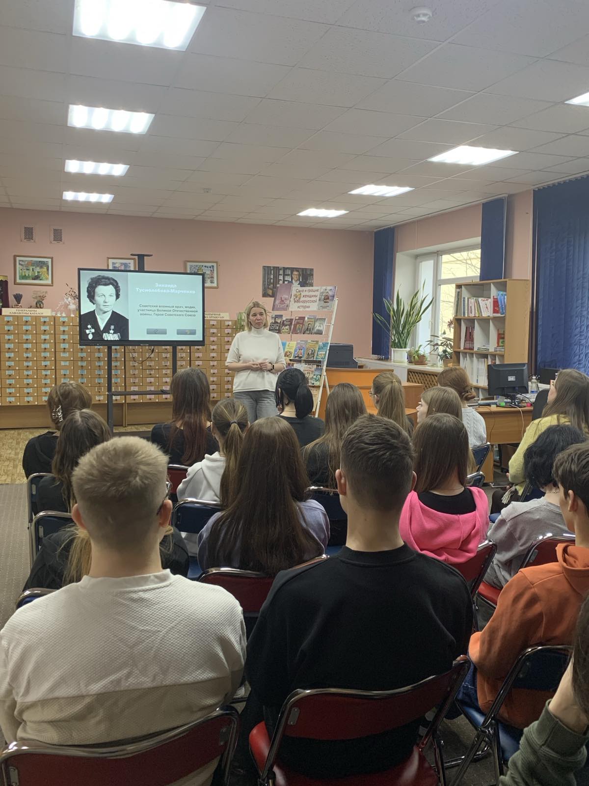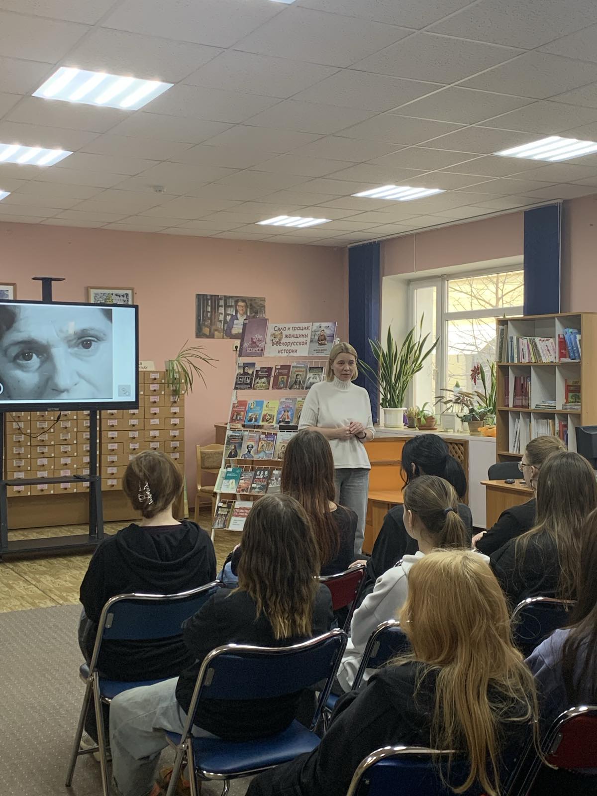 Для учащихся Брестского колледжа — филиала УО «Белорусский государственный университет транспорта» в юношеском отделе библиотеки им. М. Горького прошёл познавательный час «Сила и грация: женщины в белорусской истории», приуроченный к Году белорусской женщины.