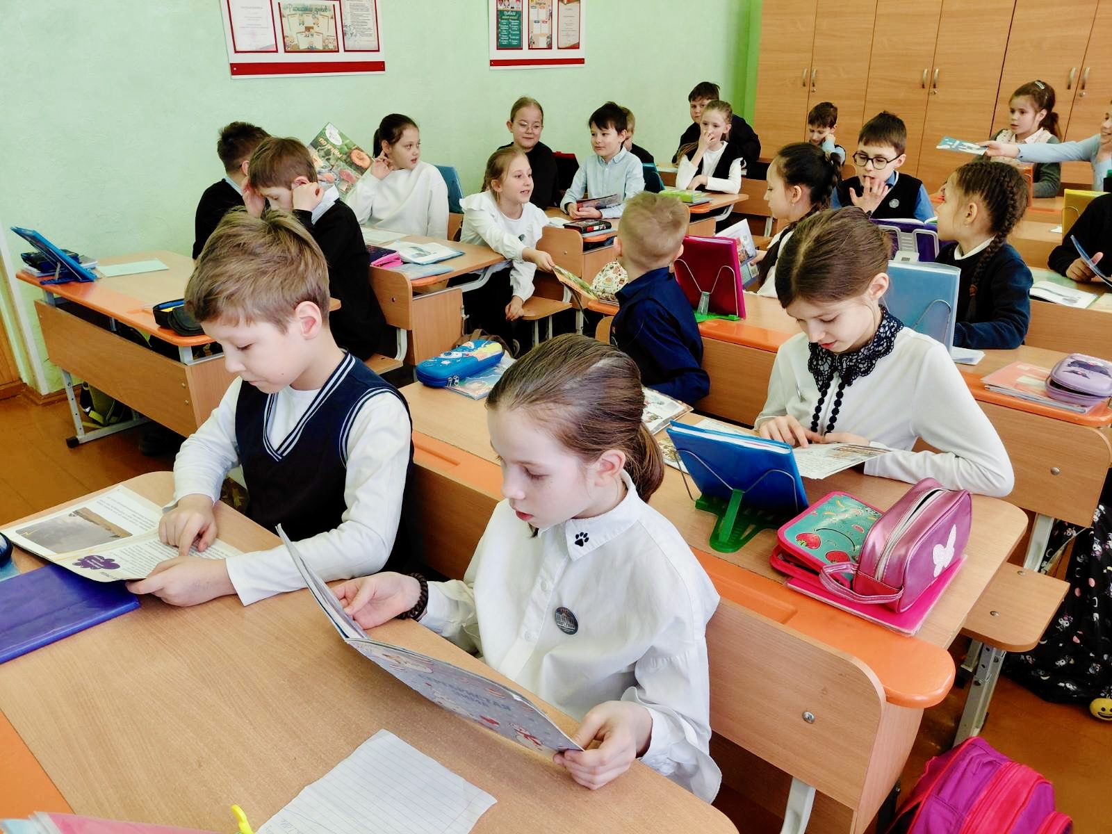 Для учащихся третьего класса состоялось знакомство с историей книги. Затем их вниманию был предоставлен обзор книжной серии «Маленький профессор». Эти книги так заинтересовали ребят, что остались в классе до следующей встречи.