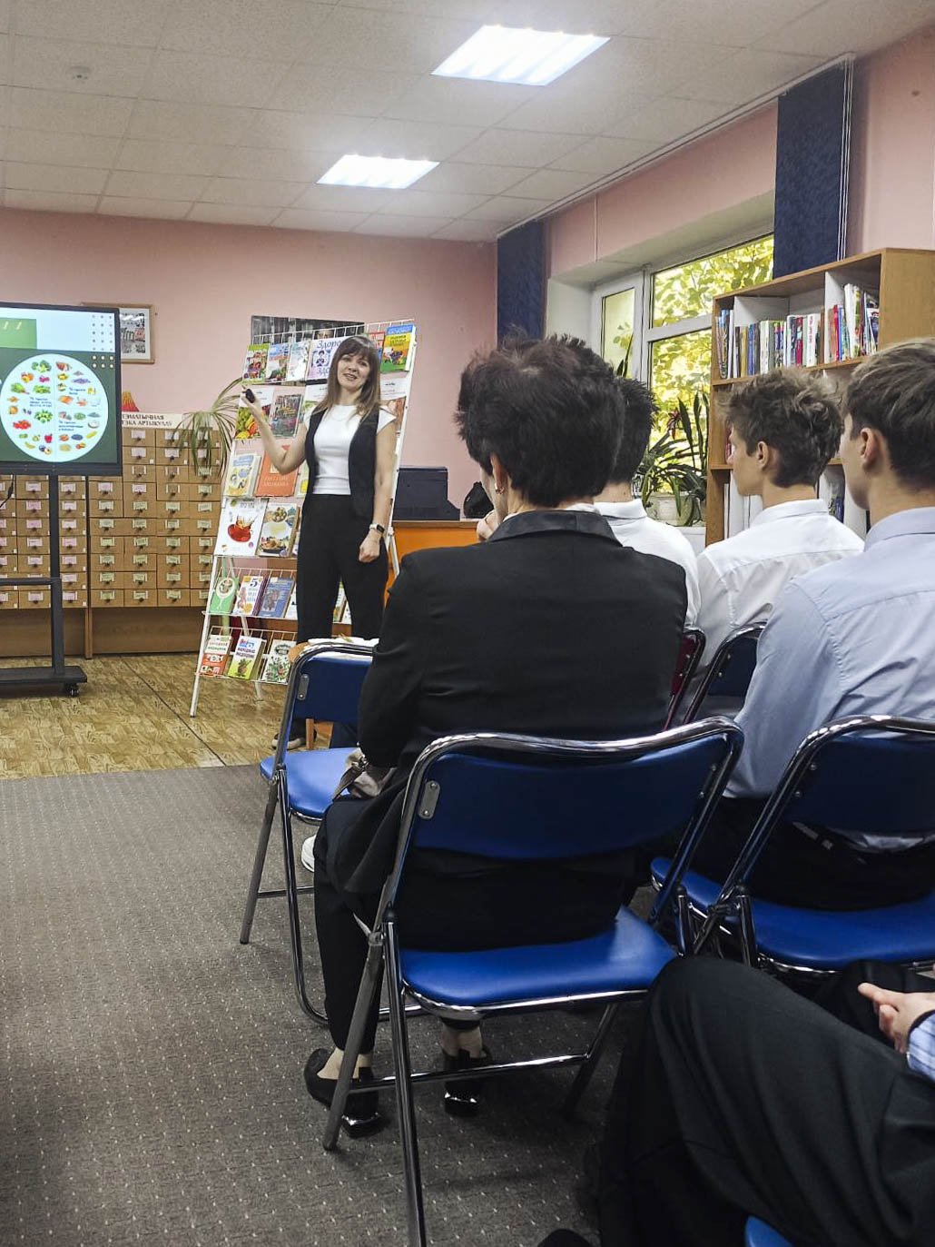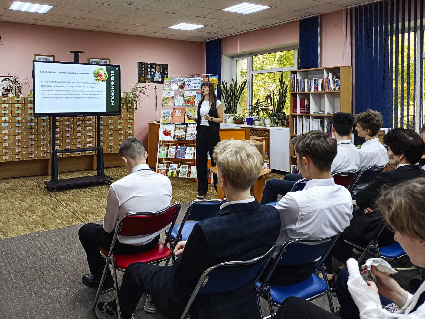 27 октября 2025 года учащиеся гимназии № 1 г. Бреста имени Защитников Брестской крепости приняли участие в увлекательной и познавательной встрече с нутрициологом Анной Путилиной, которая состоялась в юношеском отделе Брестской областной библиотеки. В рамках мероприятия ребята узнали о важности правильного питания, о том, как пища влияет на их здоровье, энергию и развитие.
