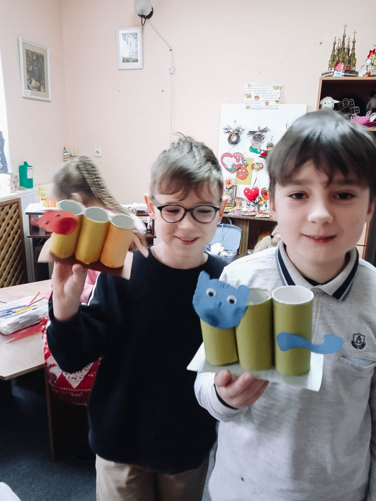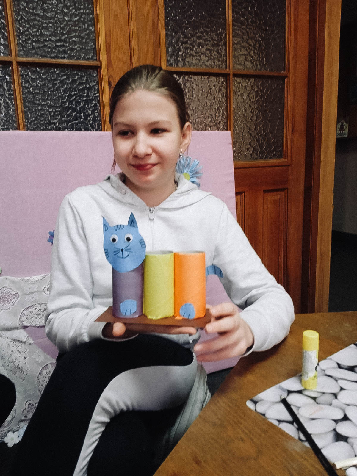 6 февраля ребята из «Школы маленьких волшебников» прочитали трогательную книгу Елены Екимовой: «Мяу-мяу, просим вас: не пройдите мимо нас». Персонажи этой книги — бездомные котята, которые живут на улицах, в подвалах и очень мечтают обрести свой дом, где им будет тепло и уютно. Волшебники с удовольствием рассказали о своих домашних питомцах и склеили из картона и цветной бумаги подставки для карандашей и ручек с изображением котёнка.