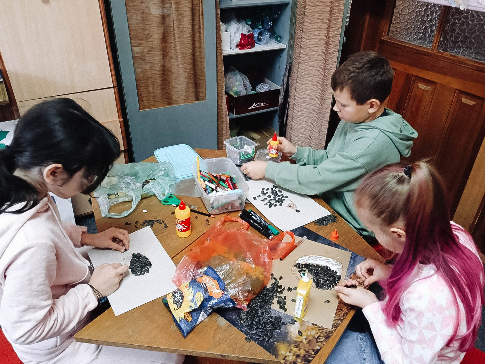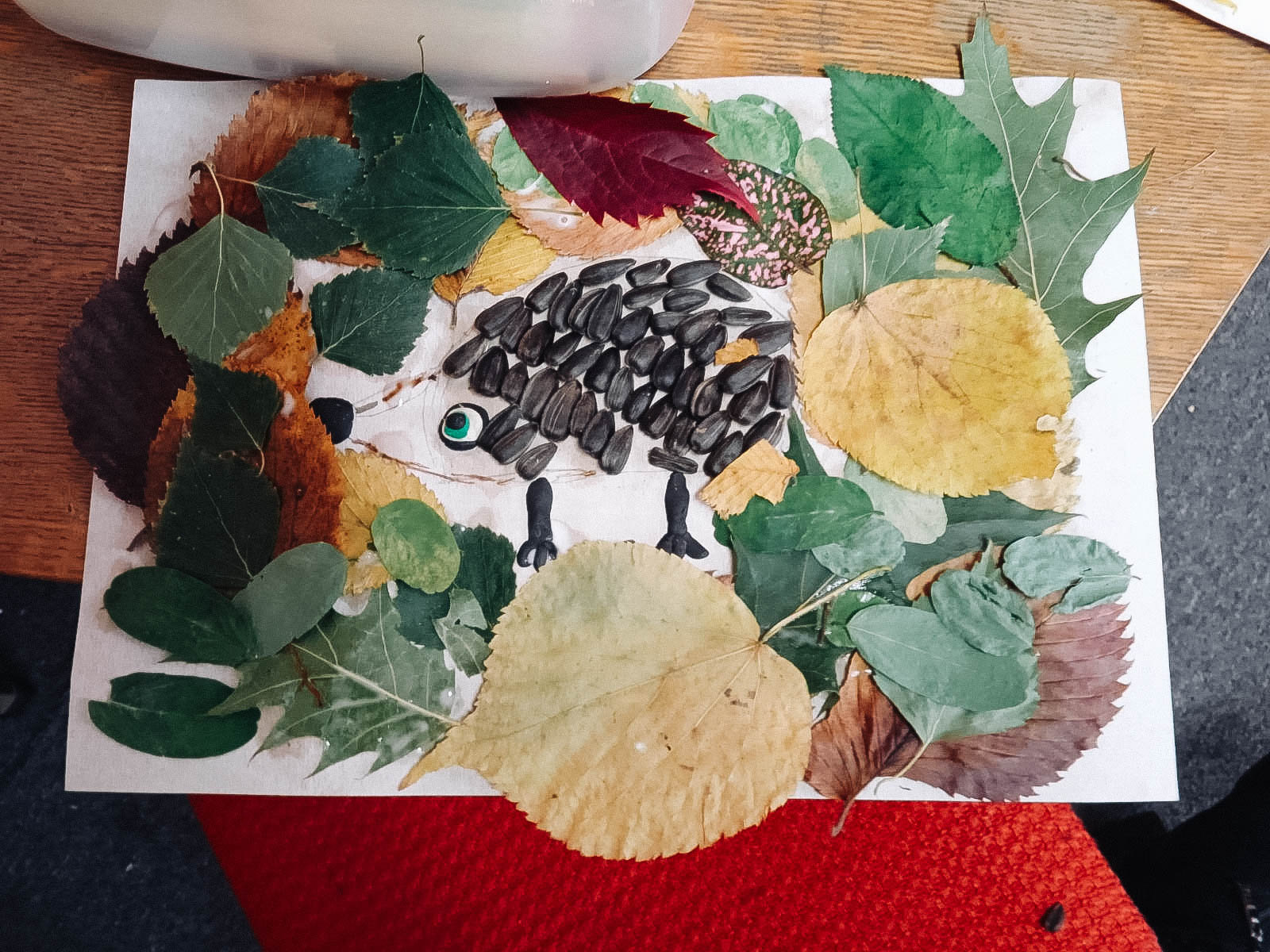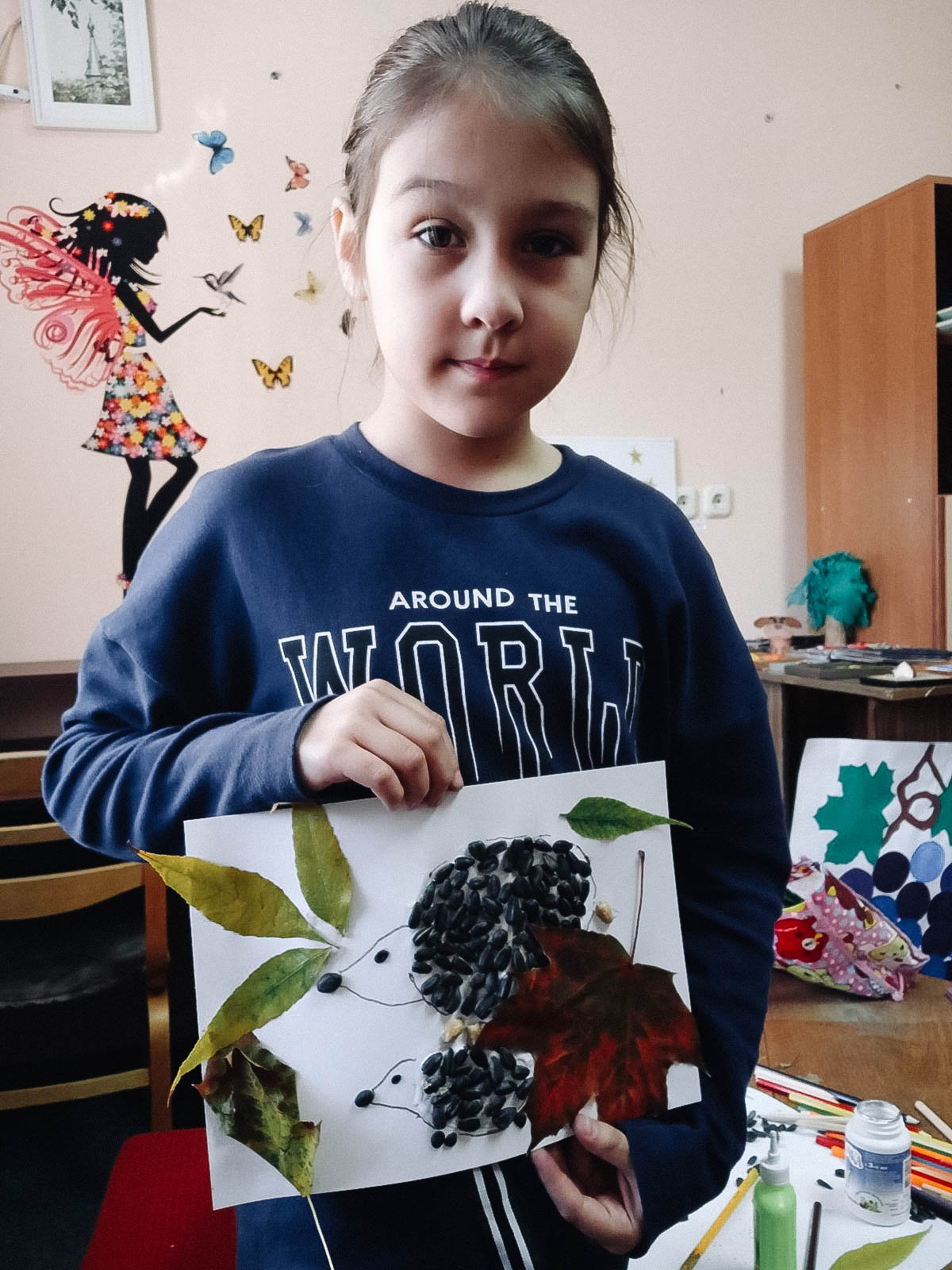 Старшая группа с удовольствием читала забавные истории А. Усачёва «Жили-были Ёжики». Герои книги — семейство ёжиков: папа, ежата Вовка и Вероника, их друзьях. Книга учит добру, дружбе, любви к ближним, к окружающей среде. Юные волшебники решили сделать аппликации ёжиков из листьев и семечек.