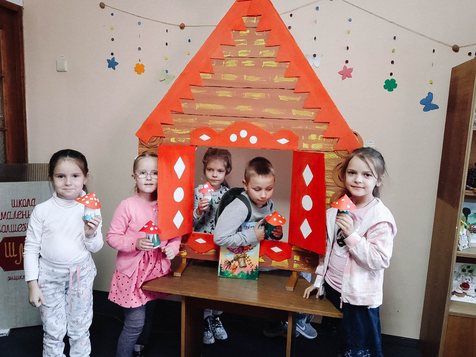 Занятие в Школе маленьких волшебников прошло увлекательно. Ребята из младшей группы читали книгу о любимой сказочной героине — о Бабе-Яге. В сборник вошли пять русских народных сказок, погружающих читателя в волшебный мир. Дети вдохновились изданием: картон превратился в настоящее лакомство лесной старушки — в мухоморы.