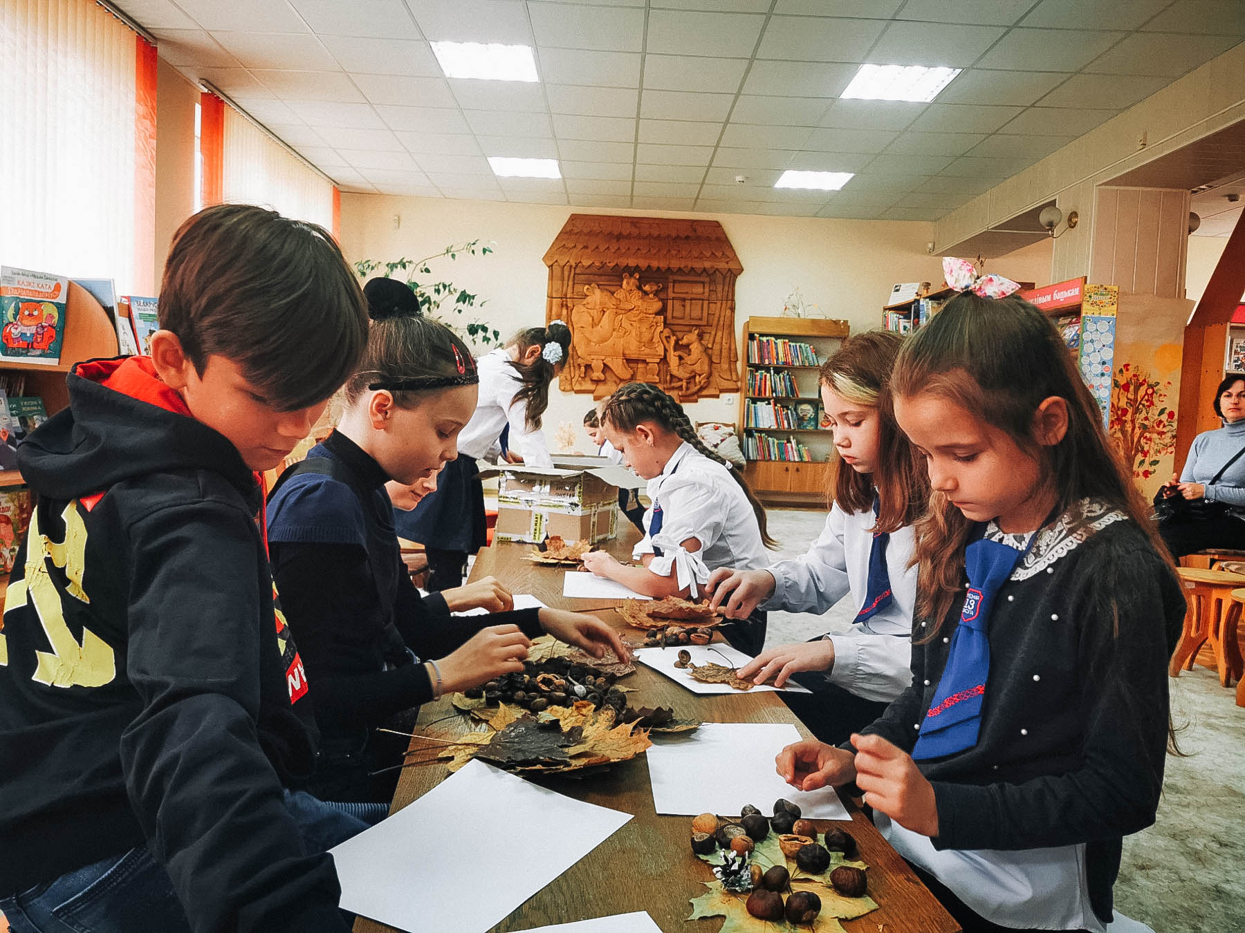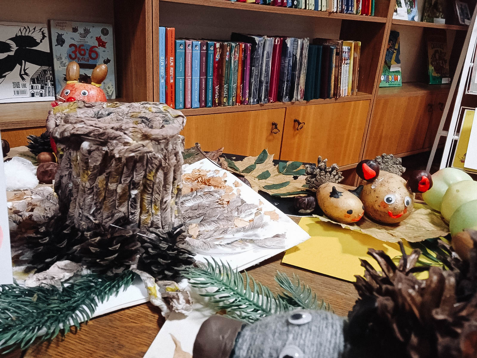 После занятия в детском отделе областной библиотеки возле сказочного пенька поселились забавные ёжики, собачки, котики. Приглашаем познакомиться с работами!