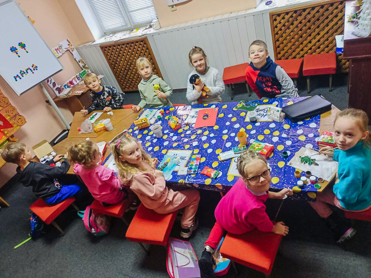 Старшая группа познакомилась с книгой «Синяя птица» М. Метерлинка. Волшебный подарок феи наделяет главных героев способностью видеть души предметов. Произошло новогоднее чудо: хлеб, сахар, огонь, вода, кошка и пёс заговорили человеческими голосами. Дружная компания отправилась в далёкое путешествие на поиски загадочной синей птицы, способной принести счастье любому, кто её найдёт. Волшебники из солёного теста лепили котиков, собачек и новогодние ёлочки.