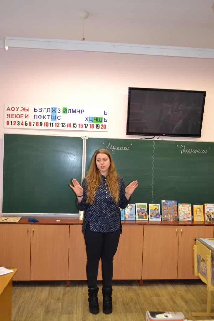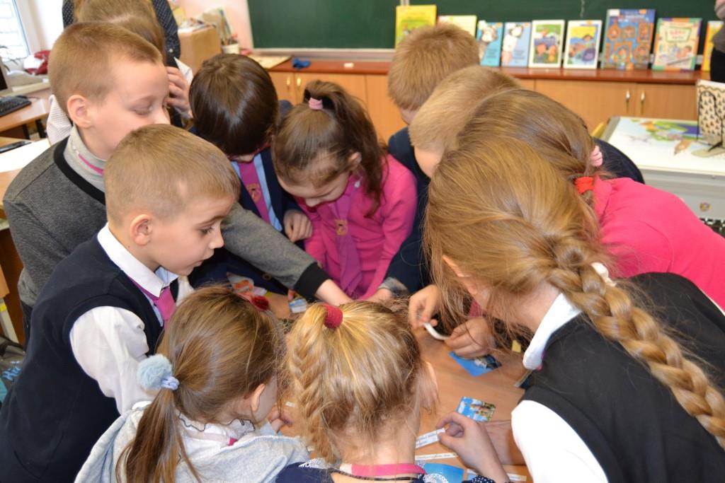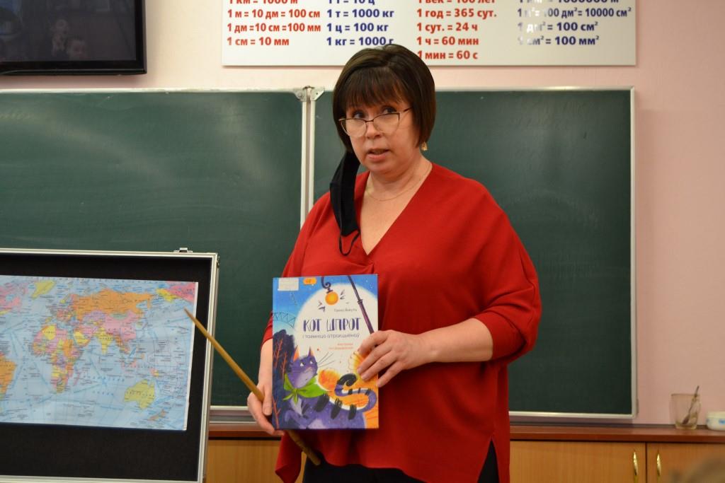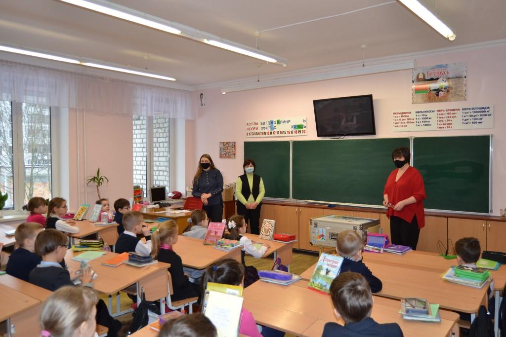 Наше путешествие началось с ГУО «Средняя школа № 7», 3 «Б» класса (классный руководитель Жук Наталья Петровна). Мероприятие в классе открыла Татьяна Владимировна Грищук (гл. библиотекарь отдела литературы для детей и юношества) презентацией «Книгосветное путешествие!» Используя книги из чемодана и географическую карту, она рассказывала о том, что ожидает ребят.