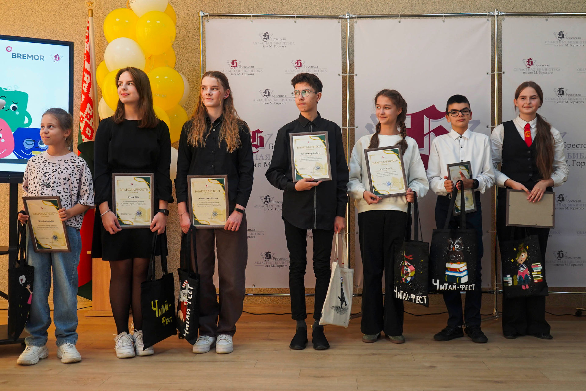 Десятка лучших читателей проекта удостоена Дипломами и памятными подарками от компании BREMOR. Среди них Бутько Александр, Шуман Лея, Свярук Дарья, Денисюк Александра, Митюков Степан, Озарчук Елизавета и Денисюк Анна. За лучший читательский дневник награждена Гницевич Валерия. Диплом победителя, умные часы и памятные подарки от компании BREMOR получила Бутько Виктория, которая за время проекта прочитала 295 книг. Диплом победителя, умная колонка Алиса и памятные подарки от компании BREMOR достались Мурза Ульяне (320 прочитанных книг). Диплом победителя и главный приз — велосипед — за целеустремлённость, волю к победе и 333 прочитанные книги получила Денисюк София. Поздравляем победителей!