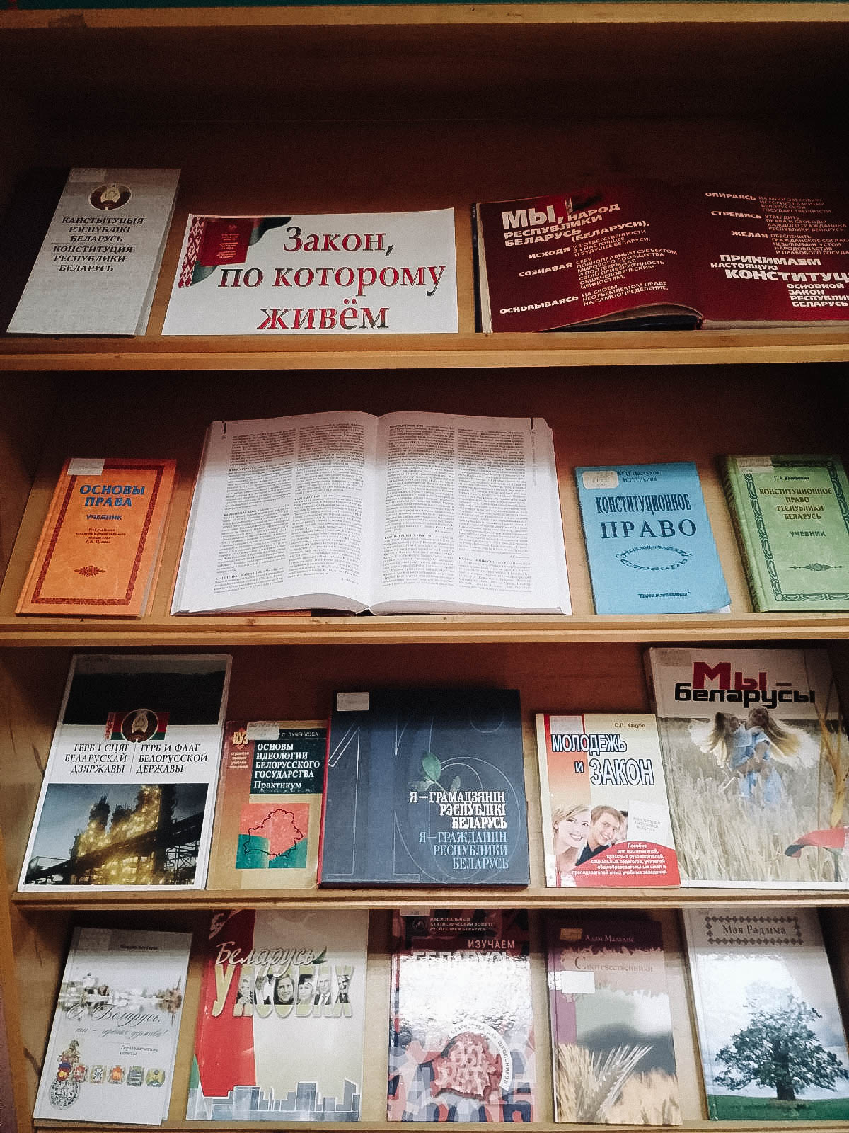 Ко Дню Конституции в юношеском отделе Брестской областной библиотеки им. М. Горького с 10 по 24 марта 2022 г. экспонируется выставка «Закон, по которому живём». На ней представлены словари, энциклопедии, а также учебники, отражающие становление конституционного права в Республике Беларусь.