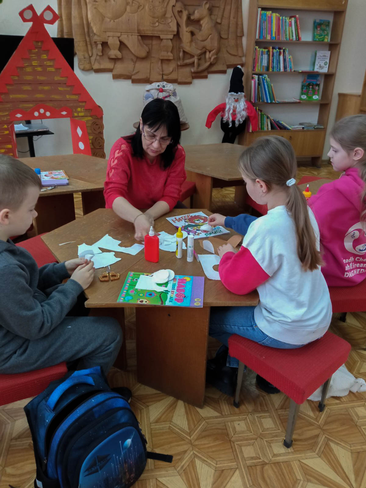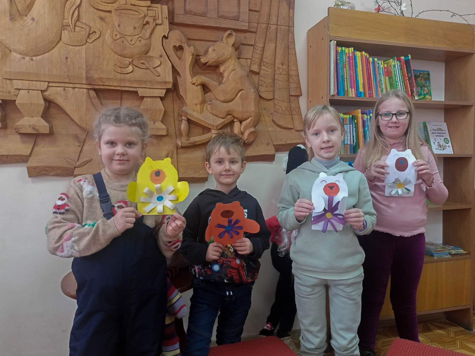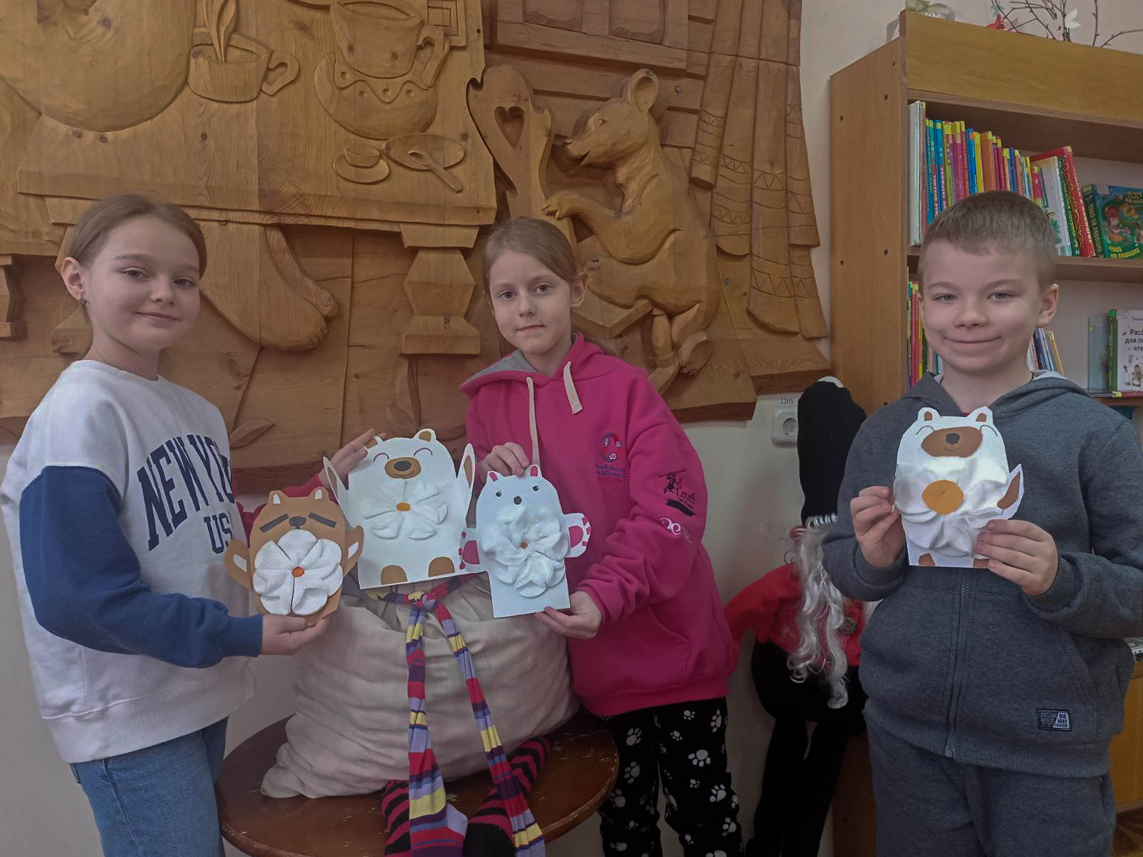 Юные волшебники сделали открытки-обнимашки в форме медвежонка с мягкой ромашкой на животиках. Одну из них подписали детской писательнице Татьяне Демидович.