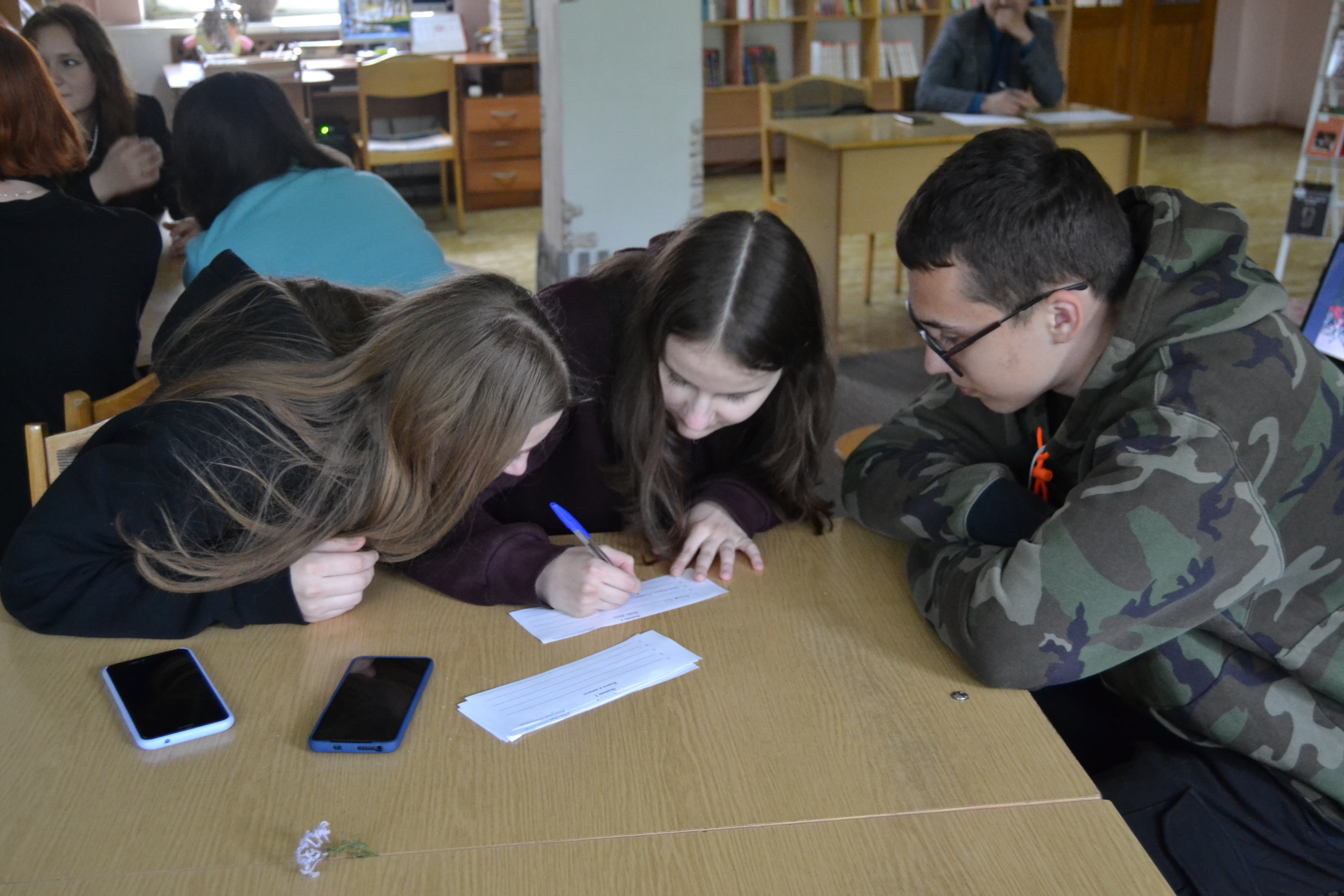 18 мая к нам пришли ребята из УО «Брестский государственный колледж связи». Они разделились на три команды. Соревновались практически на равных. Но победителями стали ребята из команды с говорящим названием «Победа». Они ответили практически на все вопросы викторины и получили подарки от библиотеки и своего преподавателя.
