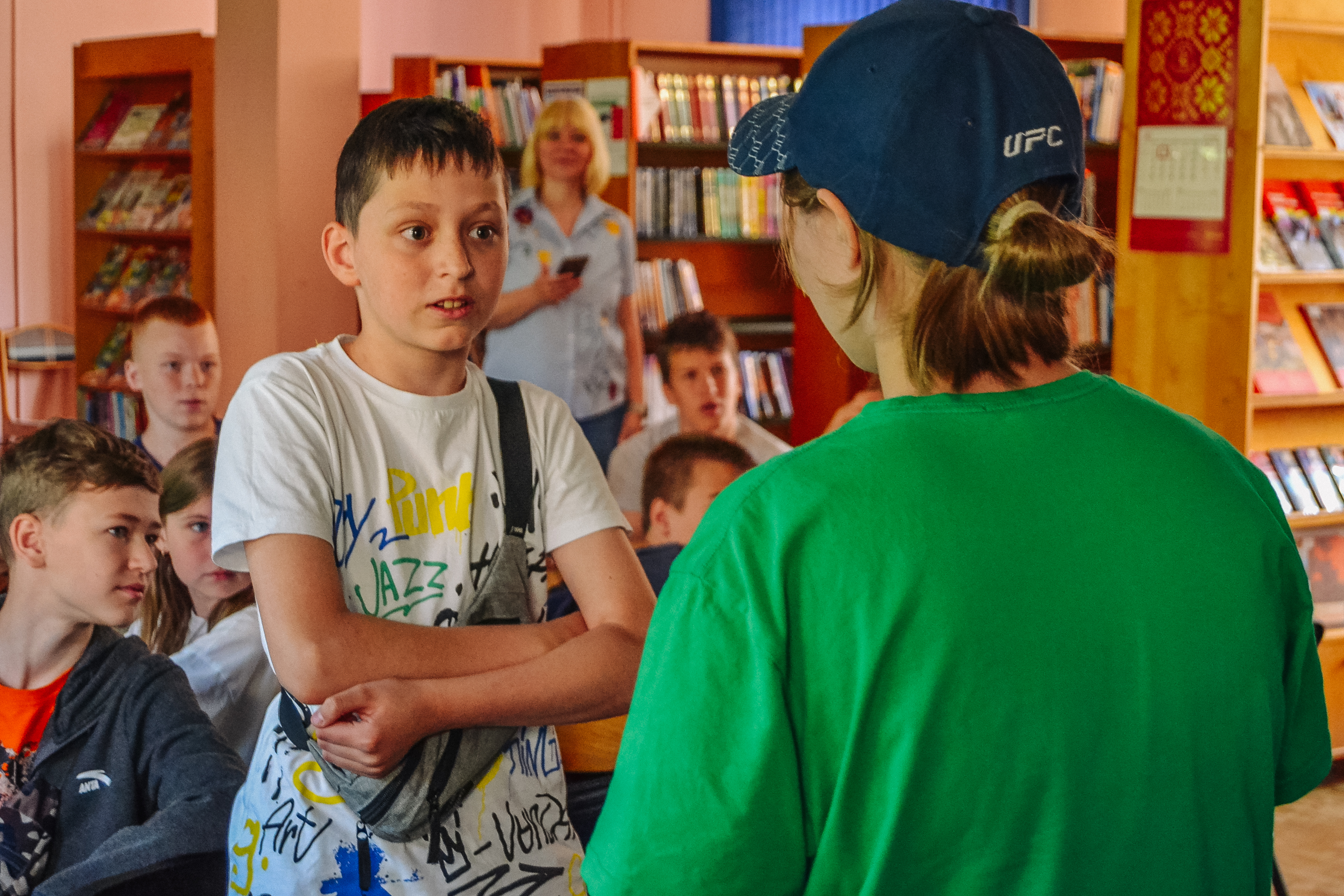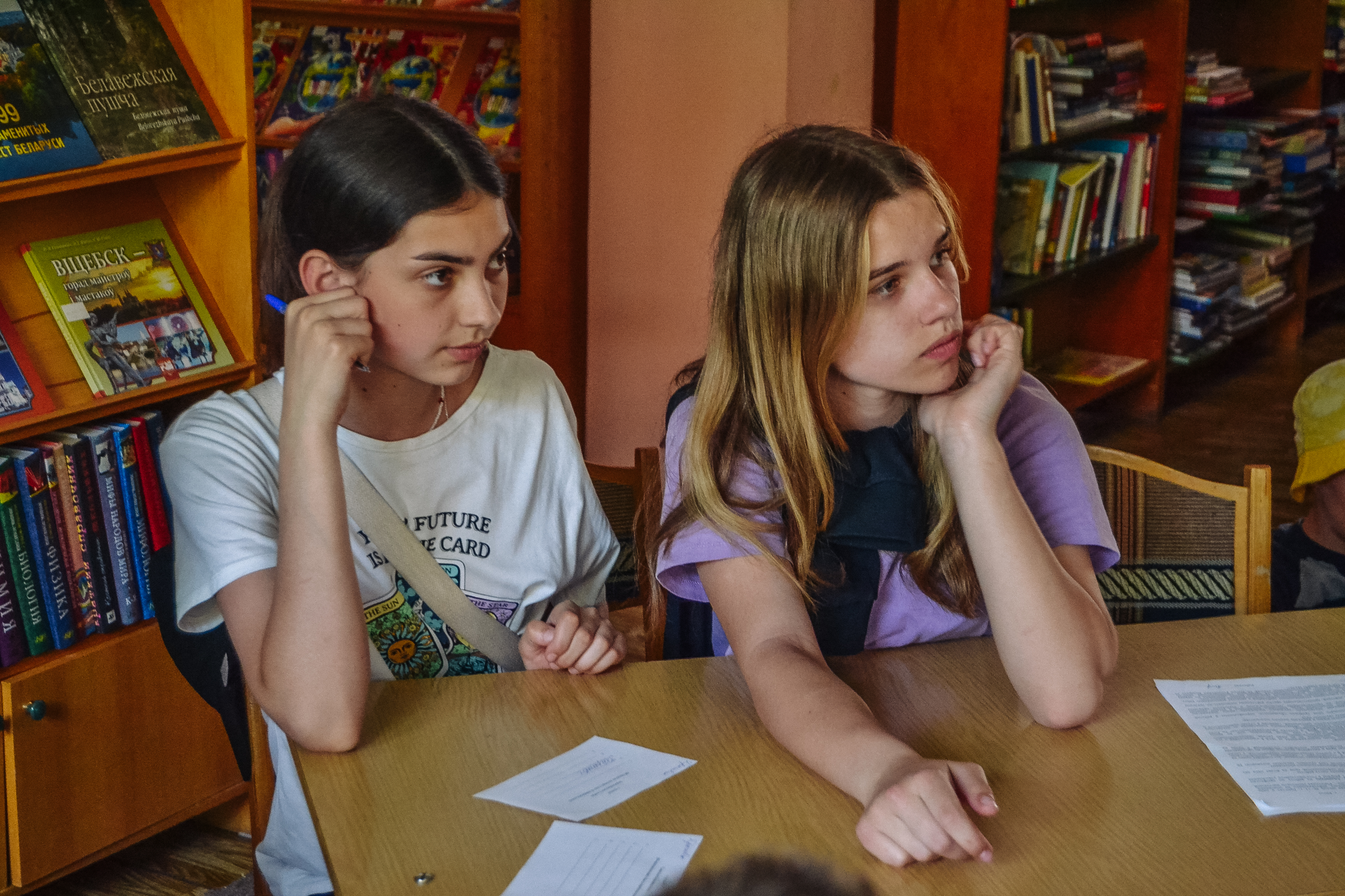 В юношеском отделе с ребятами из пришкольных лагерей школ № 11, 16 мы разговаривали на белорусском языке, вспоминали белорусскую литературу и известных писателей. Говорили об известных брестчанах и достопримечательностях Брестчины. А ребята из гимназии № 1 имени защитников Брестской крепости попали в удивительный мир детективных историй и попробовали себя в качестве настоящих сыщиков: узнавали звуки, разгадывали шифровки, примерили на себя роль адвоката и, конечно же, узнали много нового о книжных детективных историях и их авторах.