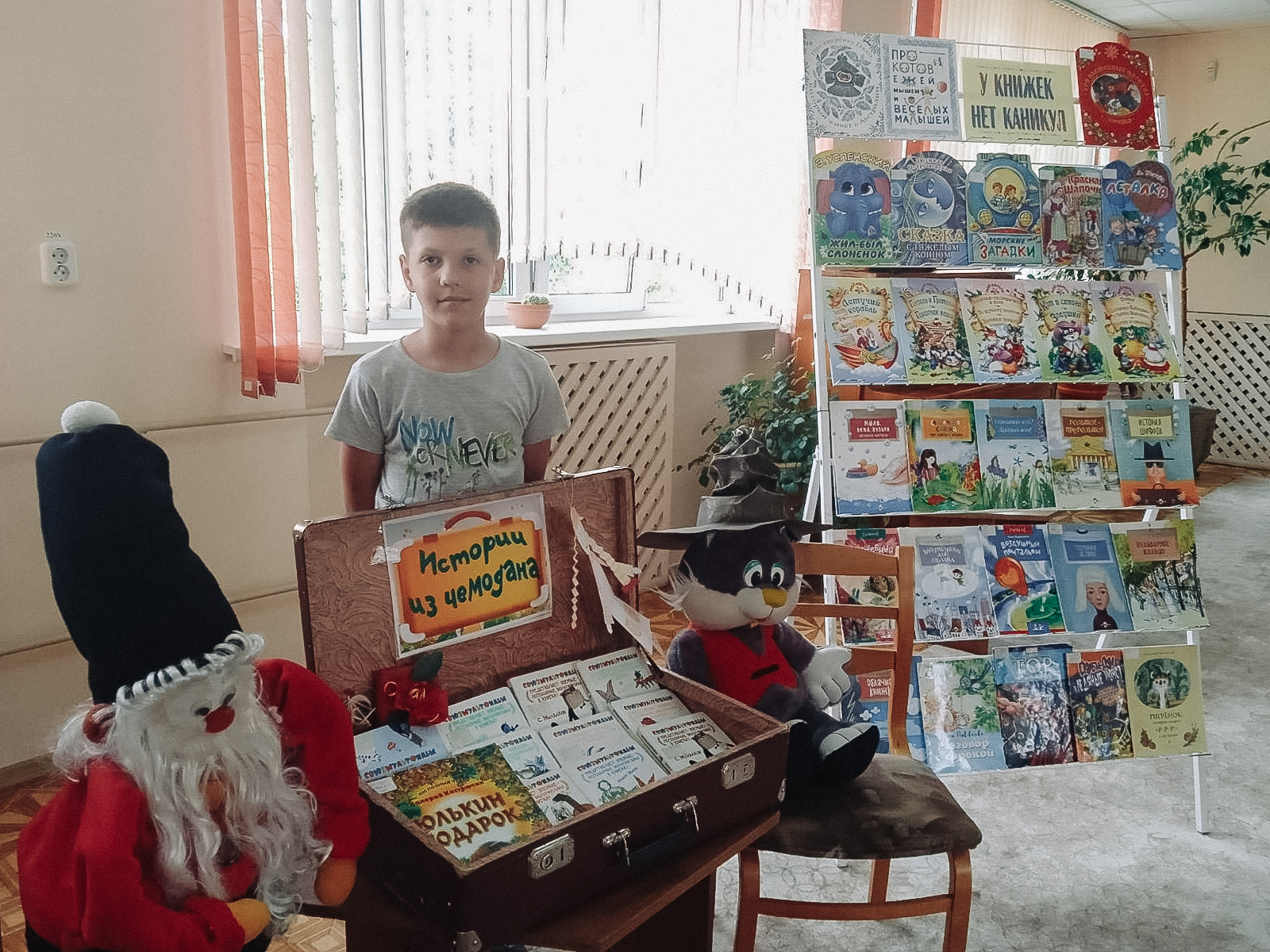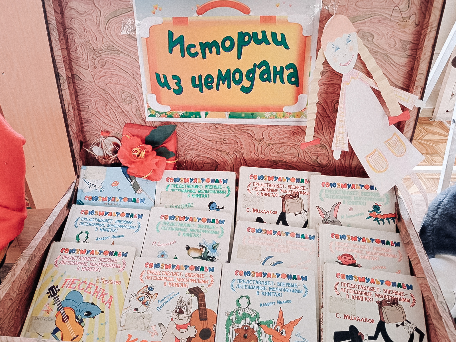 К лету в детском отделе оформлена книжная выставка для маленьких читателей «Истории из чемодана», в котором собраны книги серии «Союзмультфильм»: «Кот, который умел петь» Л. Петрушевской, «Песенка мышонка» Е. Каргановой, «Клетка» А. Ивановой, «Знакомые лица» С. Михалкова и др.