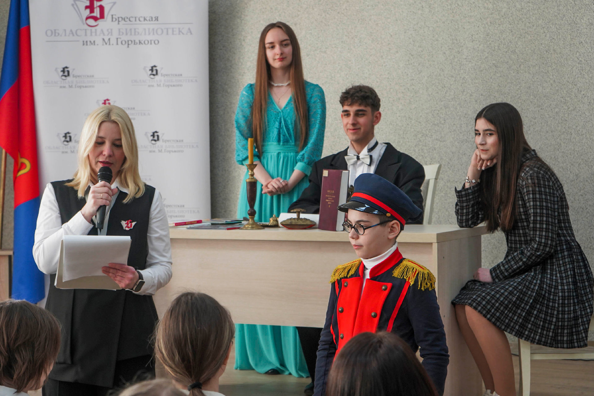 А потом воспитанники актёрской студии Янины Малинчик Тромза Никифор, Сосмина Кристина и Дубина Дарья представили вниманию зрителей настоящую сказку! Главный посыл сказки — в этом мире можно найти много прекрасного, главное — оглянуться вокруг. А читающий человек благодаря развитому воображению сможет и вовсе рассмотреть нечто особенное.