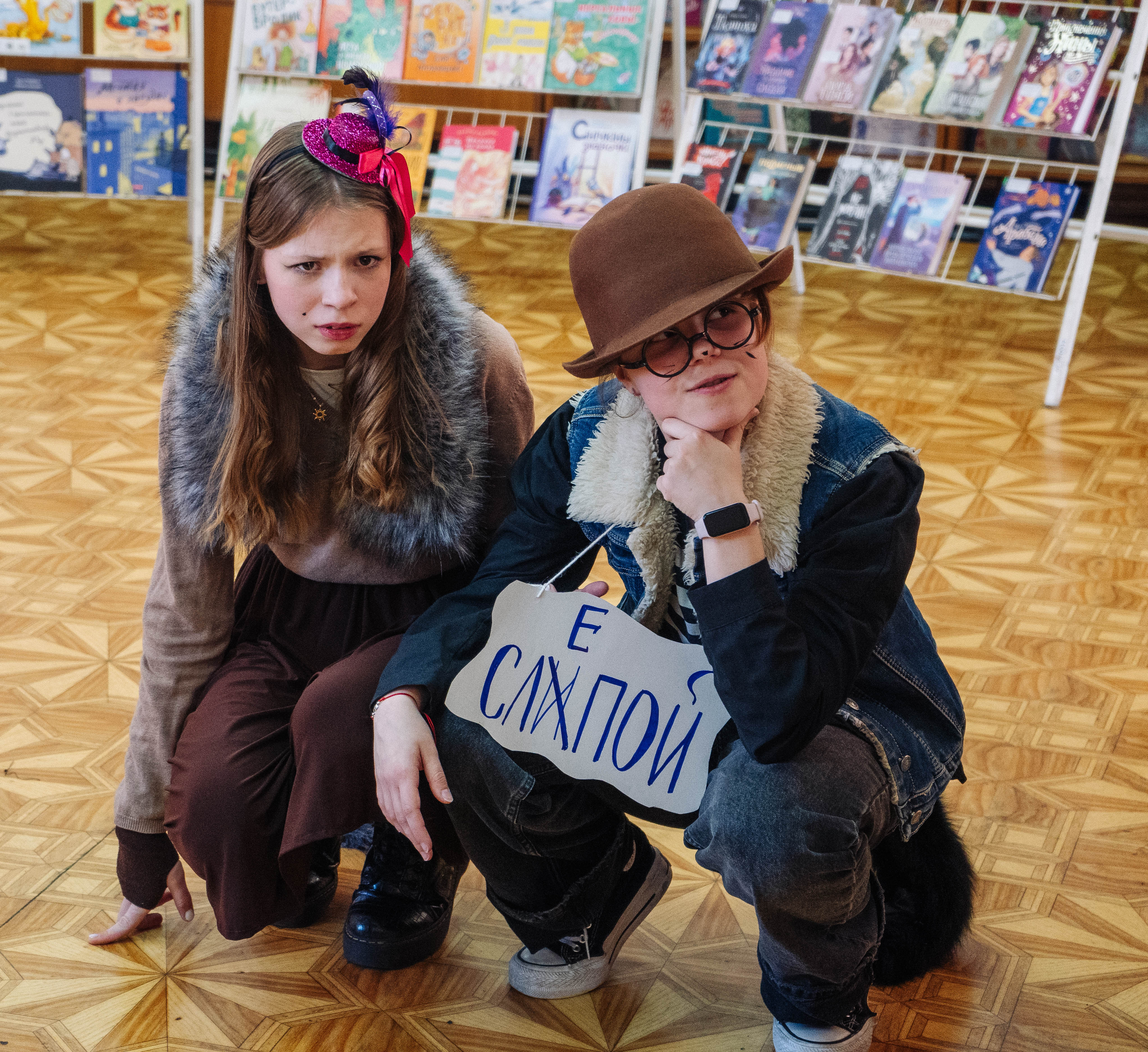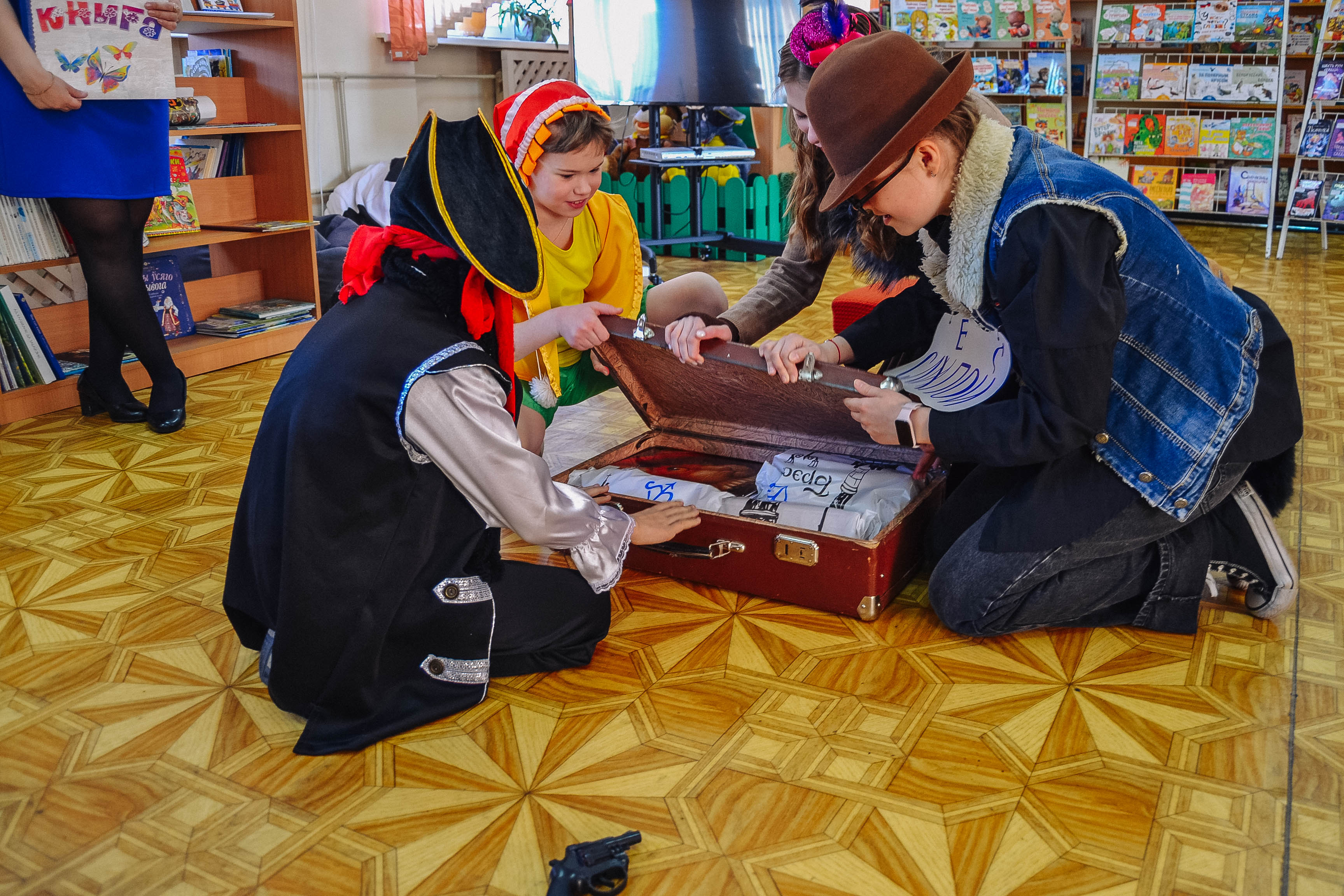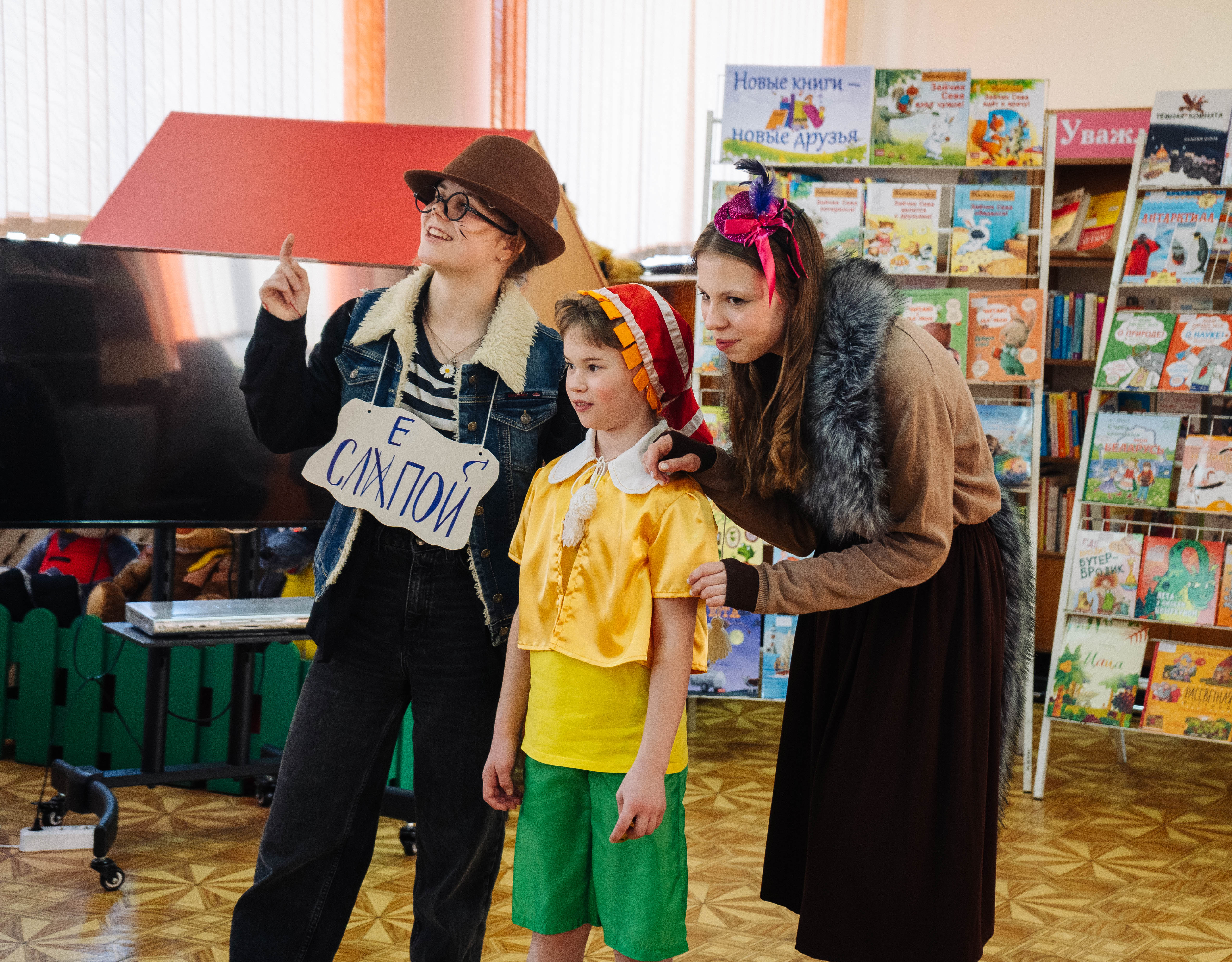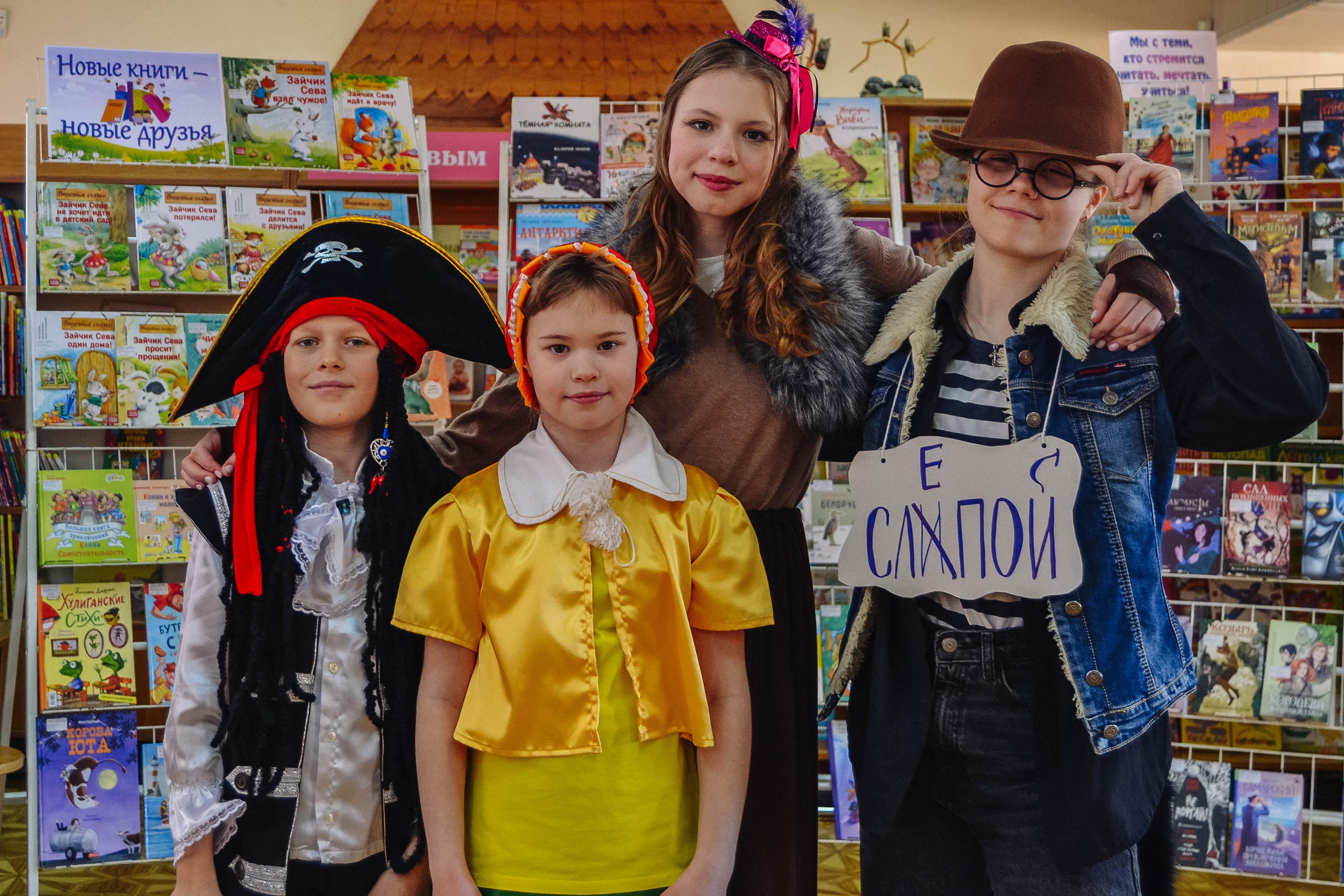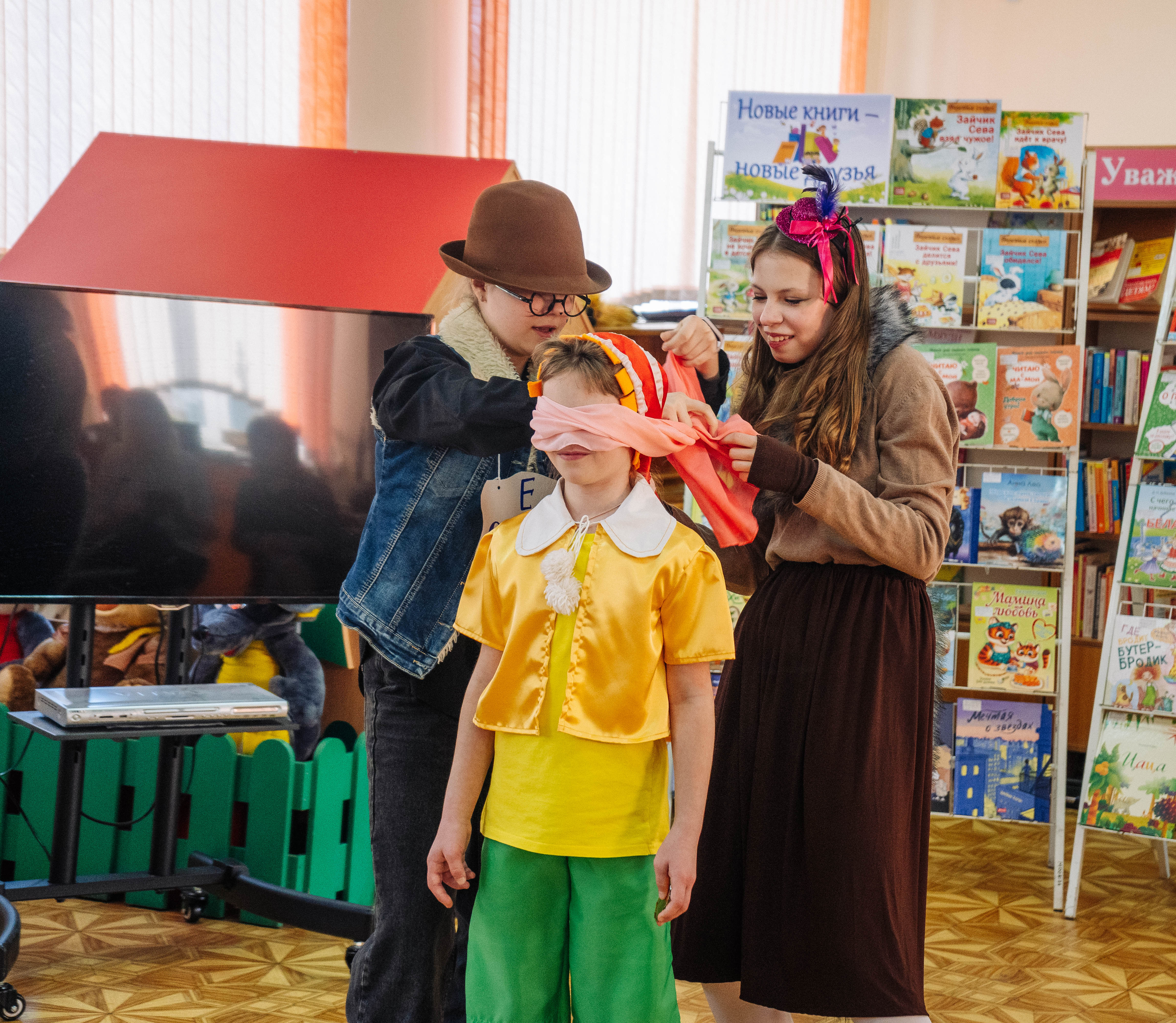 «Приключения в библиотеке» — так решили назвать праздник сами ребята. Открыла праздник Королева Книги — библиотекарь детского отдела Важинская Вероника Михайловна. Наши друзья-читатели Орехво Даша, Сивоха Юля, Беляков Максим и Шубская Маша перевоплотились в героев книги Алексея Толстого «Золотой ключик, или Приключения Буратино» — кота Базилио, лису Алису, весёлого Буратино и искателя сокровищ Пирата. Вместе с гостями праздника сказочные герои играли, веселились, пели и танцевали.