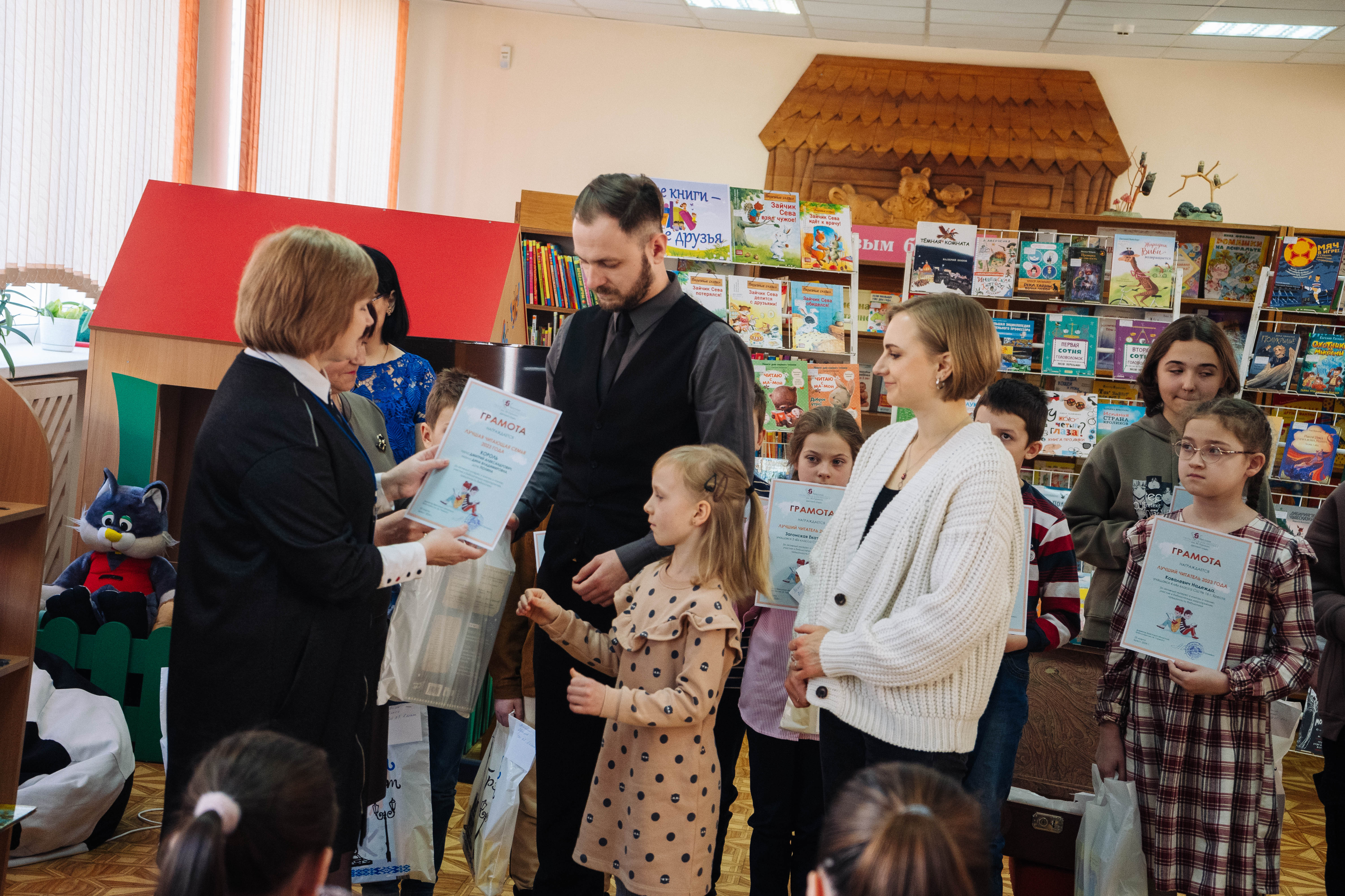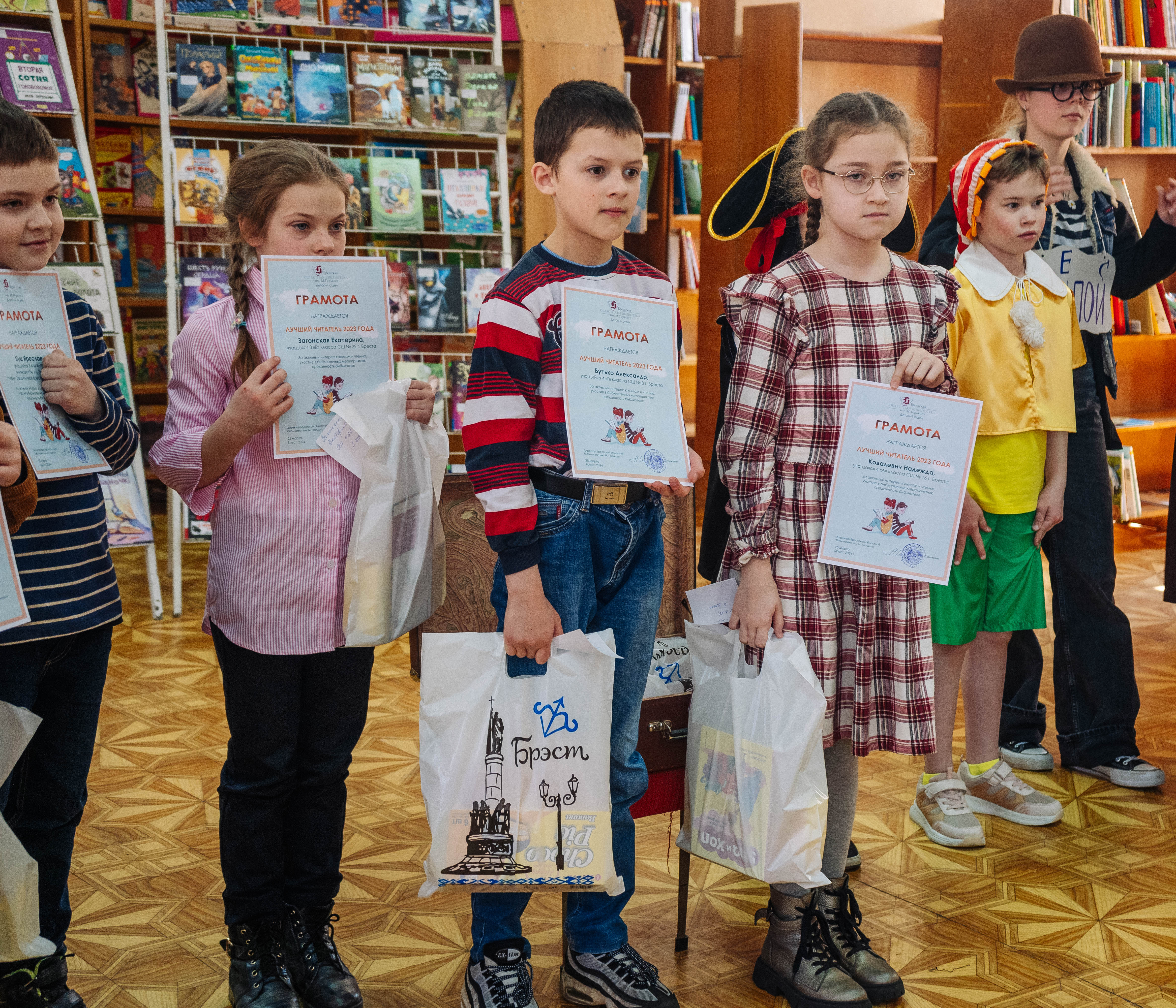 После завершения развлекательной части праздника заместитель директора по основной деятельности Брестской областной библиотеки Веремчук Лариса Эдуардовна вручила Почётные грамоты и книжные подарки «золотым лучикам» (ЛУчшим ЧИтателям Книг детского и юношеского отделов) 2023 года. Ими стали 14 человек из 10 учебных заведений города Бреста.