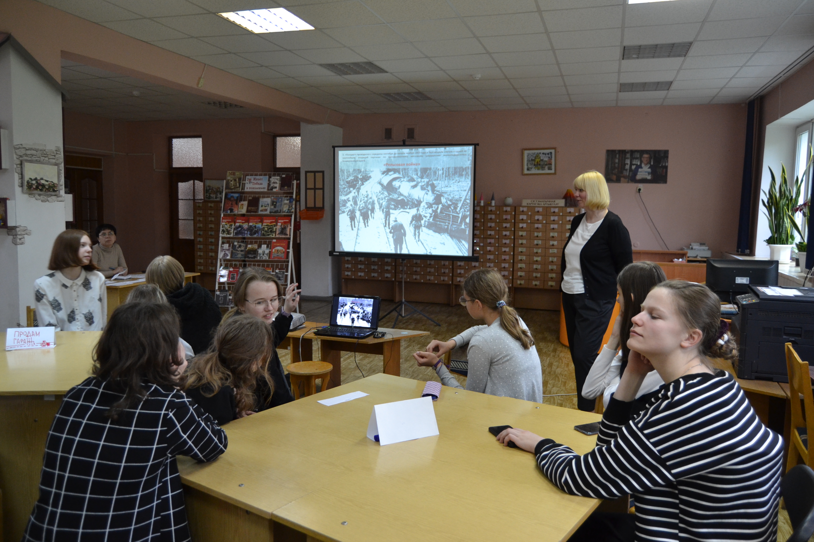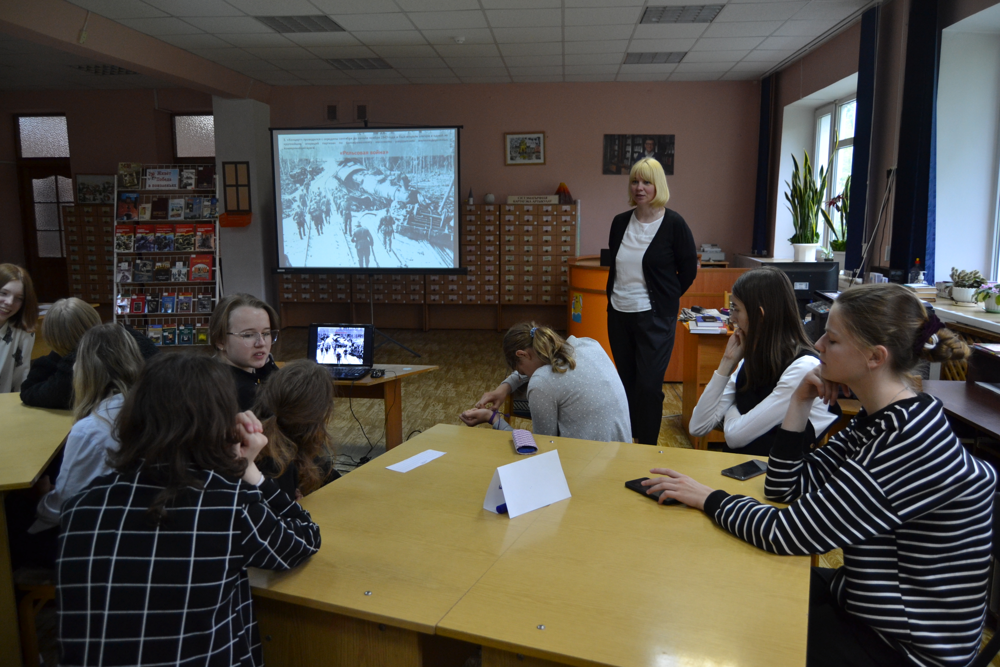 15 мая в юношеском отделе для учащихся 9 «Г» класса Брестской санаторной школы-интерната и учащихся колледжа приборостроения были организованы патриотический квиз «Живёт победа в поколеньях» и военно-патриотическая игра-викторина «Что мы знаем о войне». Для мероприятий была подготовлена выставка литературы, благодаря которой участники смогли справиться с заданиями игры.