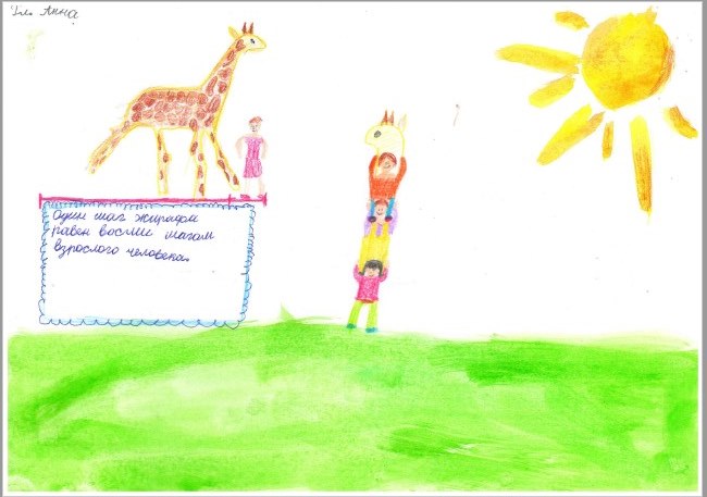 11. Глущук Анна, 7 лет, СШ № 7. Жираф — иллюстрация к книге «Атлас животных».