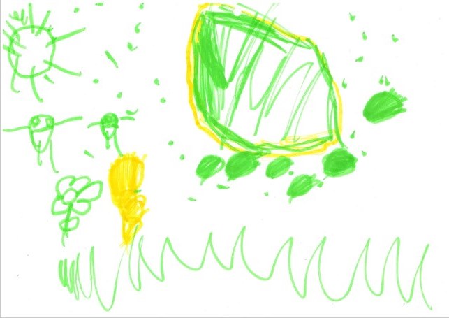 20. Глущук Вера, 3 года. Рисунок «Человечки катят камень».