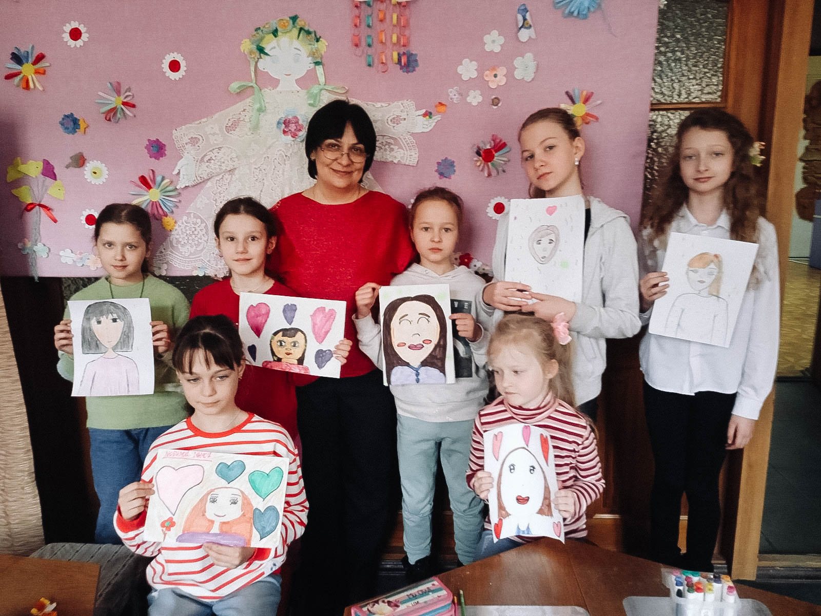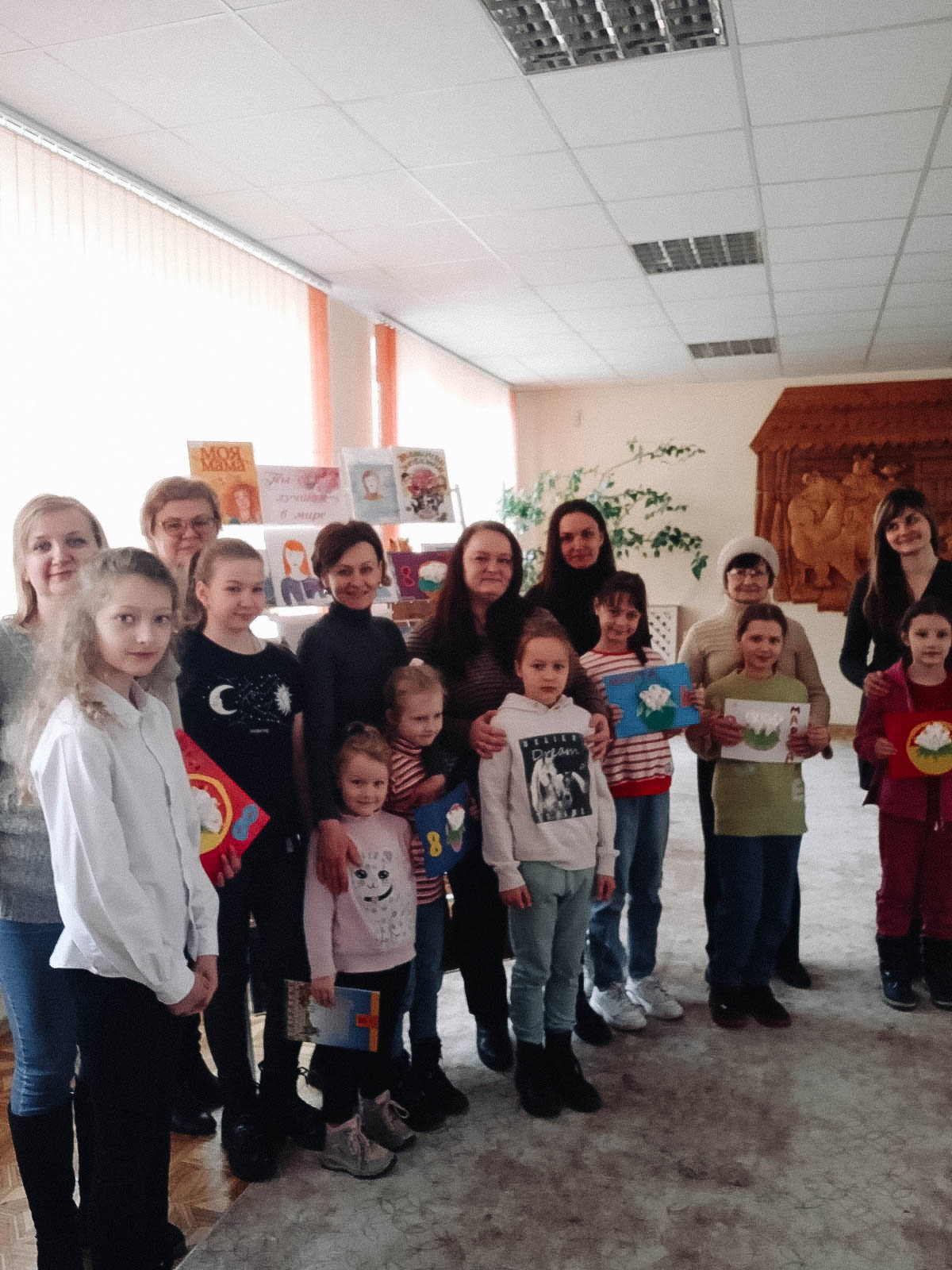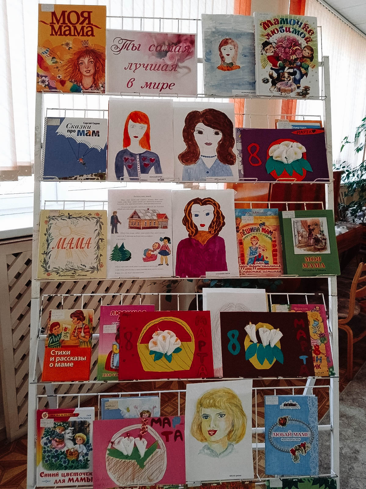 В завершении праздника познакомились с книжно-иллюстративной выставкой «Ты самая лучшая мама» и нарисовали портреты любимых мам.