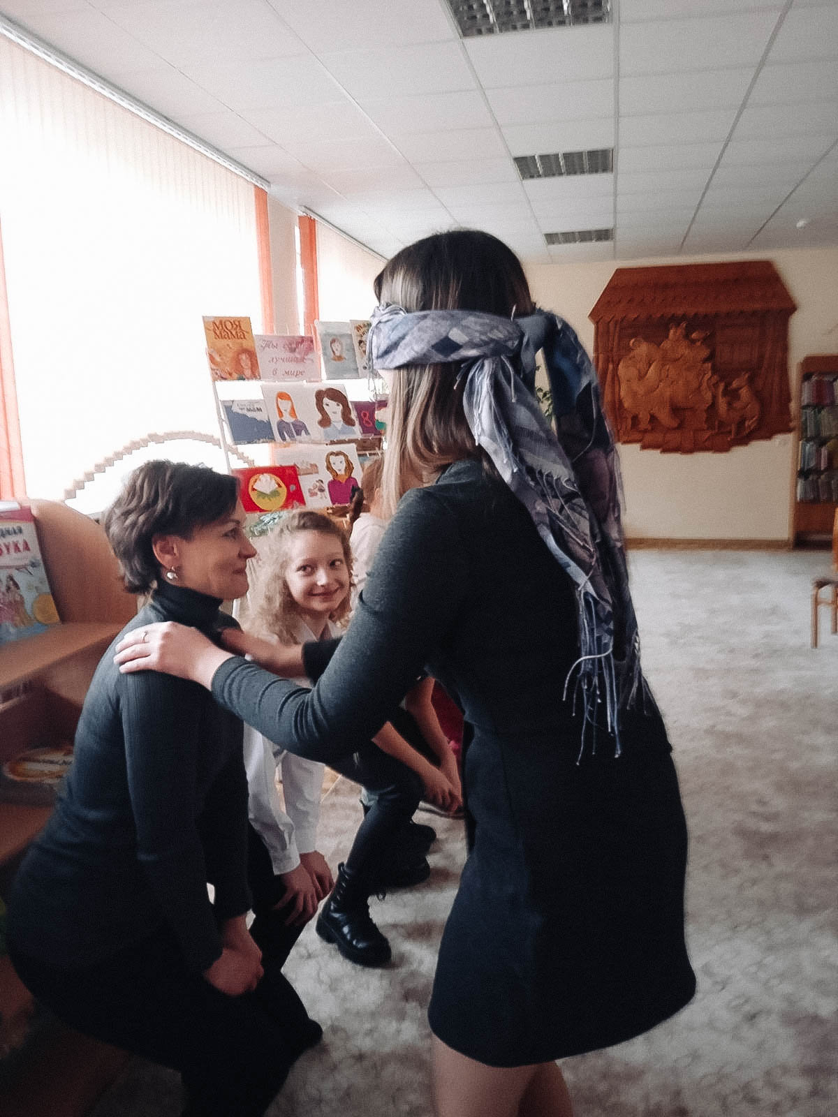 Продолжился праздник игрой «Узнай своего ребёнка», где мамы с завязанными глазами на ощупь узнавали своих детей. Это сделать было нелегко. Не все мамы с первого раза смогли это сделать.