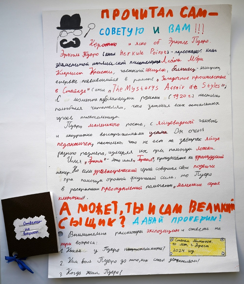 К номинациям критика и художника номинацию «Я — артист» добавил Степан Митюков (гимназия № 1 г. Бреста им. Защитников Брестской крепости; 5 класс). Степан предстал в образе Эркюля Пуаро — одного из главных героев произведений всемирно признанной «королевы детектива» Агаты Кристи. Очень эмоционально, захватывающе рассказал Степан об истории создания этого литературного персонажа, привёл интересные факты из его «биографии», а также продемонстрировал слепленную из пластилина скульптурную композицию «Великий сыщик Пуаро».