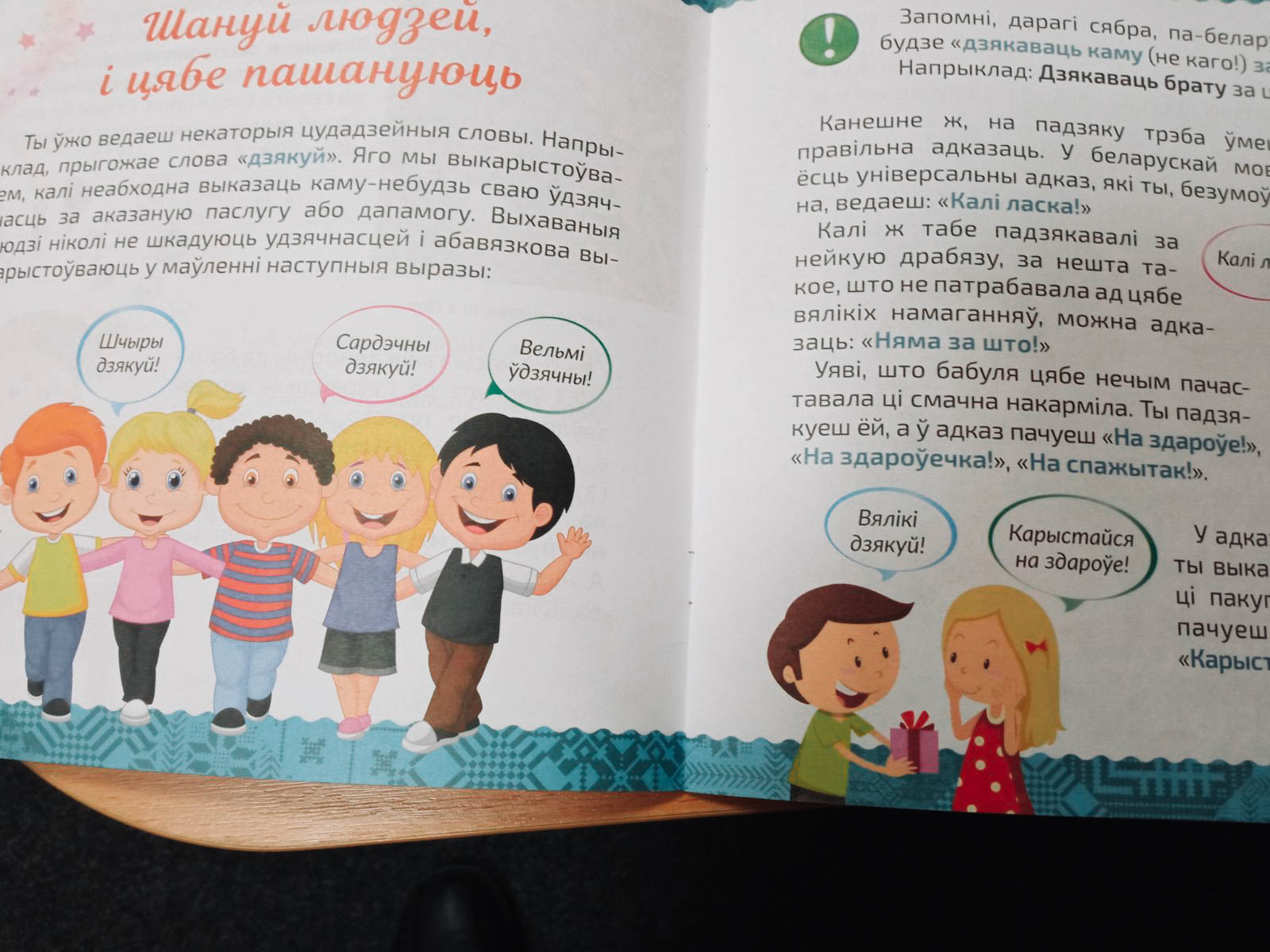 Деці пачулі і пазнаёміліся са словамі , якія валодаюць неверагоднай сілай: калі ласка, прабачце, дзякуй і т. д.. Гэтыя словы здольныя пераконваць людзей і адчыняць закрытыя дзверы. Яны дапамагаюць у любой справе і ствараюць добрае ўражанне пра таго, хто штодня карыстаецца імі. Такім цудадзейным словам, якімі поўніцца беларуская мова, прысвечана кніжка С. В. Зелянко «Этыкет па-беларуску». Пасля знаёмства з гэтай цудоўнай кнігай усе разам адгадвалі крыжаванку, гулялі ў словы, гарталі новыя кнігі.