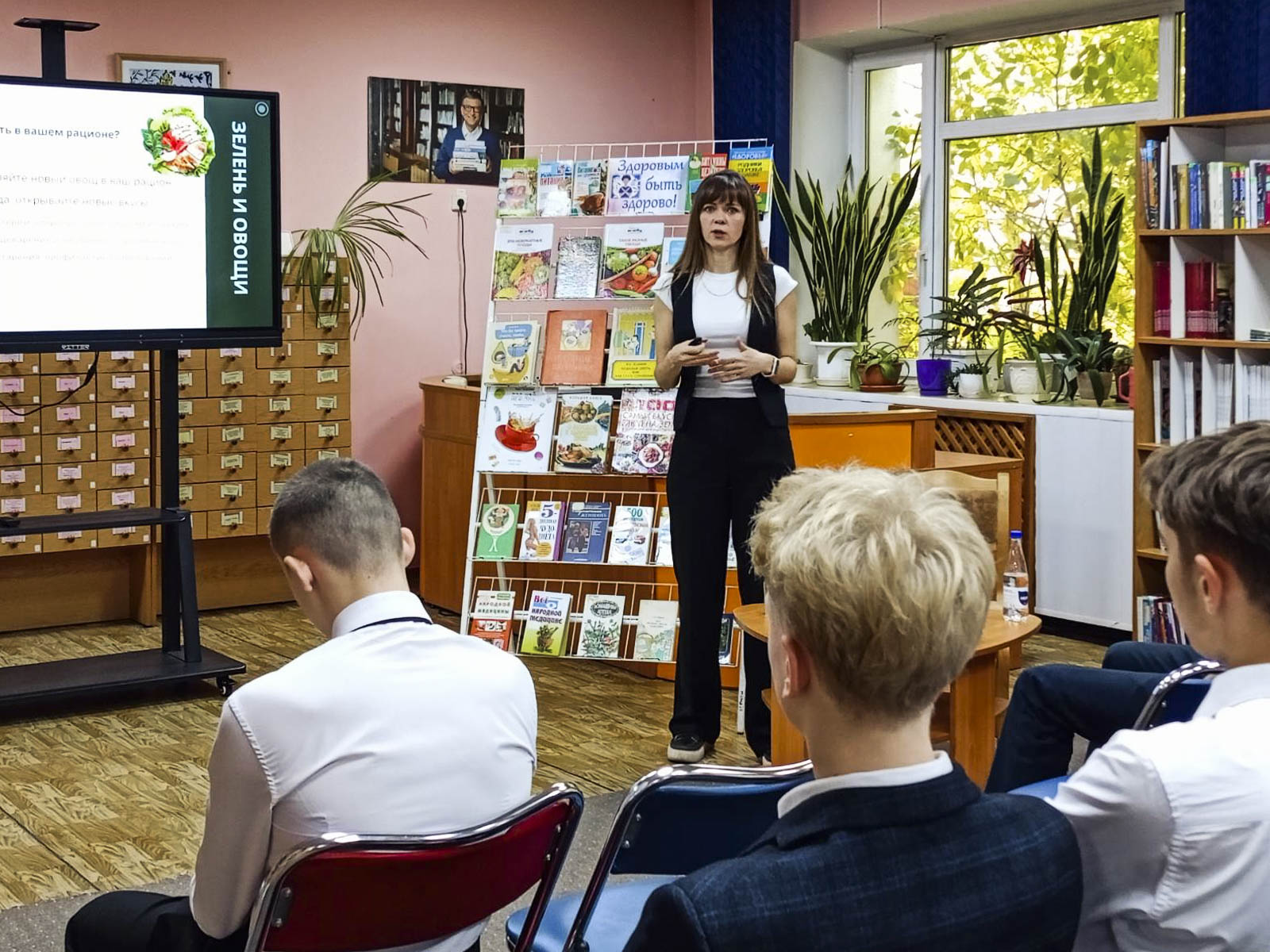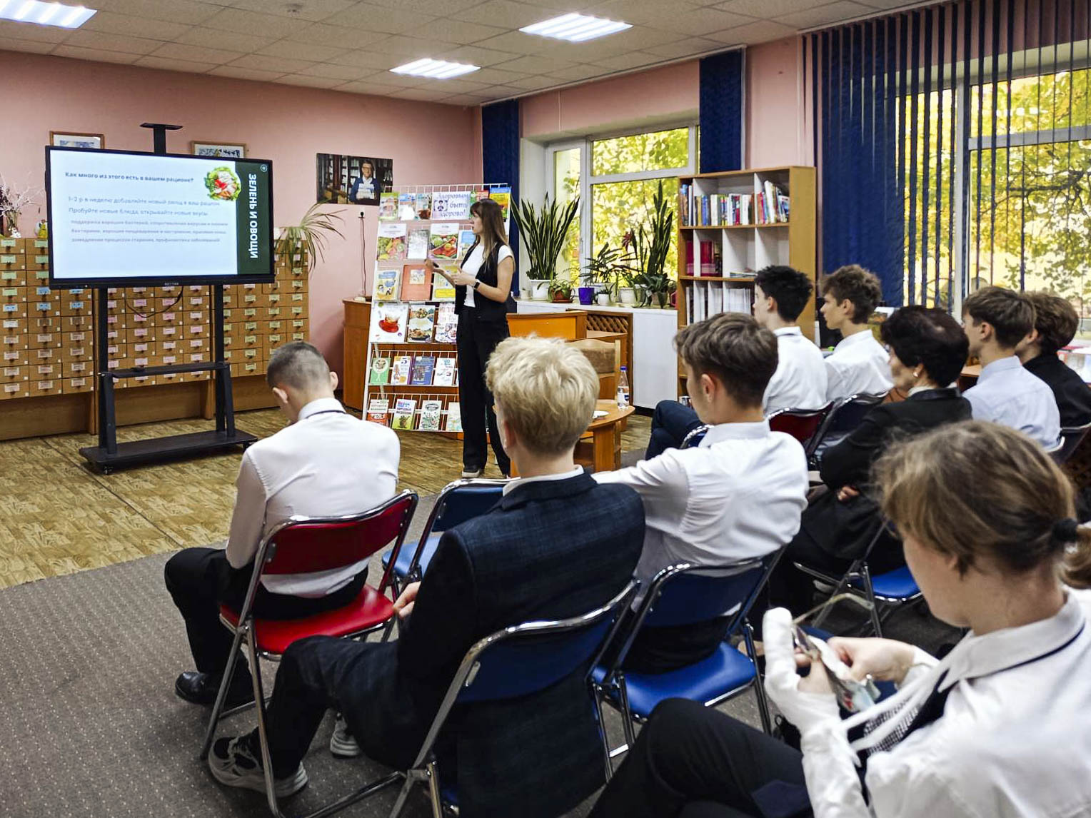 27 октября 2025 года учащиеся гимназии № 1 г. Бреста имени Защитников Брестской крепости приняли участие в увлекательной и познавательной встрече с нутрициологом Анной Путилиной, которая состоялась в юношеском отделе Брестской областной библиотеки. В рамках мероприятия ребята узнали о важности правильного питания, о том, как пища влияет на их здоровье, энергию и развитие.