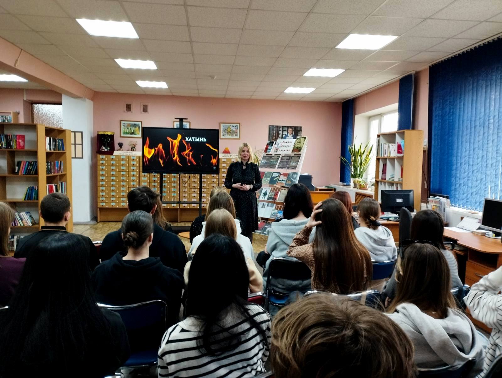 Особое место в мероприятии заняли громкие чтения бессмертной книги Алеся Адамовича, Янки Брыля и Владимира Колесника «Я з вогненнай вёскі». Вместе с библиотекарем ребята читали отрывки, в которых боль трагедии сожжённых деревень передана через живые голоса очевидцев. Эти строки, основанные на реальных свидетельствах, никого не оставили равнодушными.