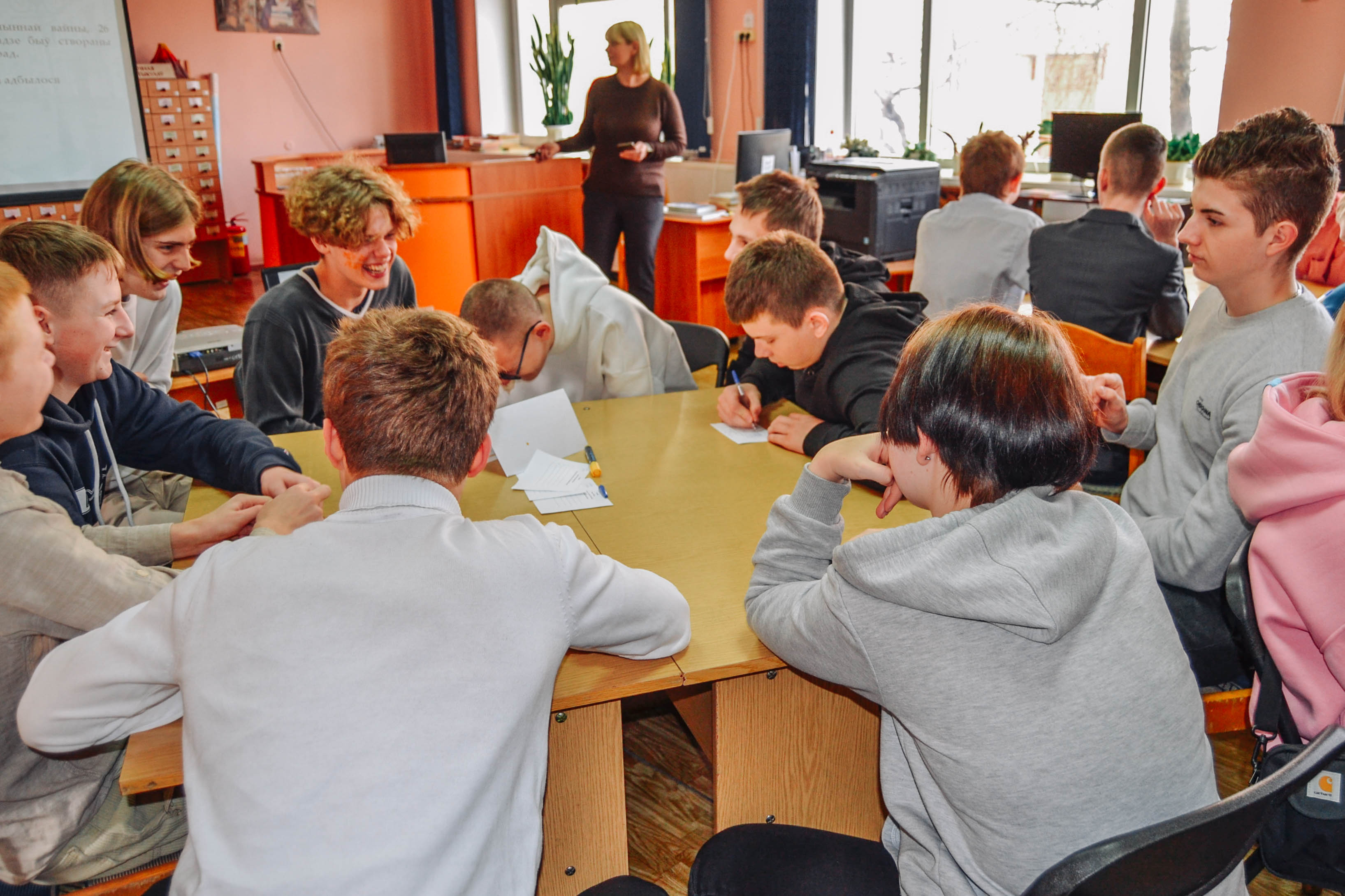 Юнацкі аддзел працягвае тыдзень роднай мовы. Сёння праверыць свае веды беларускай мовы і літературы завіталі навучэнцы Брэсцкага дзяржаўнага гандлёва-тэхналагічнага каледжа і шасцікласнікі сярэдняй школы № 3. Усе ўдзельнікі паказалі выдатныя веды роднай мовы, а яшчэ даведаліся пра магчымасці бібліятэкі для вывучэння як беларускай, так і іншых моў. Дзяўчаты з каледжа пасля віктарыны затрымаліся ў бібліятэцы, каб пазнаёміцца з навінкамі сучаснай юнацкай літаратуры.