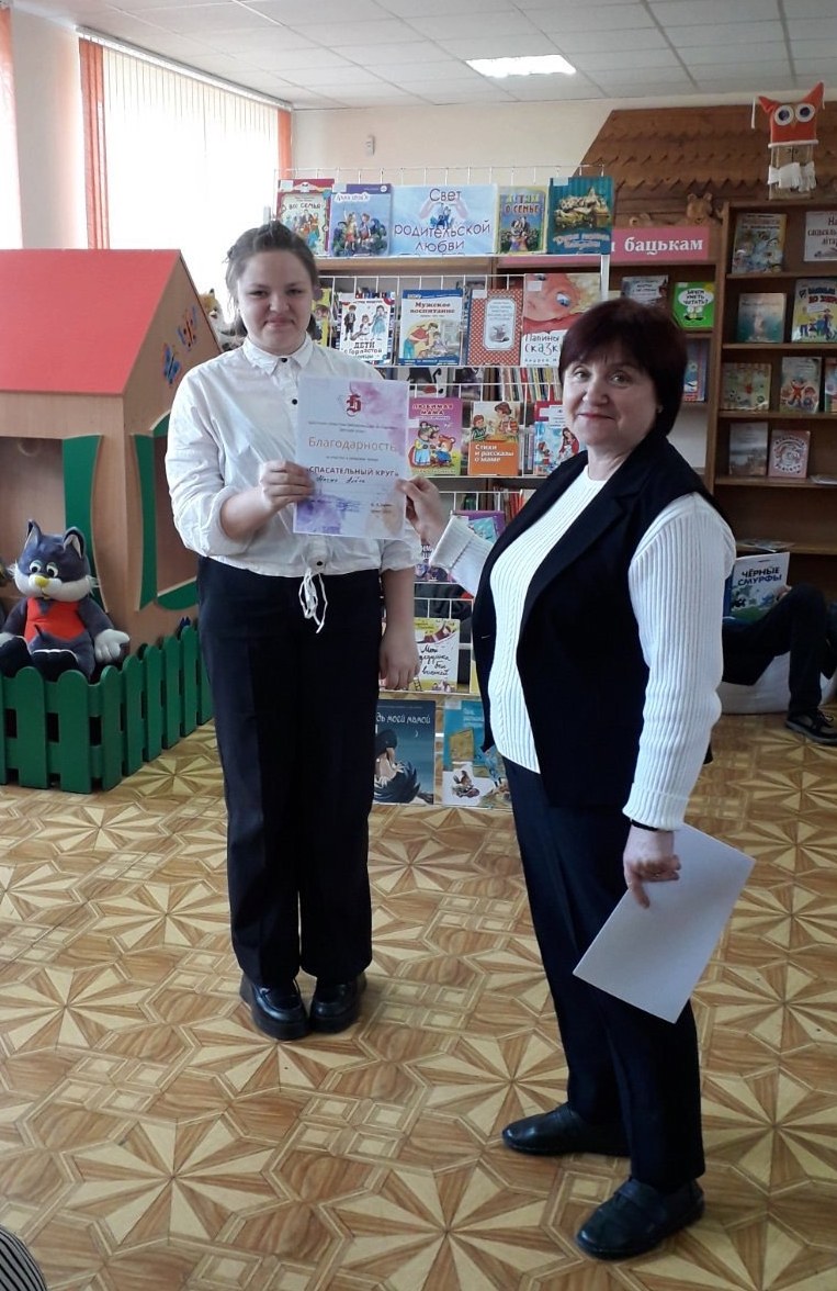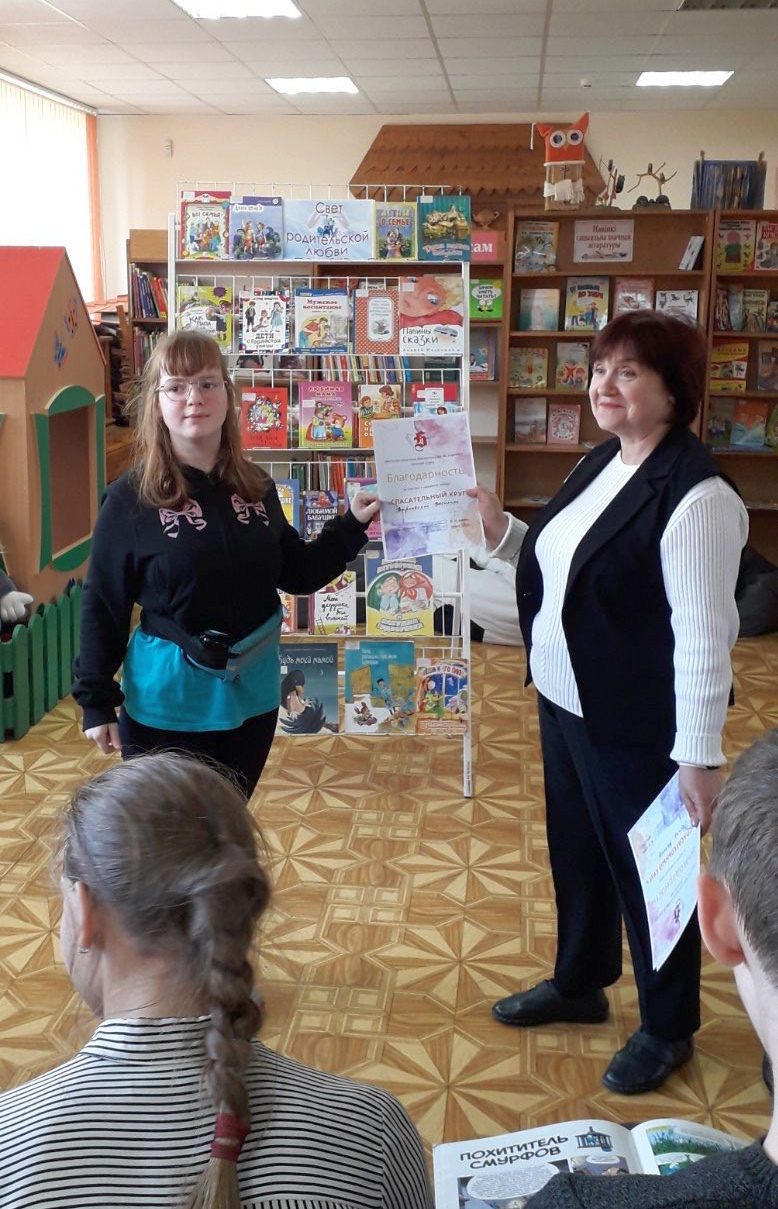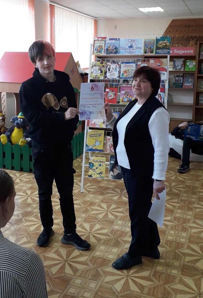 Для наших друзей из специальной школы №1 эта встреча в «Спасательном круге» стала последней. Ребята выросли, а это значит, что их ждут новые горизонты. Отметили достижения наших выпускников. Отдельных слов благодарности заслуживает учитель Лариса Степановна Остапюк, которая на протяжении двух лет с большим удовольствием сотрудничала с детским отделом. Её профессионализм, терпение и любовь к детям сыграли ключевую роль в успехе книжного театра. Благодаря усилиям Ларисы Степановны ребята не только развили свои творческие способности, но и приобрели важные жизненные навыки: умение работать в команде, слушать и понимать друг друга.