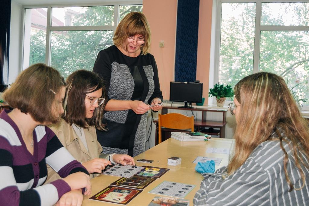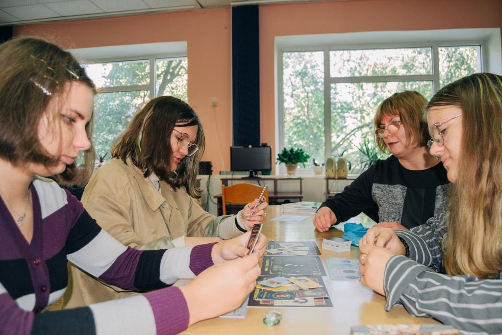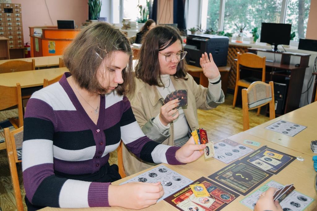 Па заканчэнні кніжнага агляду ў чытальнай зале дзяўчынкі з азартам паглыбіліся ў магію кніжнага свету, гуляючы ў «Кнігаполію» — атмасферную настольную гульню, створаную знакамітай беларускай пісьменніцай Надзеяй Ясмінска. «Кнігаполія» не патрабуе спецыяльных ведаў, стварае тэмы для кніжных гутарак, выхоўвае любоў да чытання і дазваляе дзецям адчуць сябе сапраўднымі кніжнымі калекцыянерамі.
