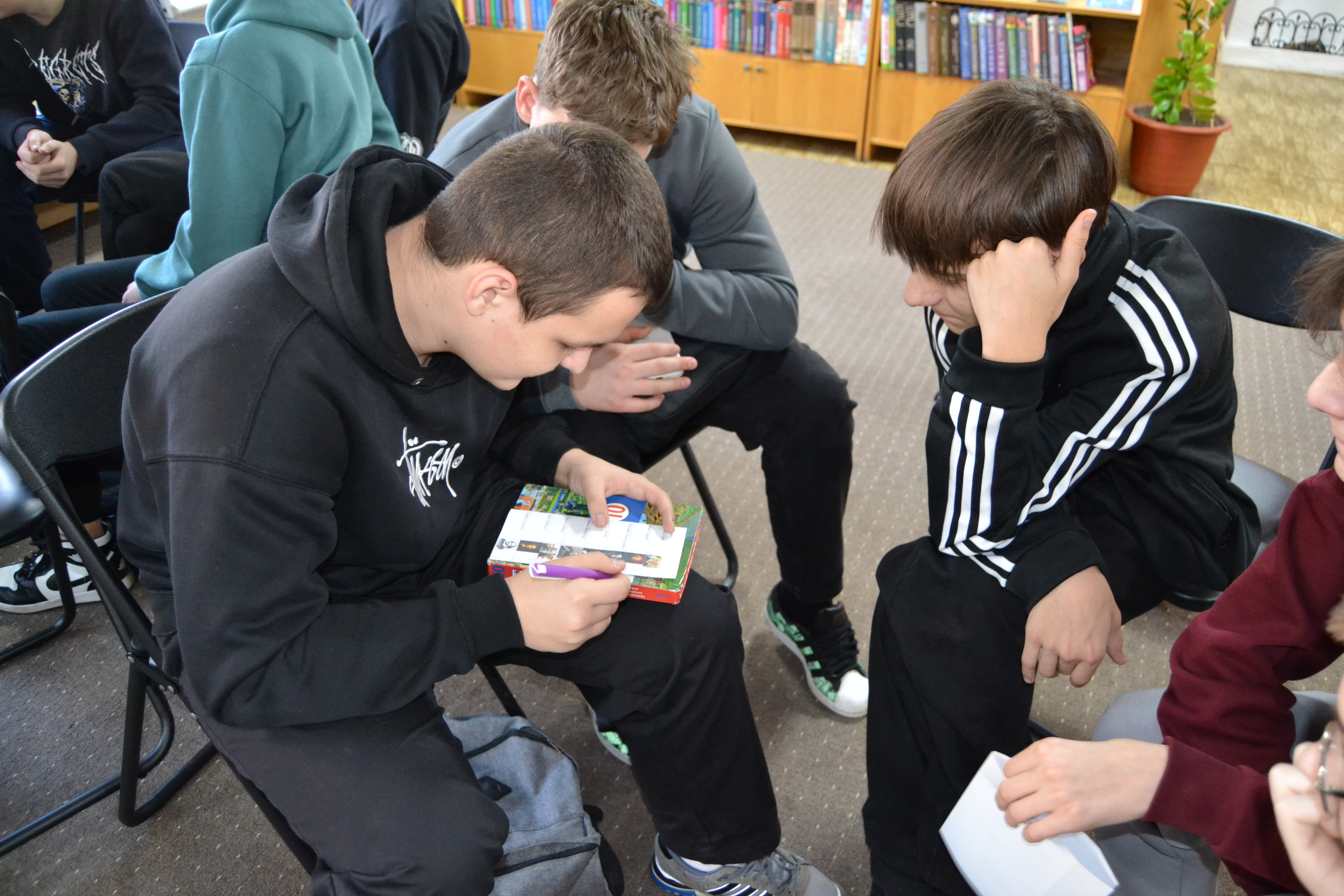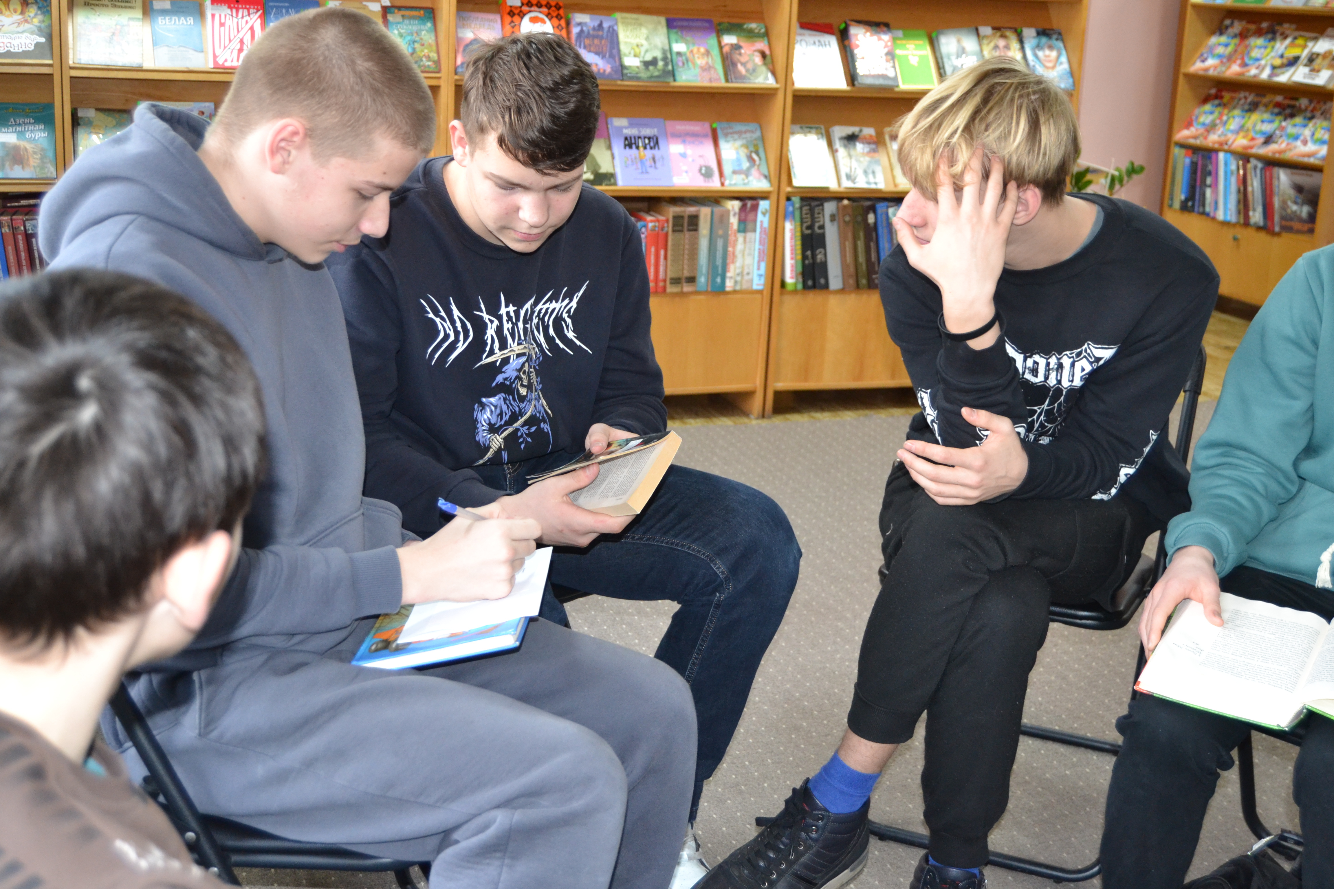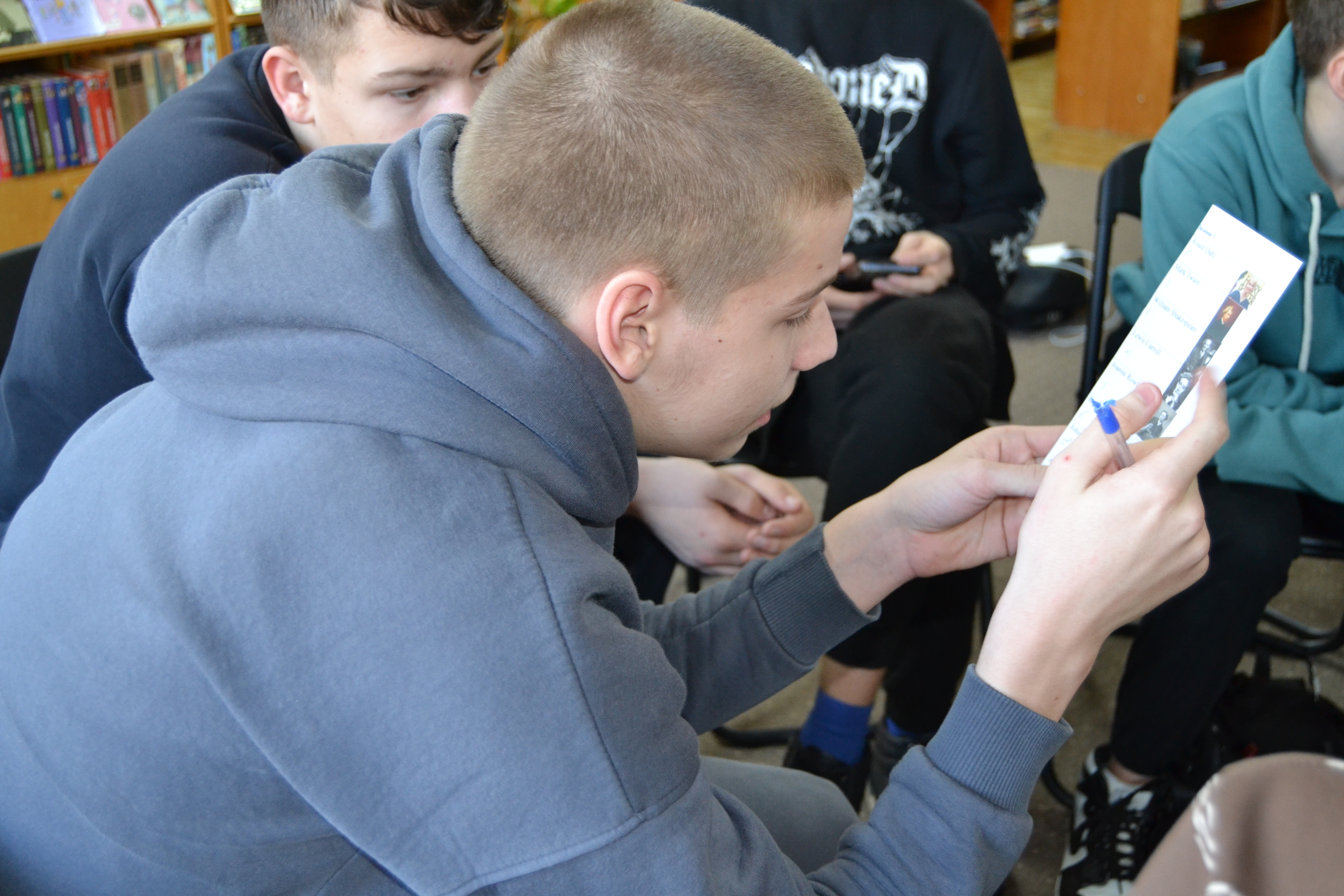 Учащиеся колледжа приборостроения и их прекрасный учитель Вероника Валерьевна провели внеурочное мероприятие в юношеском отделе, где соревновались на звание лучшего знатока британской литературы. Ребята узнавали интересные факты из мира книг, знакомились с британскими писателями и их произведениями, читая отрывки в оригинале, смотрели экранизации и узнавали авторов, по мотивам книг которых были поставлены фильмы.