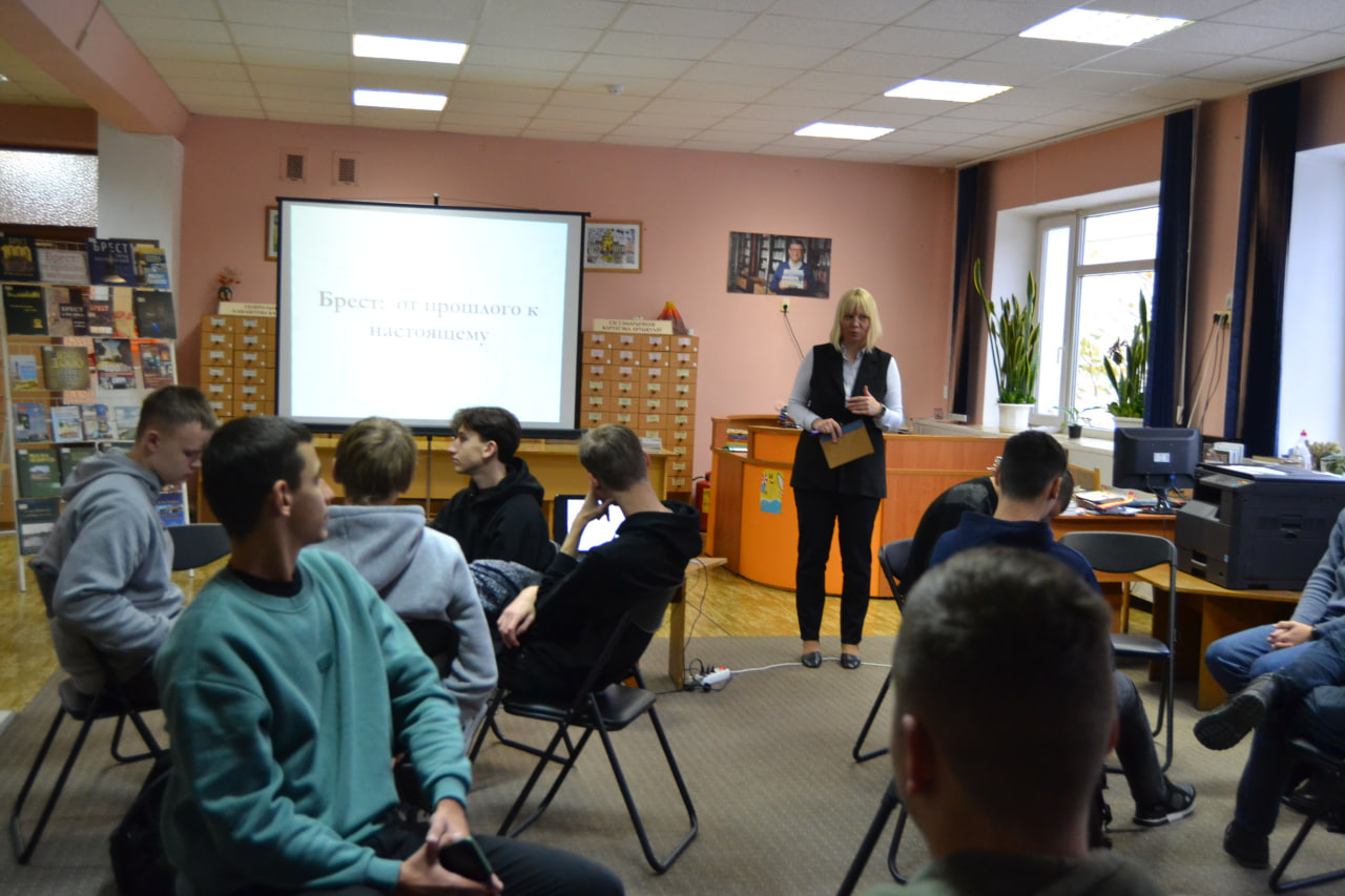 23 ноября 2023 г. сотрудники юношеского отдела познакомили учащихся колледжа приборостроения с историей Бреста и Брестской области, напомнили им о знаменитых людях и достопримечательностях родного края.