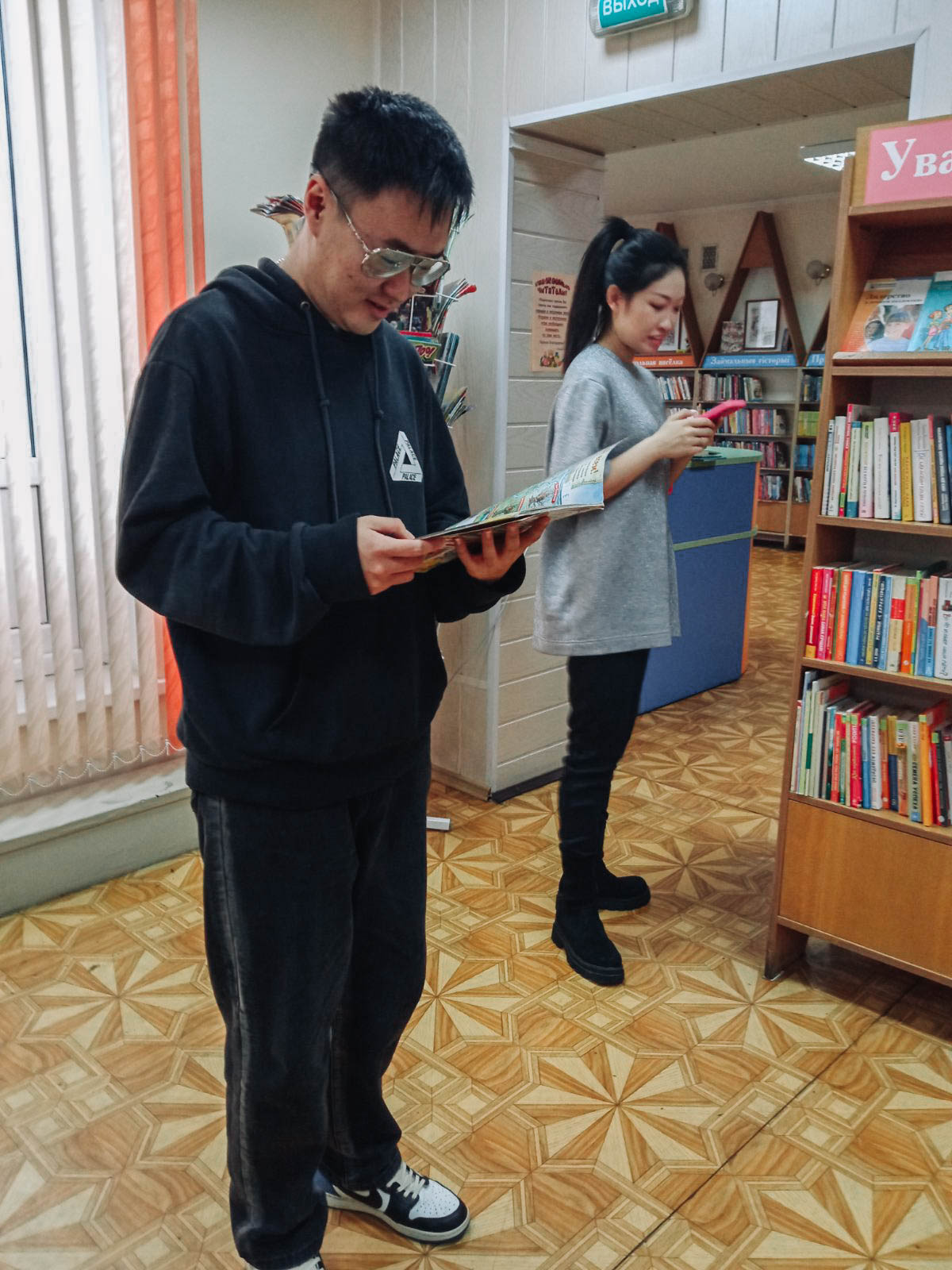 Сотрудники детского отдела провели ознакомительную экскурсию для китайских студентов. Гости читали детские сказки и участвовали в литературной игре. Затем смотрели мультфильм «Трое из Простоквашино» по мотивам повести Э. Успенского «Дядя Фёдор, пёс и кот». Кроме этого, студентам показали новинки литературы.