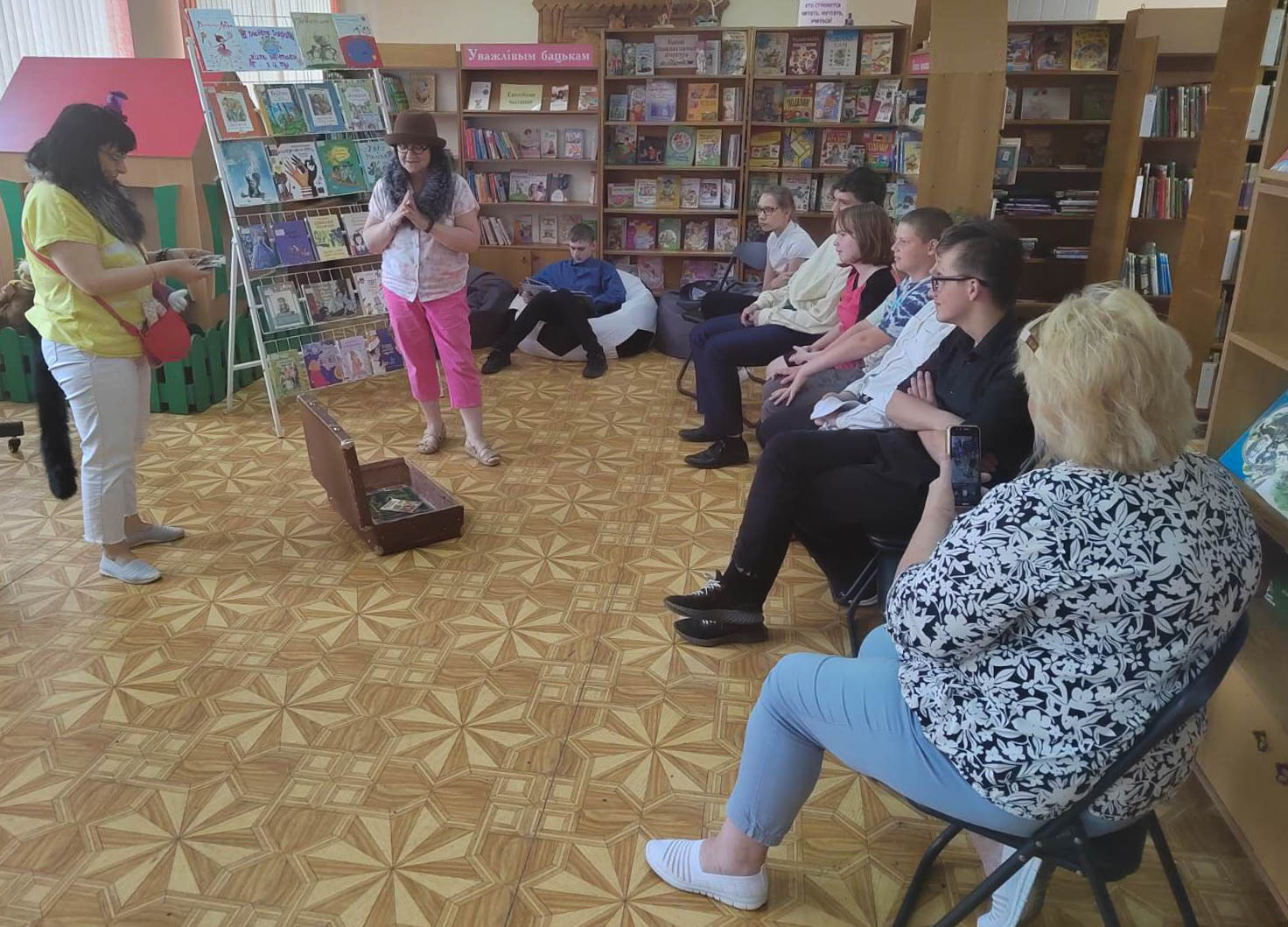 Вместе со сказочными героями — лисой Алисой и котом Базилио — ребята путешествовали по книжным страницам — «Сладкой», «Литературной», «Музыкальной», «Математической», вместе искали клад в волшебном чемодане. Этим кладом оказались книги, которые ребята взяли с собой.
