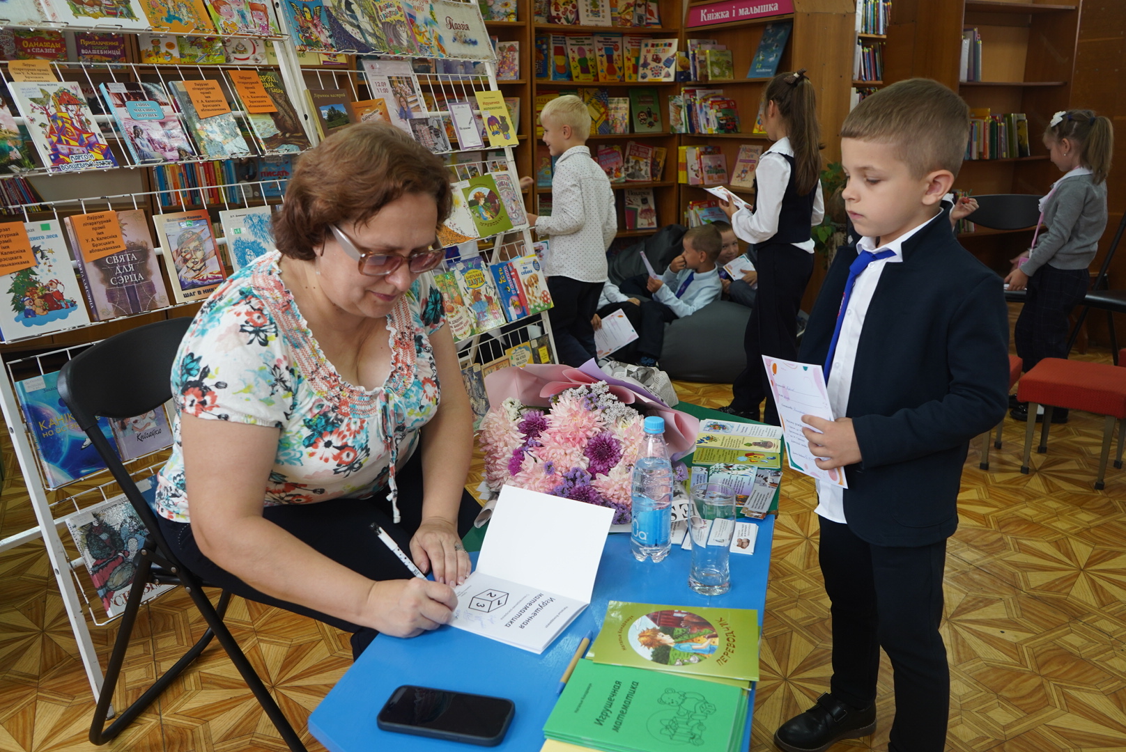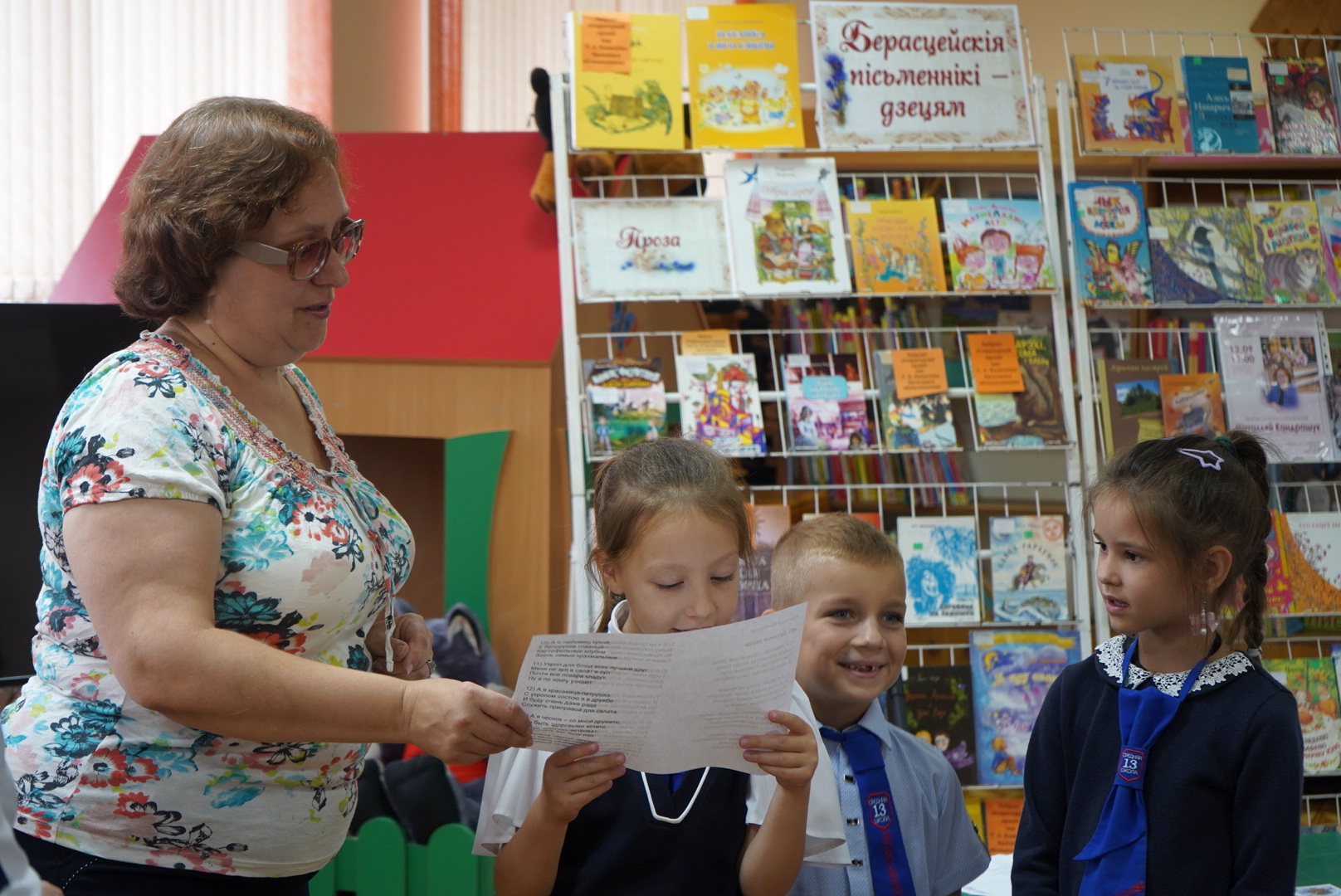 Активными участниками мероприятия стали мальчишки и девчонки 1 «А» и 1 «Б» классов СШ № 13 г. Бреста им. В. И. Хована — наши давние друзья и партнёры. С неподдельным интересом и вниманием они слушали рассказ гостьи о жизни и творческом пути, о том, как она находит сюжеты для своих произведений; с удовольствием читали скороговорки. Как обычно бывает, любопытные первоклашки засыпали гостью своими непосредственными вопросами. В завершение мероприятия все дети получили «Свидетельства о рождении читателя» и сладкий подарок.