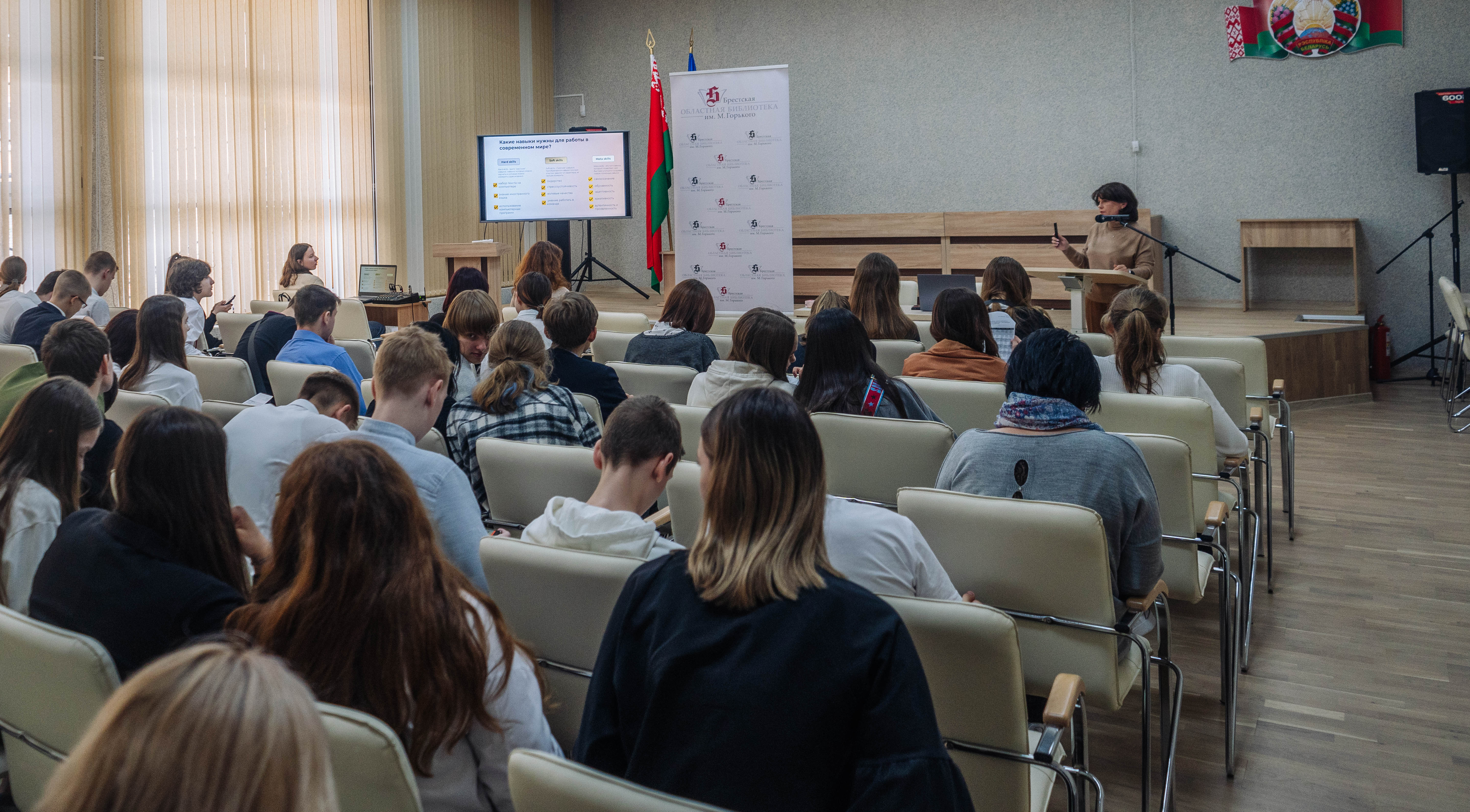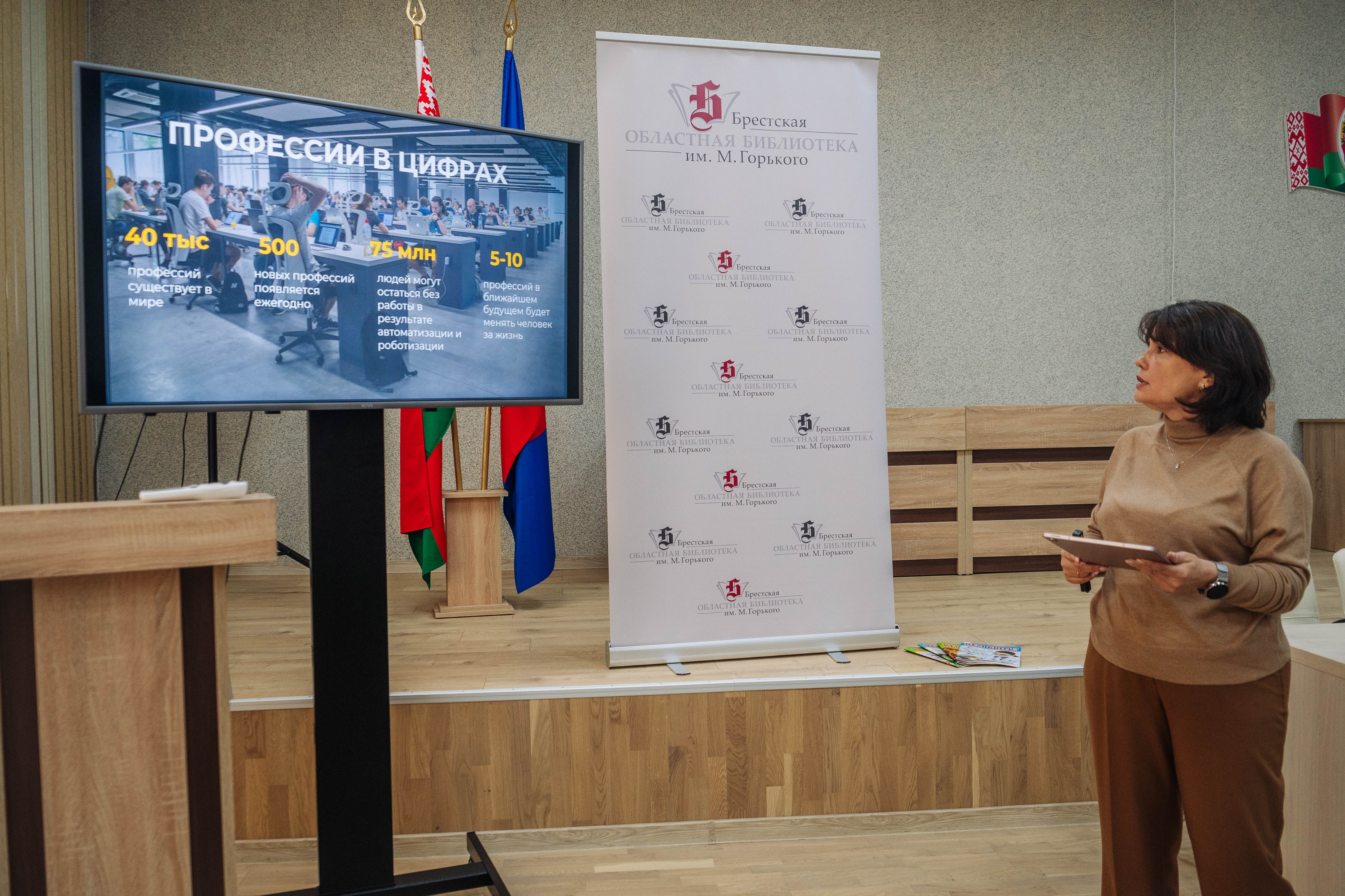 Выбор будущей профессии — один из первых серьёзных выборов, которые приходится делать выпускнику школы. Очень важно не ошибиться! 22 апреля 2024 г. в рамках проекта юношеского отдела к 85-летию образования Брестской области «#1регион в лицах: детские вопросы — взрослые ответы» в библиотеке прошла встреча с психологом, специалистом по профориентации Петровой Наталией. На встречу с ней пришли будущие выпускники — учащиеся 9-х классов гимназий № 1 и № 5 нашего города. Наталия рассказала о сложностях выбора профессии и алгоритмах действий для поступления, о различных навыках, необходимых для последующей успешной трудовой деятельности. Ребята попробовали определить подходящие им специальности, используя матрицу профессий.