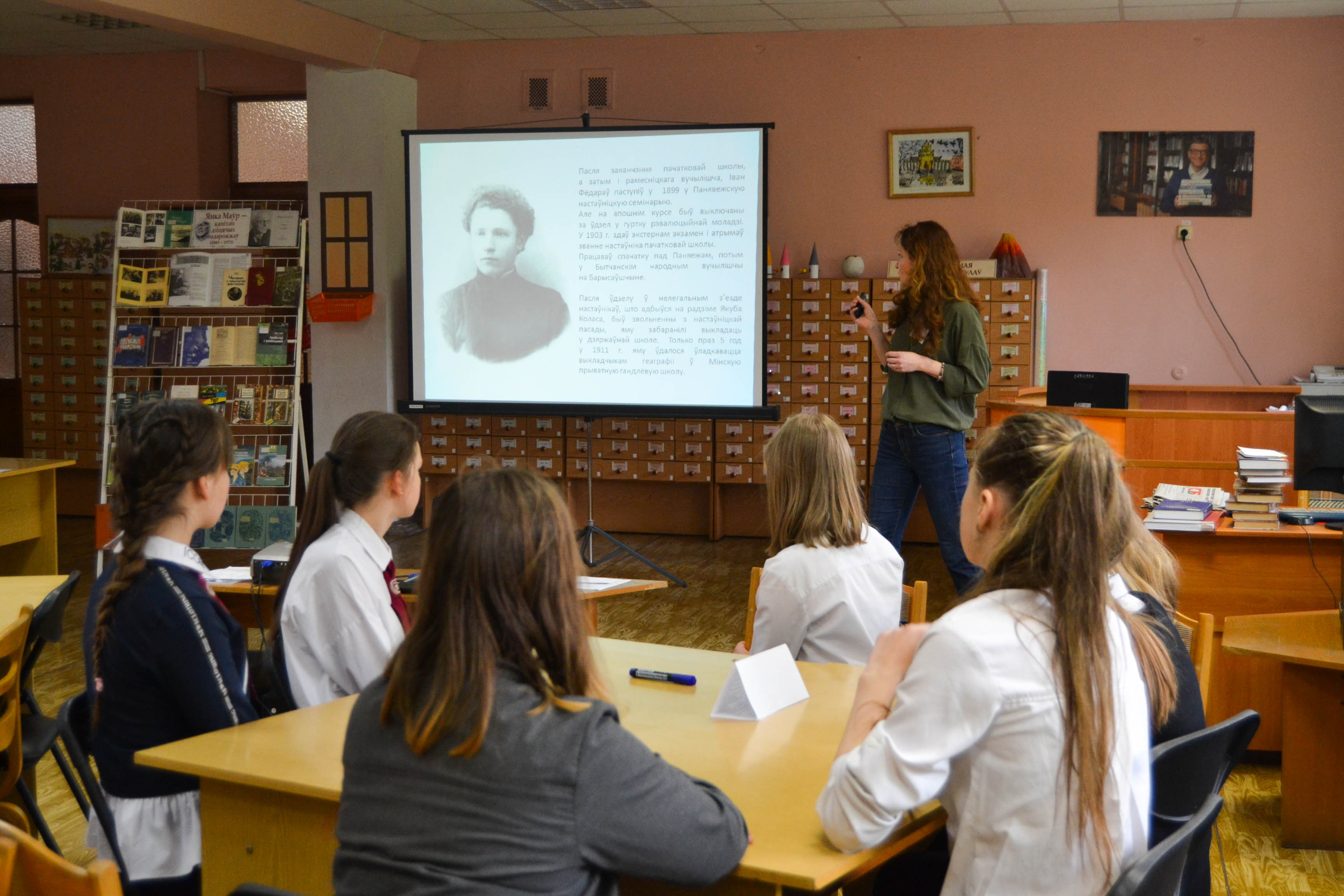 З прэзентацыі падлеткі даведаліся пра нялёгкае дзяцінства, вучобу і асабістае жыццё знакамітага піьменніка.