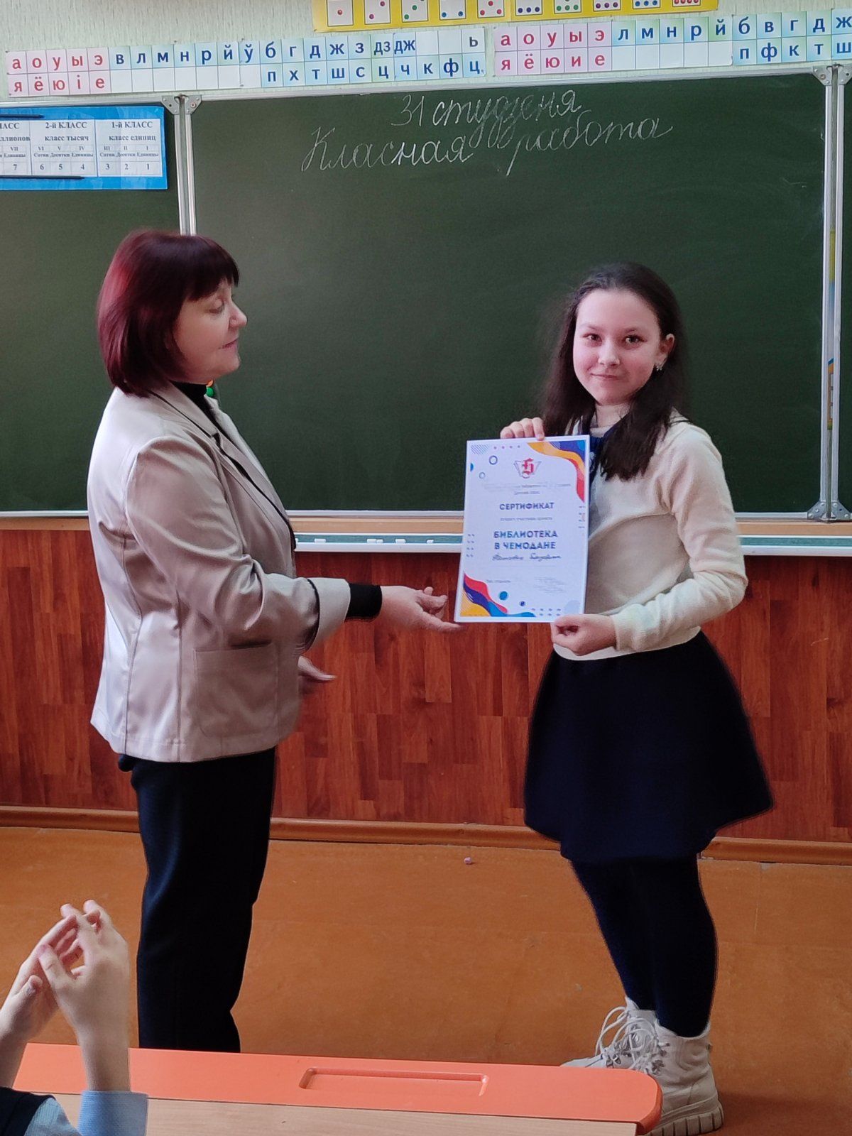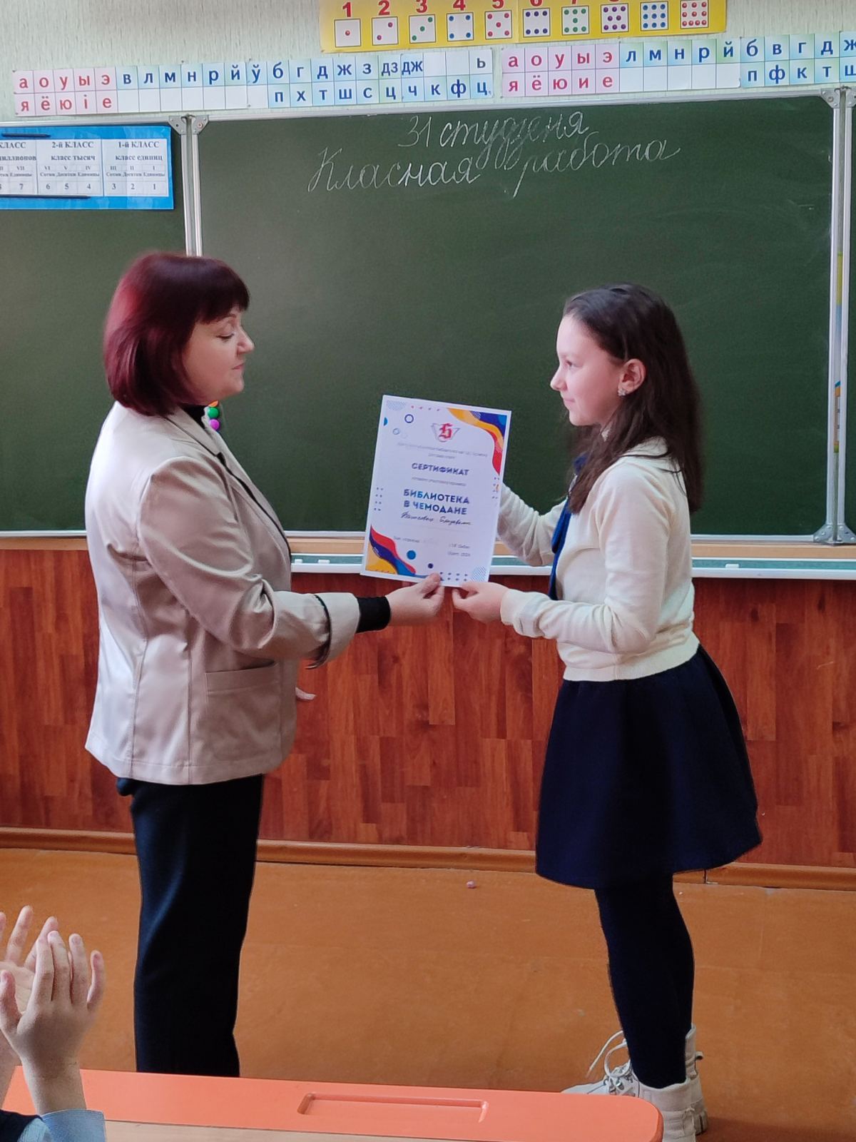 Сотрудники детского отдела провели игру «Героям какой книги принадлежат эти вещи?», в ходе которой определили лучших читателей проекта «Библиотека в чемодане». Среди учащихся 4 «Б» лучшими читателями стали: Елизавета Дашковец, Макар Мороз, Ульяна Скурко, Маргарита Фридрик, Анастасия Гагарина, Кирилл Козик.