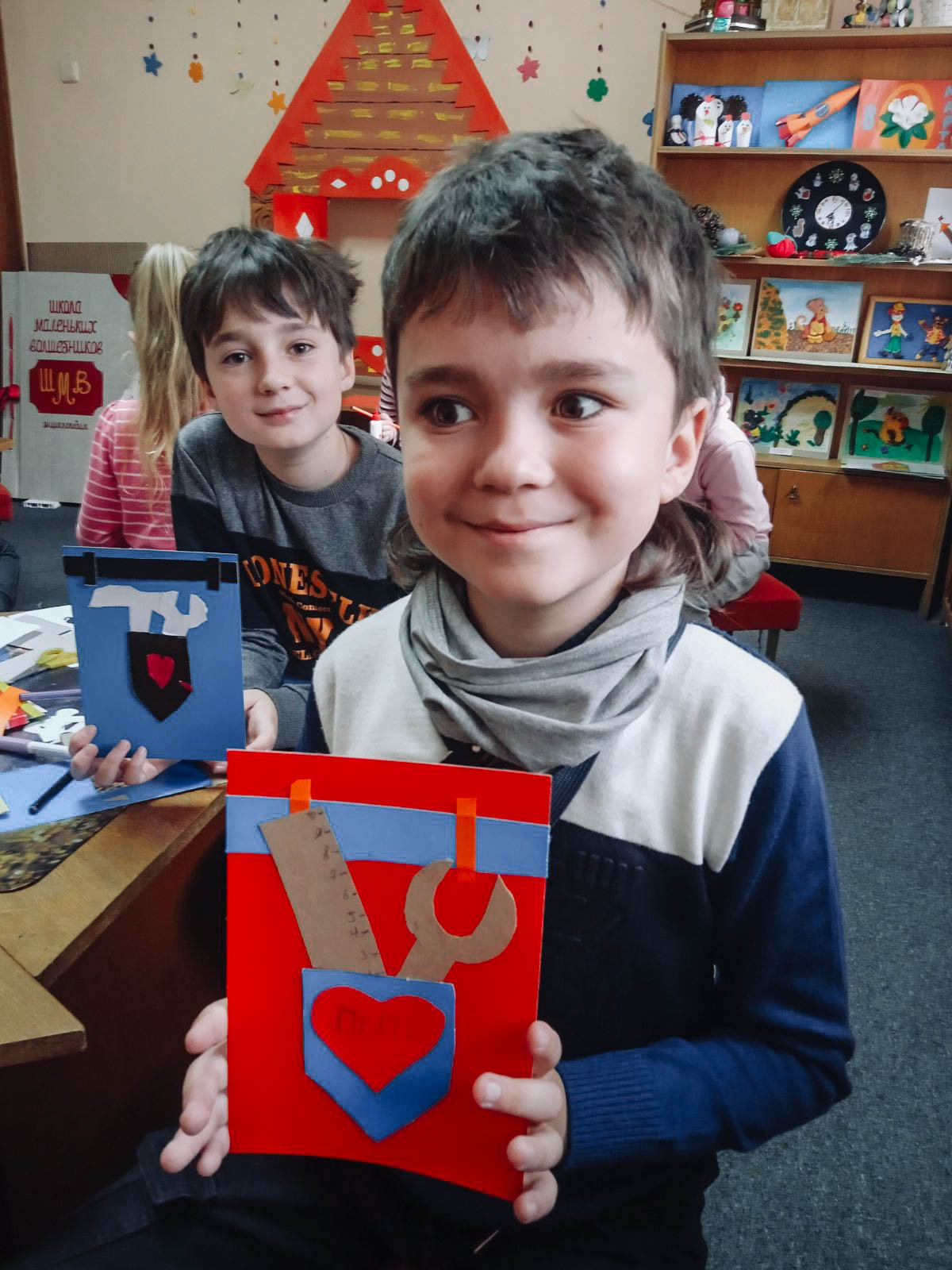 Старшая группа волшебников познакомились со сборником рассказов, посвященным папам. Талантливо и с юмором авторы отображают проблемы взаимоотношений взрослых и детей. В книгу вошли самые лучшие авторы: Е. Григорьева, В Драгунский, И. Шевчук, Л. Каминский и др… Рассказ «Куриный бульон» В. Драгунского поднял ребятам настроение, каждый сделал своему папе открытку из картона в форме кармана, в который аккуратно сложили мужские инструменты. Каждый из волшебников мечтает стать взрослым и быть похожим на своих родителей. А родители желали бы хоть на минутку вернуться в своё озорное, весёлое детство!