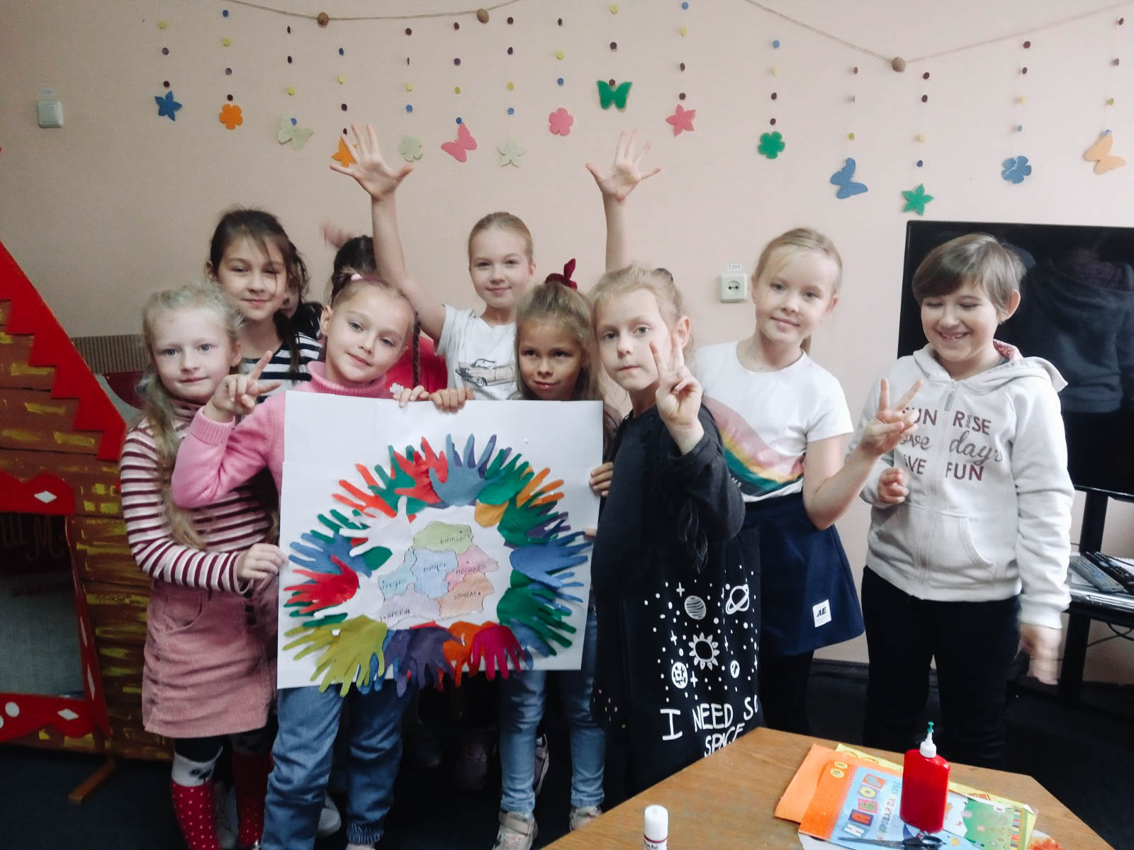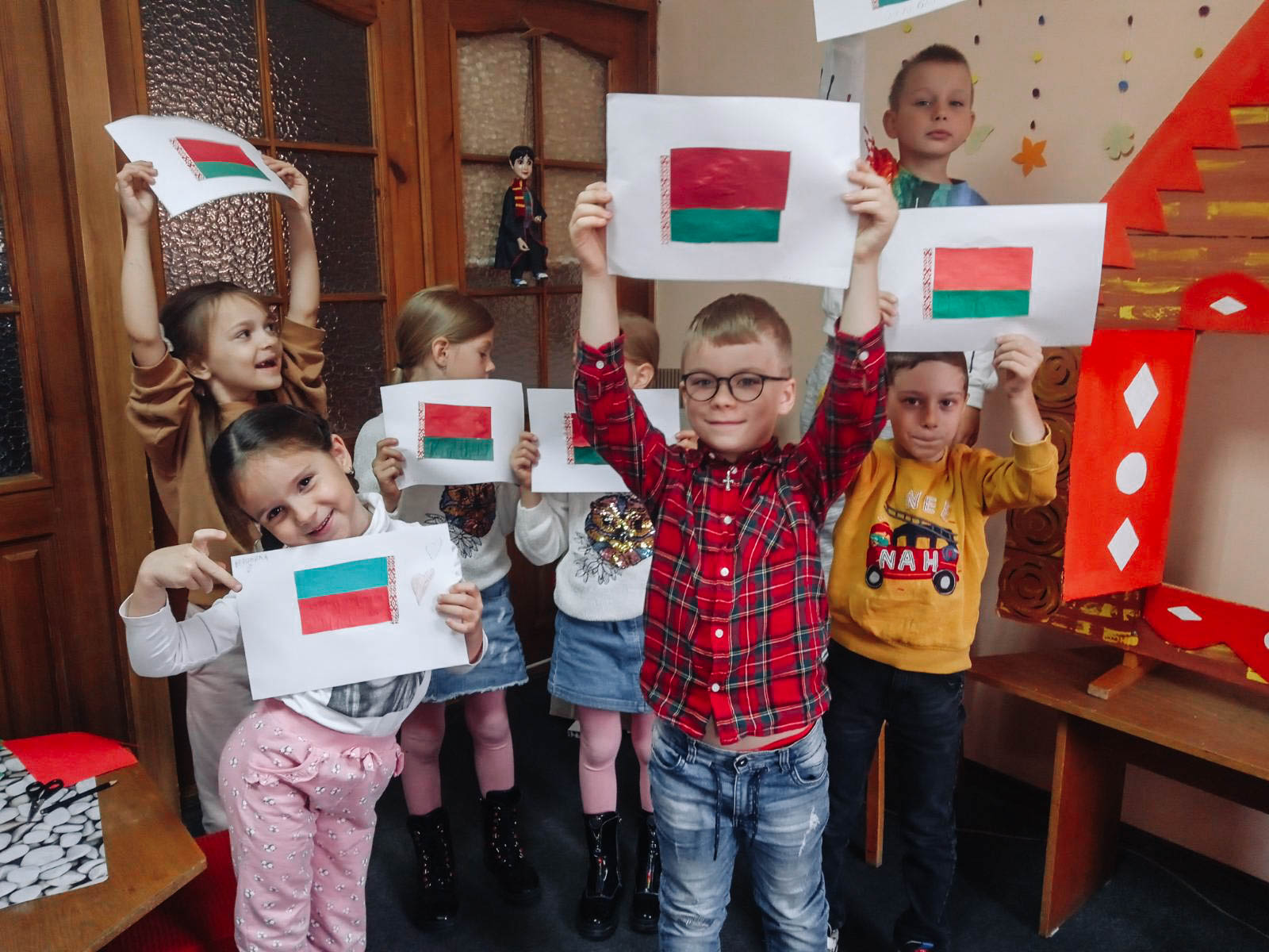 Юные волшебники занимались по книге О. Ваниной «Наша Беларусь». Ребята познакомились с символами страны, гербами столицы и областных центров, задумались о важности сохранения традиций. Яркие иллюстрации вдохновили юных волшебников на создание аппликаций флага Беларуси.