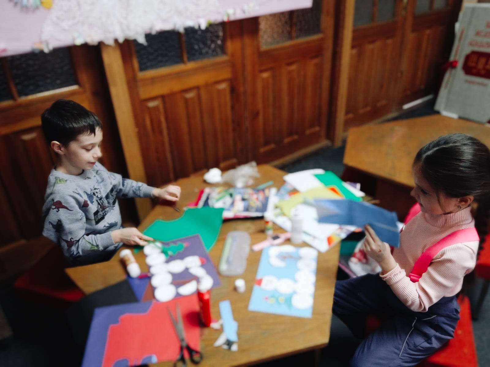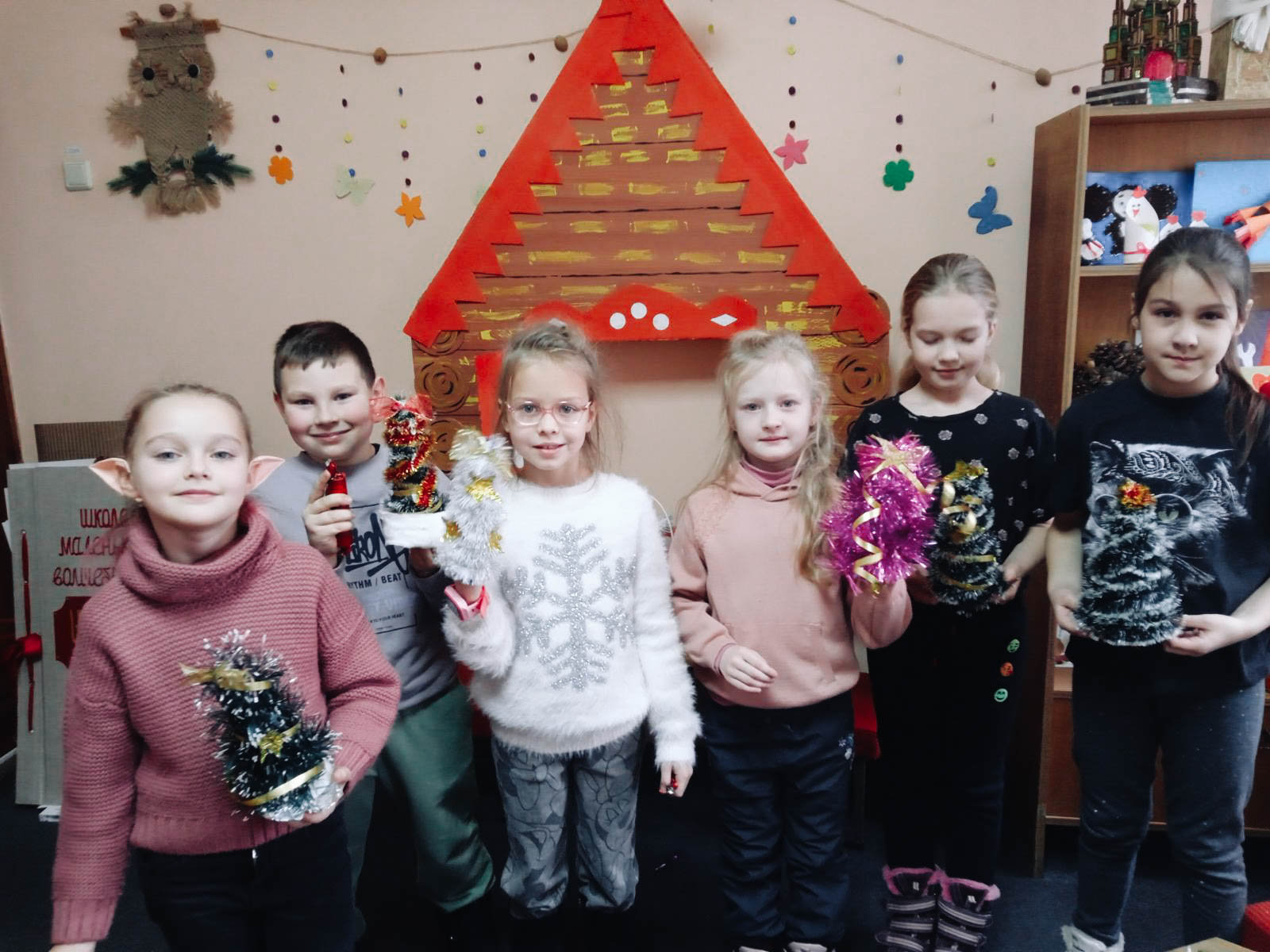 Старшая группа познакомилась с книгой под названием «Снежинка, исполняющая желания». Желание может исполнить не только падающая звезда, но и падающая снежинка! Этот сборник поможет окунуться в новогодние чудеса. Ребята сделали из картона елочки и украсили их мишурой.