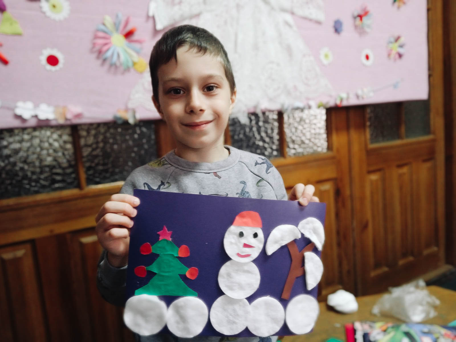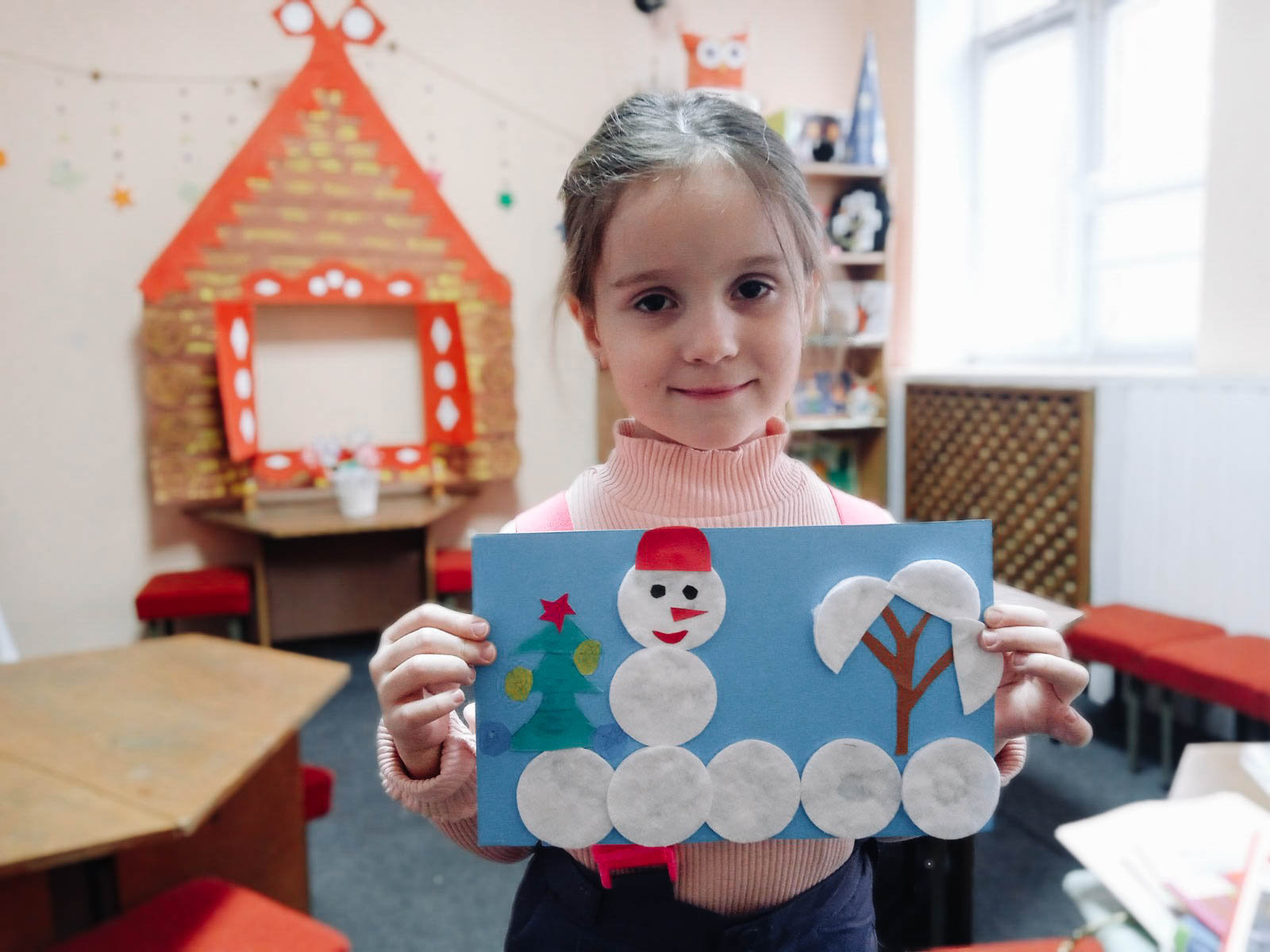 18 декабря младшая группа волшебников познакомилась с книгой Ж. Делаэ «Маруся и волшебные праздники». Под Новый год сбываются все самые заветные желания. Маруся, веселая девочка, пригласила в самую настоящую сказку, где живут эльфы, драконы, феи и заколдованная птичка. Маленькие волшебники сделали из ватных дисков новогодний пейзаж со снежной бабой чтобы украсить им свою комнату.