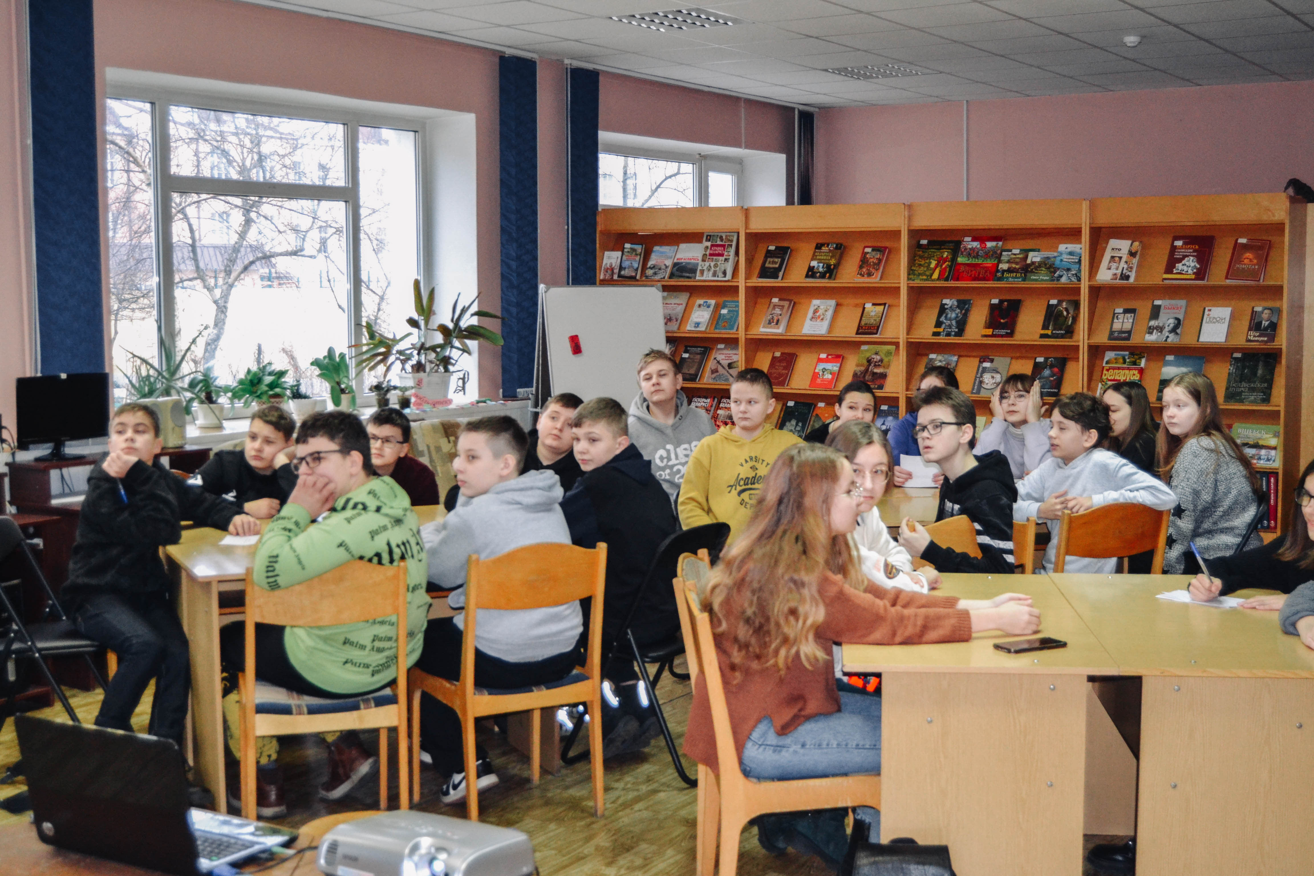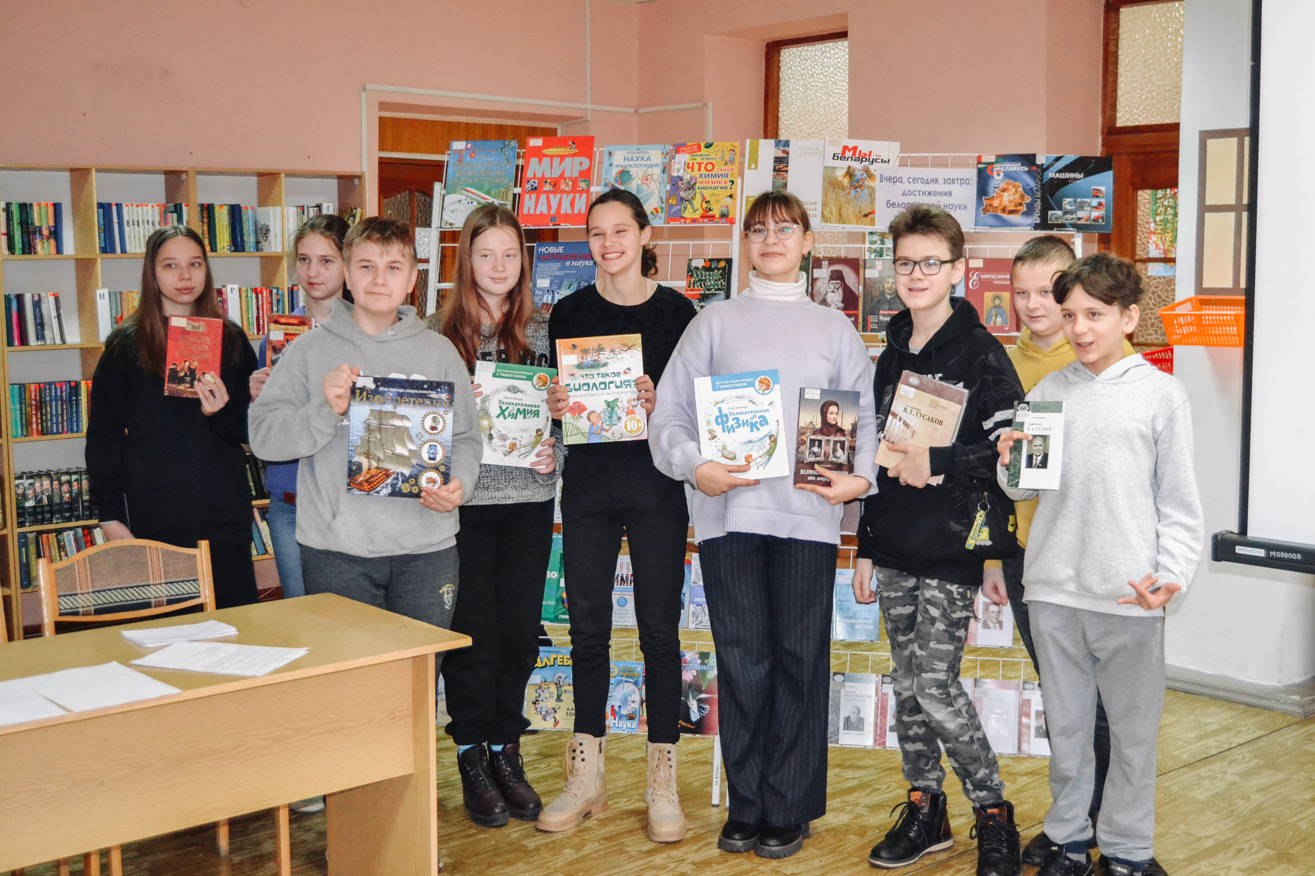 В Юношеском отделе продолжается неделя интеллектуального чтения. 28 января к нам в гости пришли учащиеся 7 «А» и 7 «Д» классов ГУО «Средняя школа № 7 г. Бреста». Ребята познакомились с литературой, посвящённой белорусской науке и общемировым научным тенденциям, а также проверили свои знания в интеллектуальной игре «Знаўцы роднага краю».
