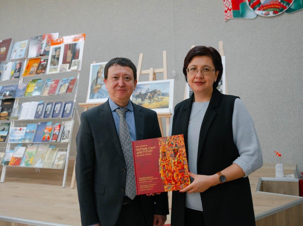 В память о встрече Айдар Есламбекович Шалбаев вручил директору библиотеки Елене Яковлевне Стрижевич роскошное издание «Национальные обычаи и традиции. Казахский этикет» Бахыта Каирбекова. Автор работал над книгой 15 лет и собрал бесценные знания и опыт целых поколений казахского народа. В ней раскрывается глубокое философское значение казахского этикета. Иллюстрации выполнила известная казахстанская художница Нелли Бубэ.