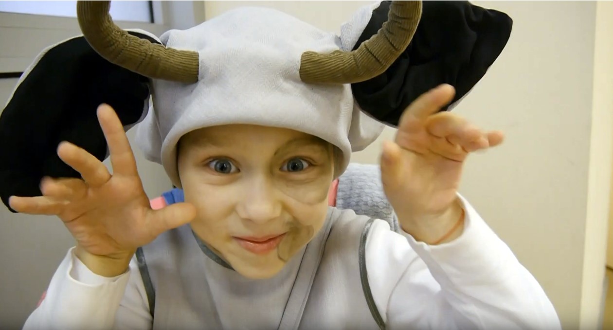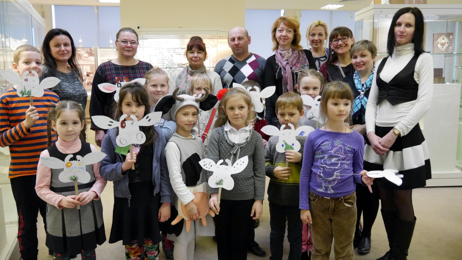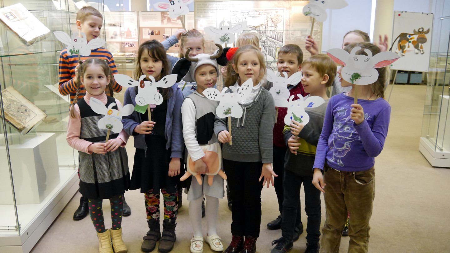 Мастер-класс прошёл с успехом – весело и задорно. Ребята из Минска (дети 6-7 лет) узнали много нового по теме книги (природа и домашние животные), собирали пазл большой коровы, читали книгу и смотрели её на экране. Каждый из участников встречи сделал свой портрет этой неугомонной коровы, который смог взять с собой на память.