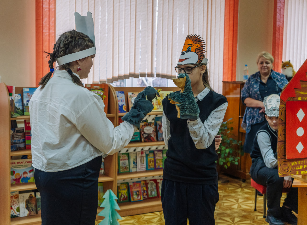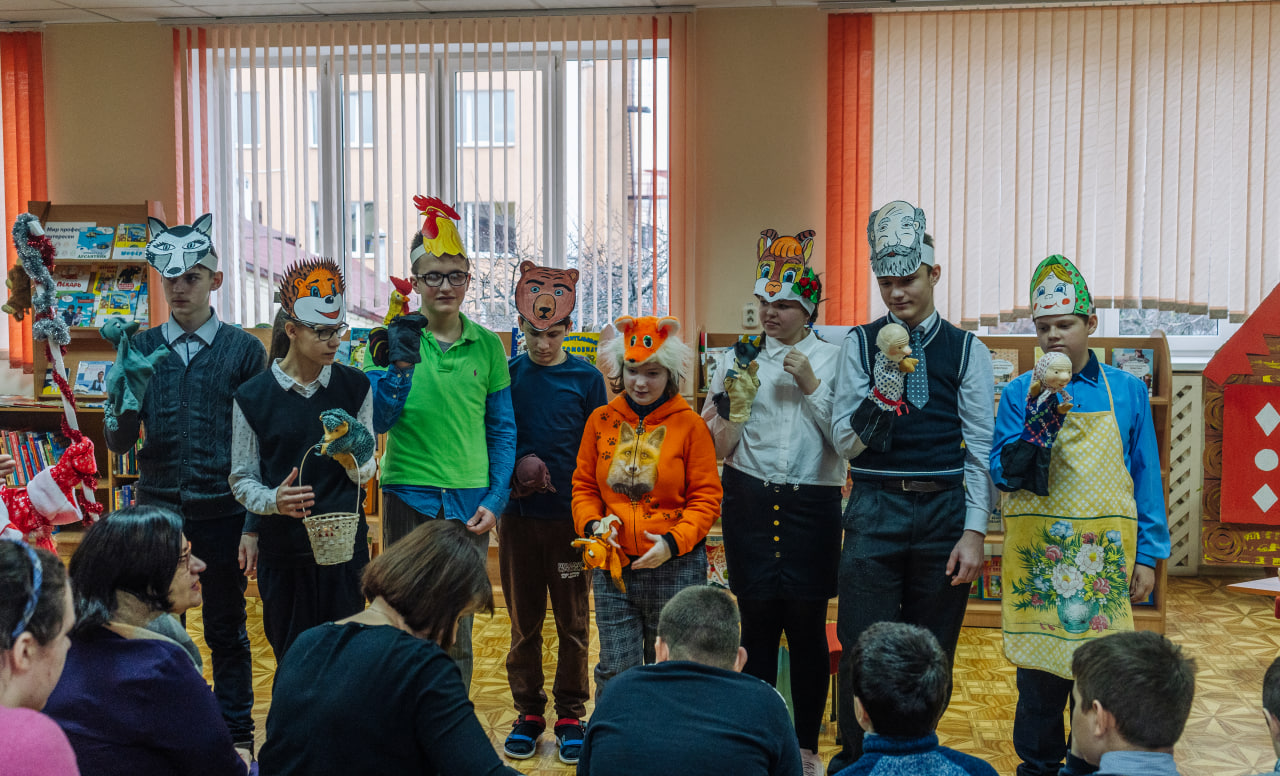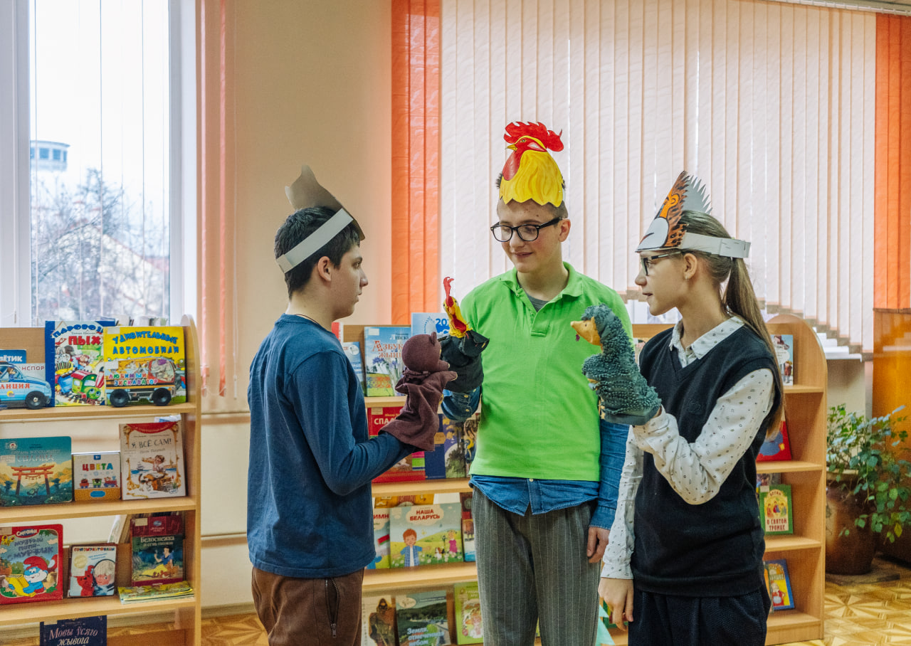 Участники книжного театра «Спасательный круг» показали ребятам сказку «Козочка Розочка и Петя-Петушок». Это было их первое выступление. Получилось здорово!