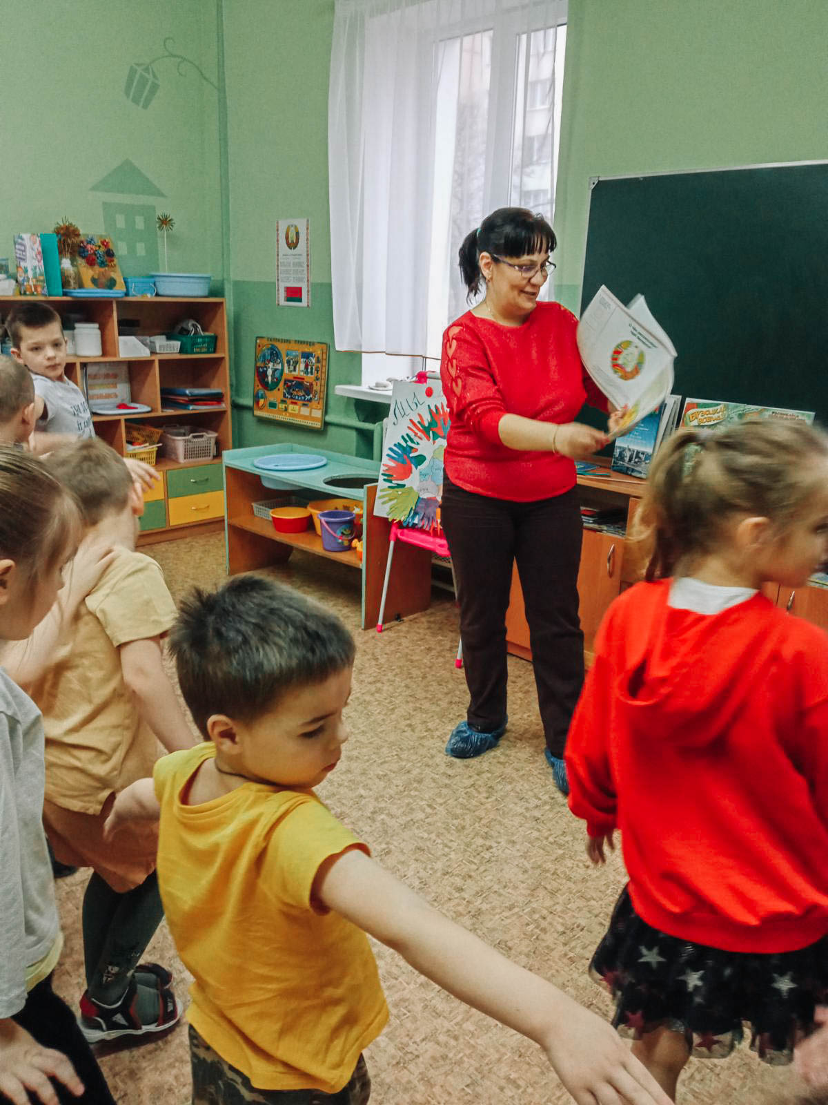 Пры дапамозе кнігі Вольгі Ванінай «Краіна, у якой жыву» дзеткі пазнаёміліся з прыродай Беларусі, важнымі гістарычнымі падзеямі, славутымі мясцінамі, гербамі сталіцы і абласных цэнтраў. Паразважалі над важнасцю штодзённай працы і захаванні народных традыцый.