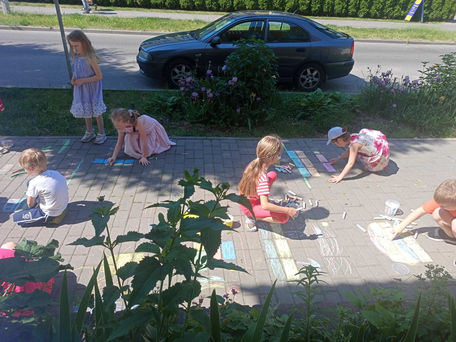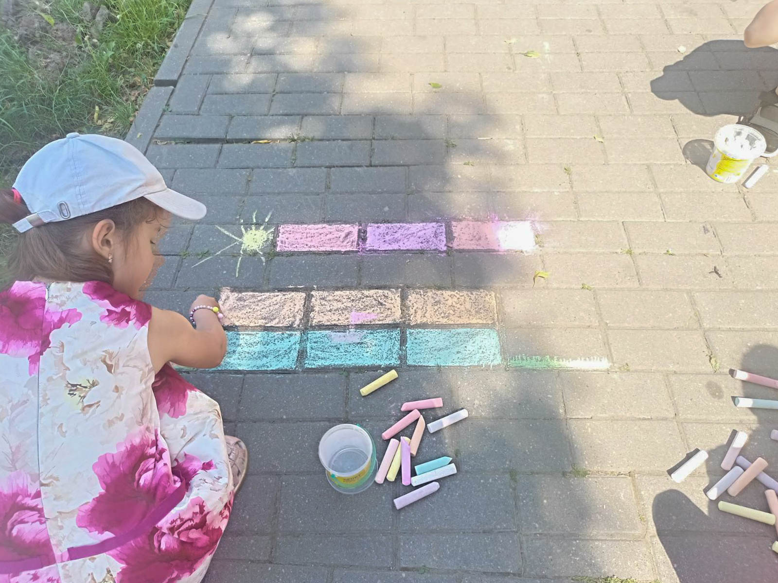 Ребята рисовали своё счастье на асфальте. У каждого ребёнка получился свой островок мечты.