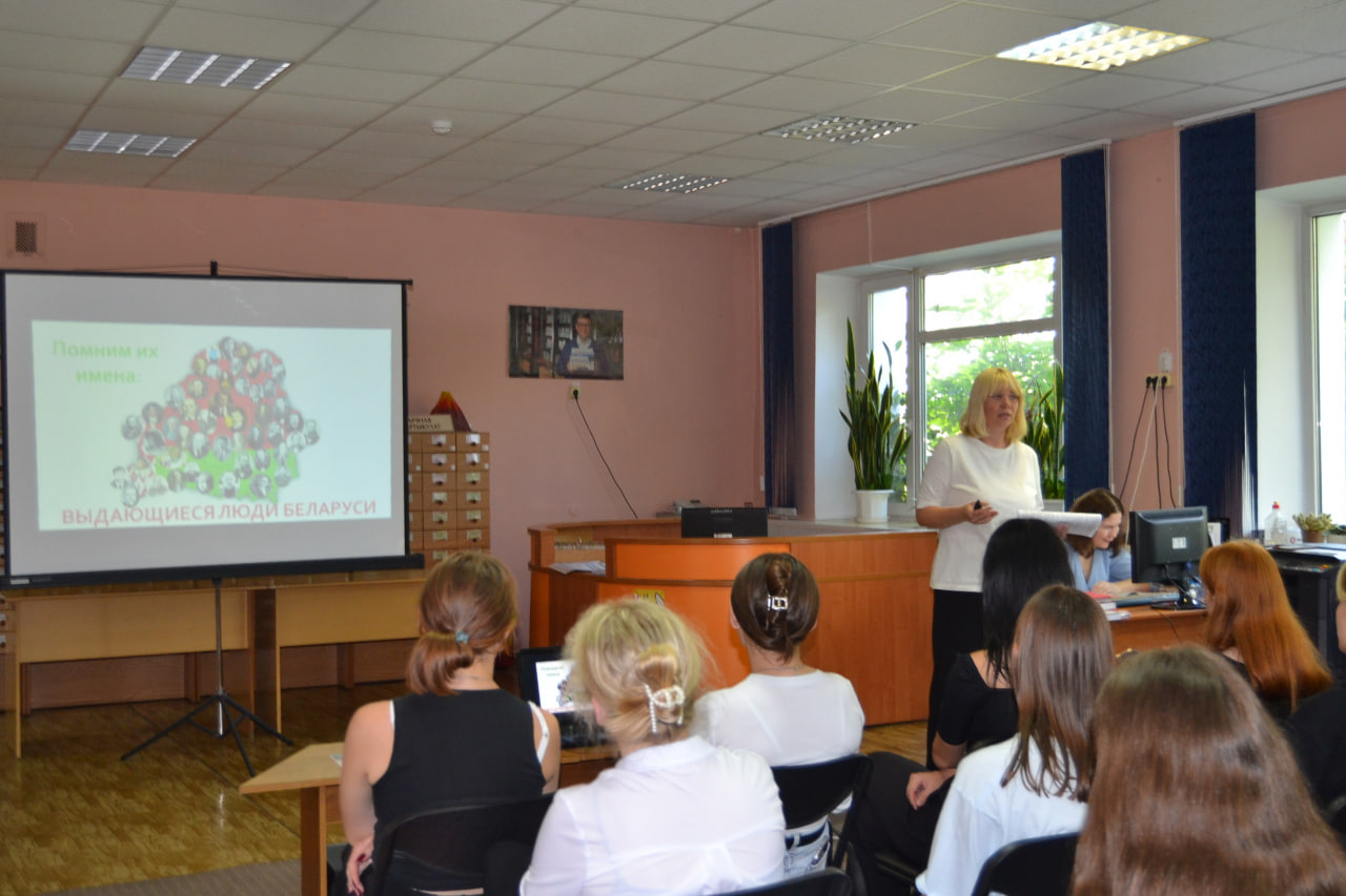 В преддверии праздника в юношеском отделе состоялся познавательный час «Помним их имена: выдающиеся люди Беларуси». Учащиеся 1 курса УО «Брестский государственный колледж связи» познакомились с биографиями известных белорусов, уроженцев разных регионов нашей страны. Вспоминали трагические и радостные моменты истории Беларуси, героев войны и мирной жизни, творческих людей и спортсменов.